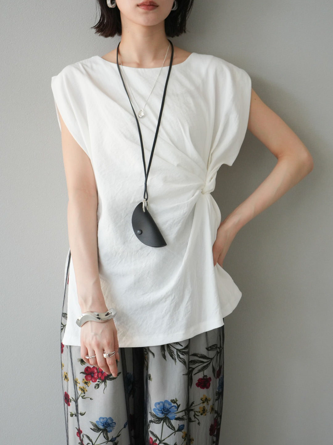 [預購] 塔夫綢無袖上衣(附腰包)/白色