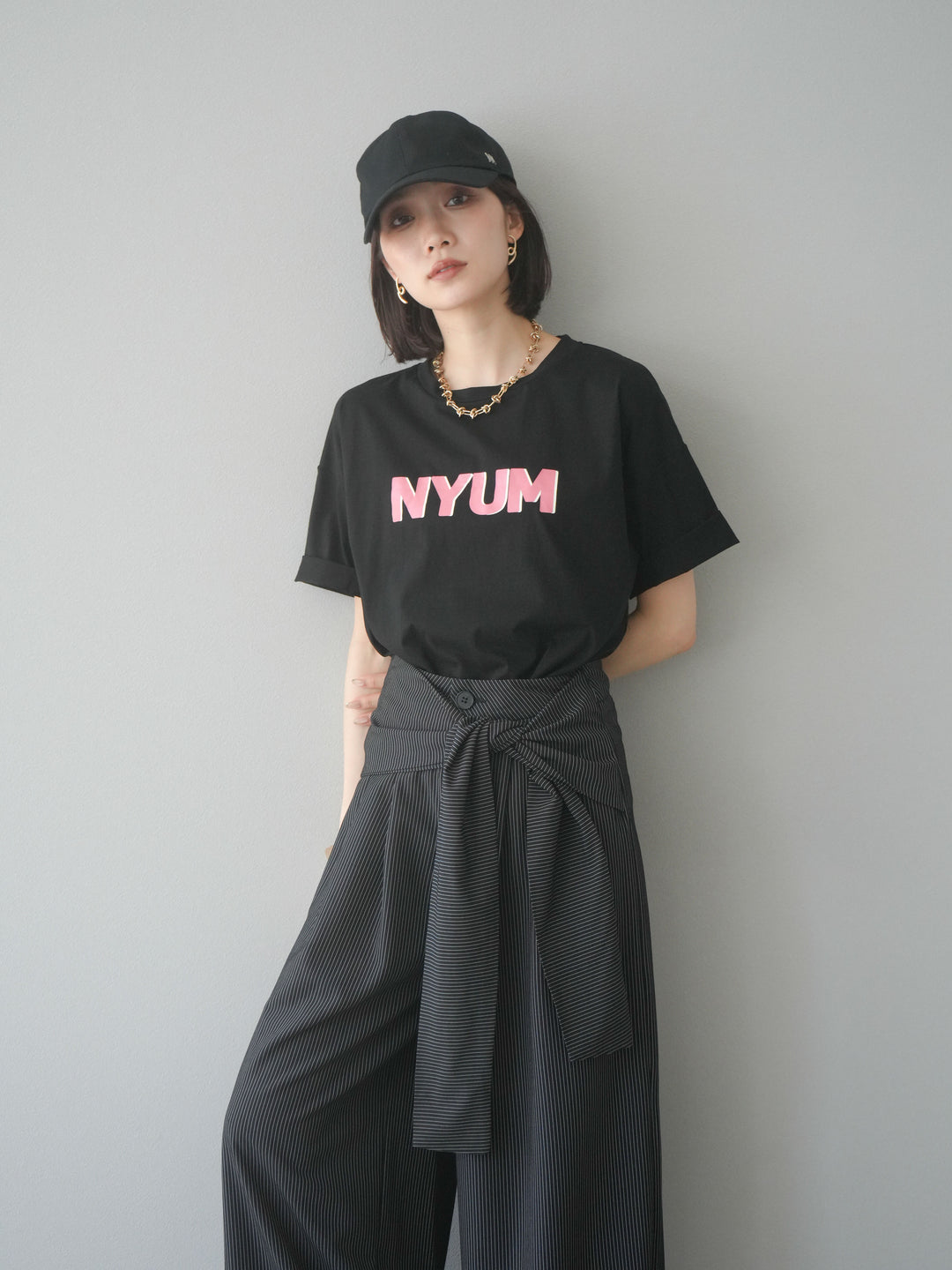 [預訂]“NYUM”標誌印花乾爽觸感棉質T卹/黑色