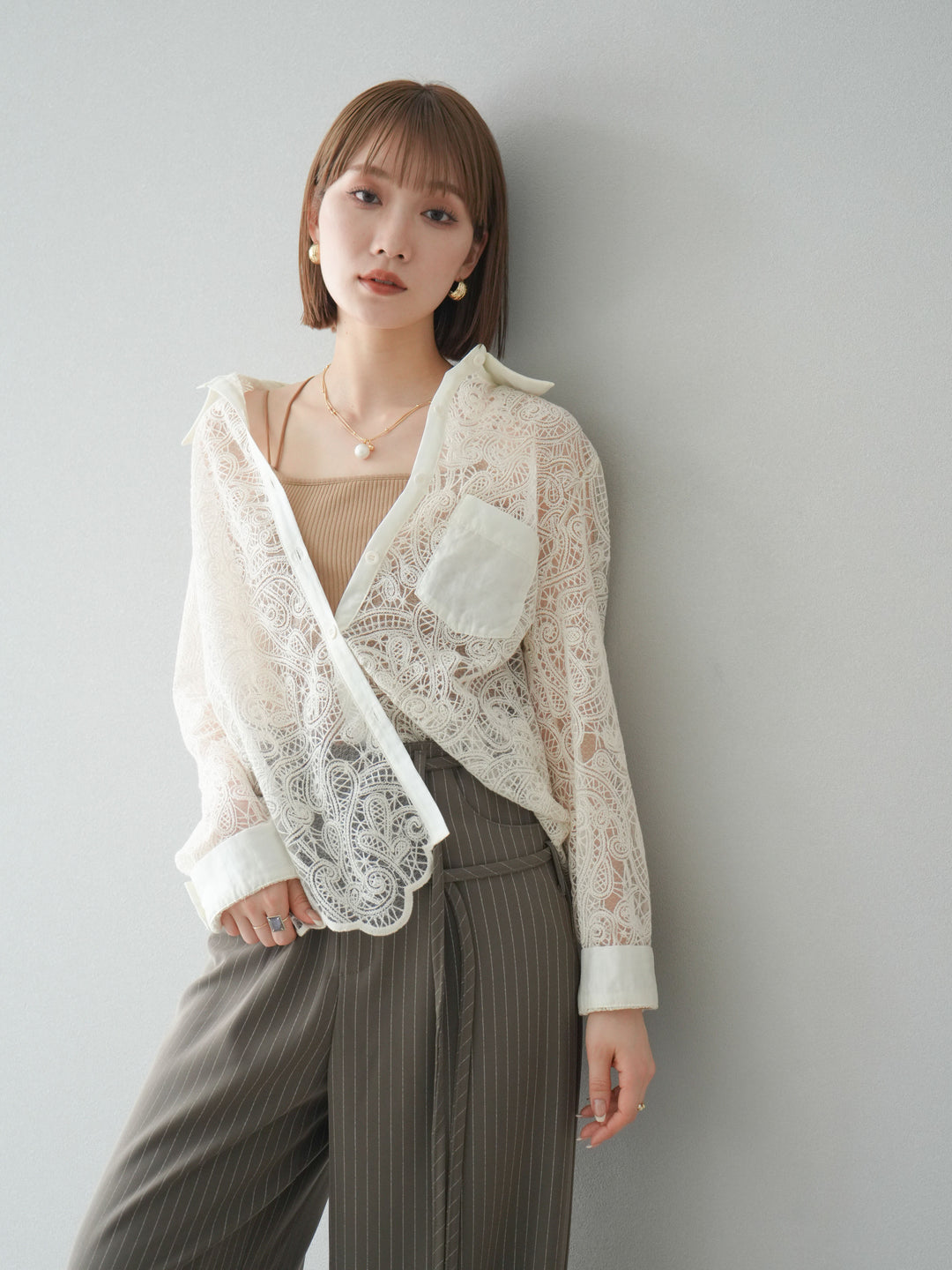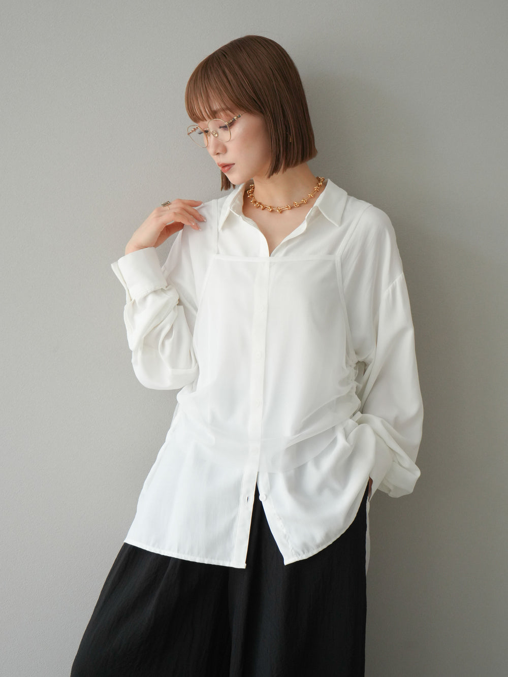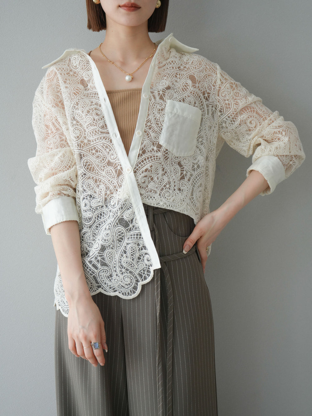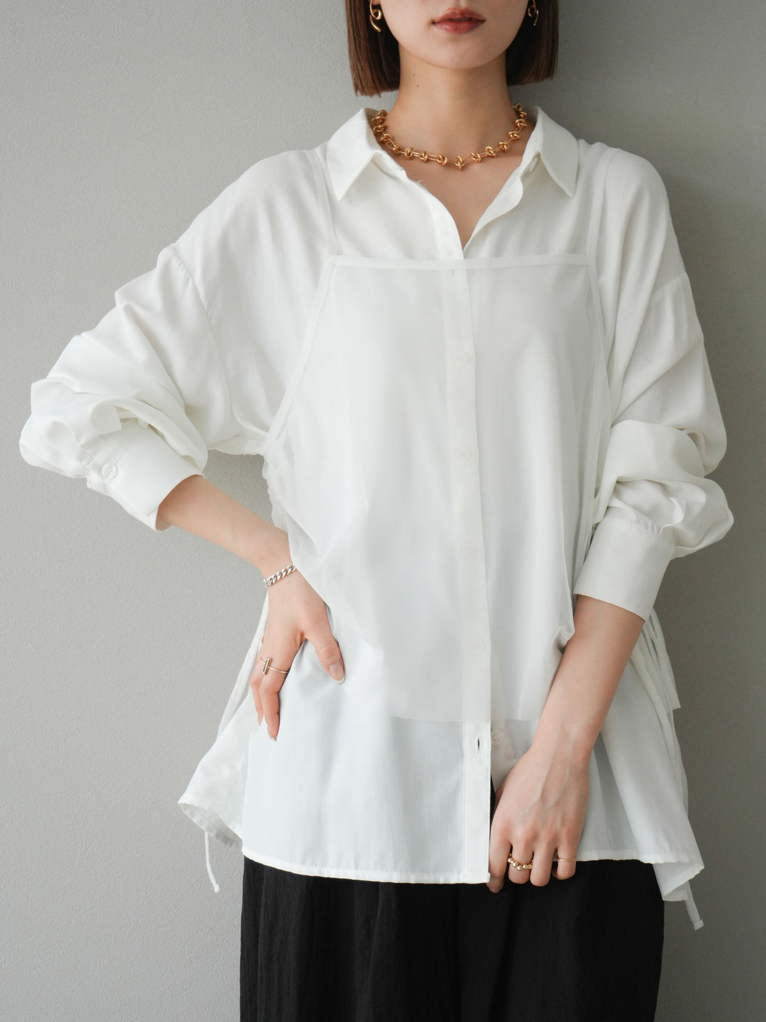 【預購】流蘇提花 x 薄紗疊搭襯衫/象牙白