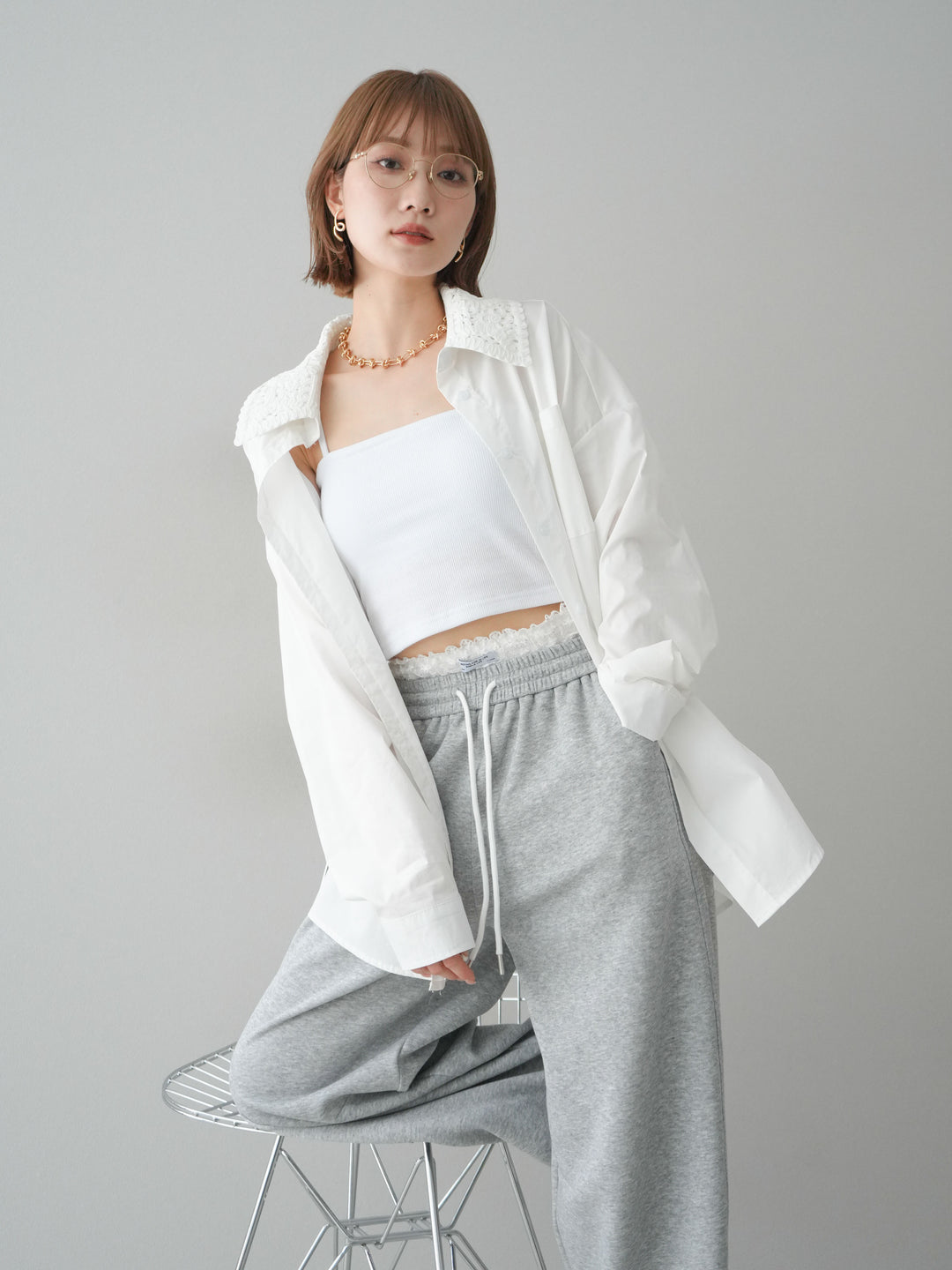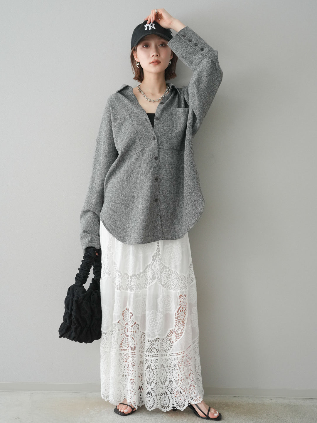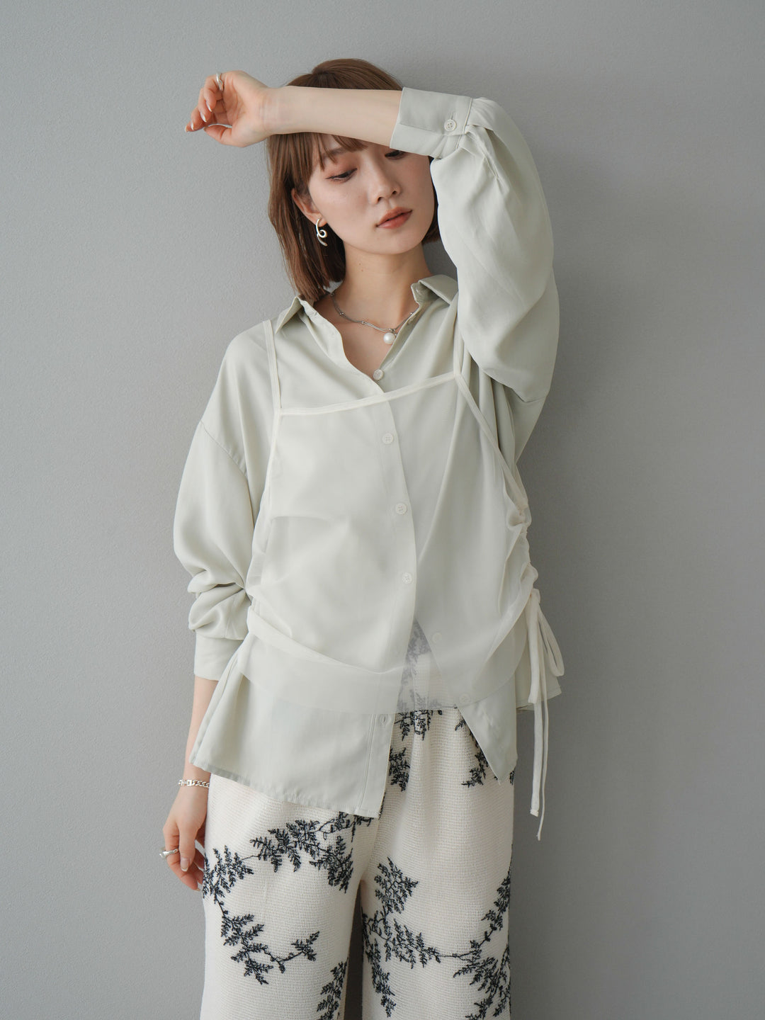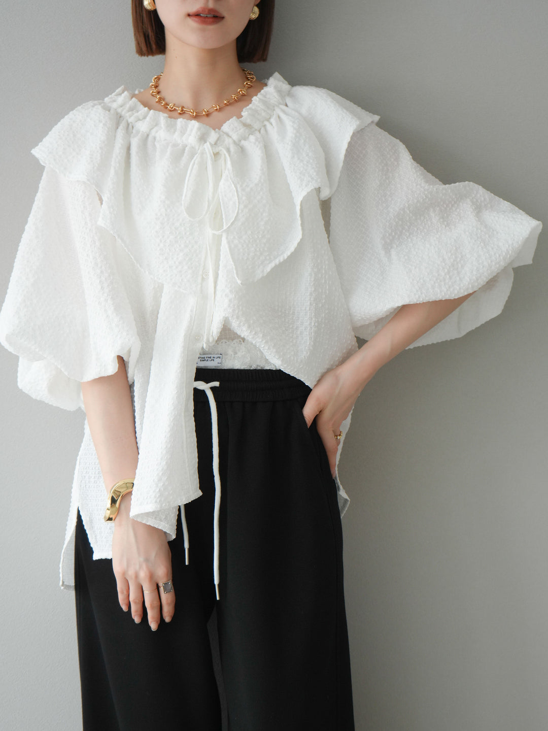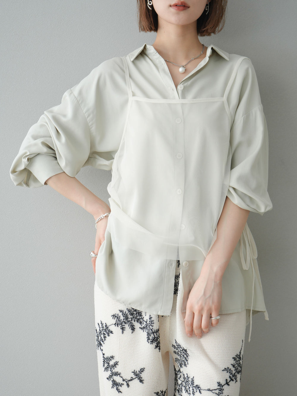 【預購】流蘇提花 x 薄紗疊搭襯衫/象牙白