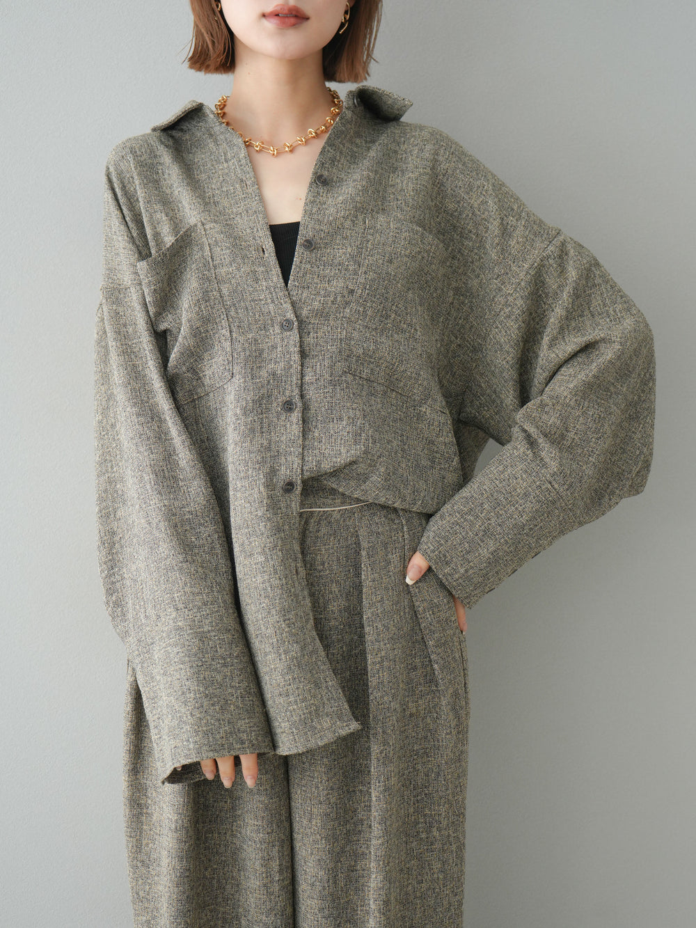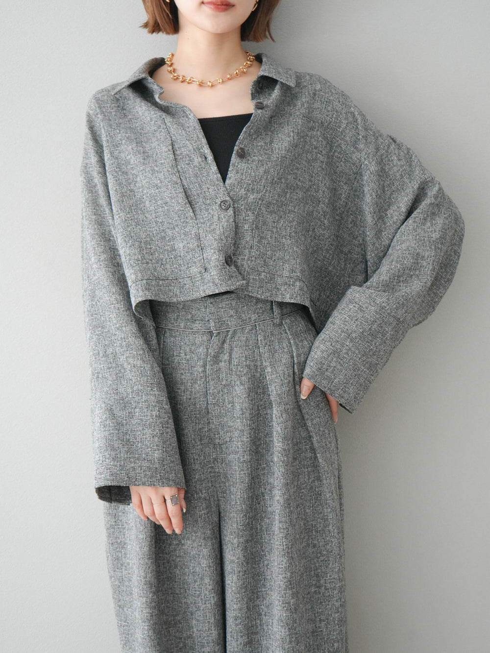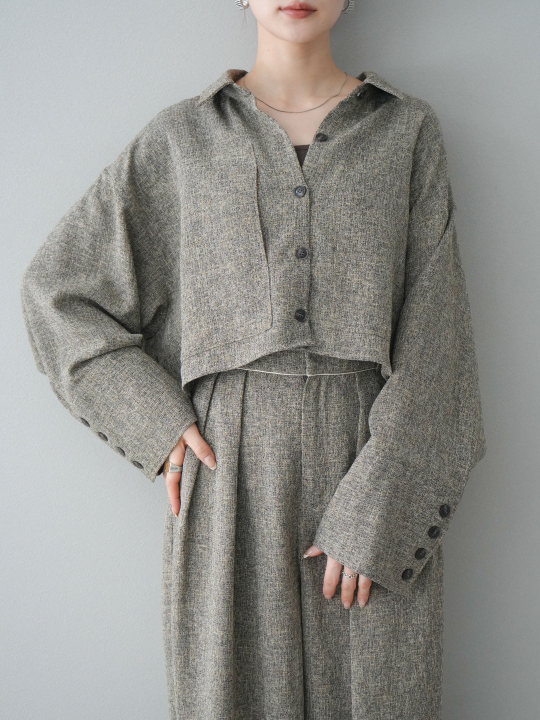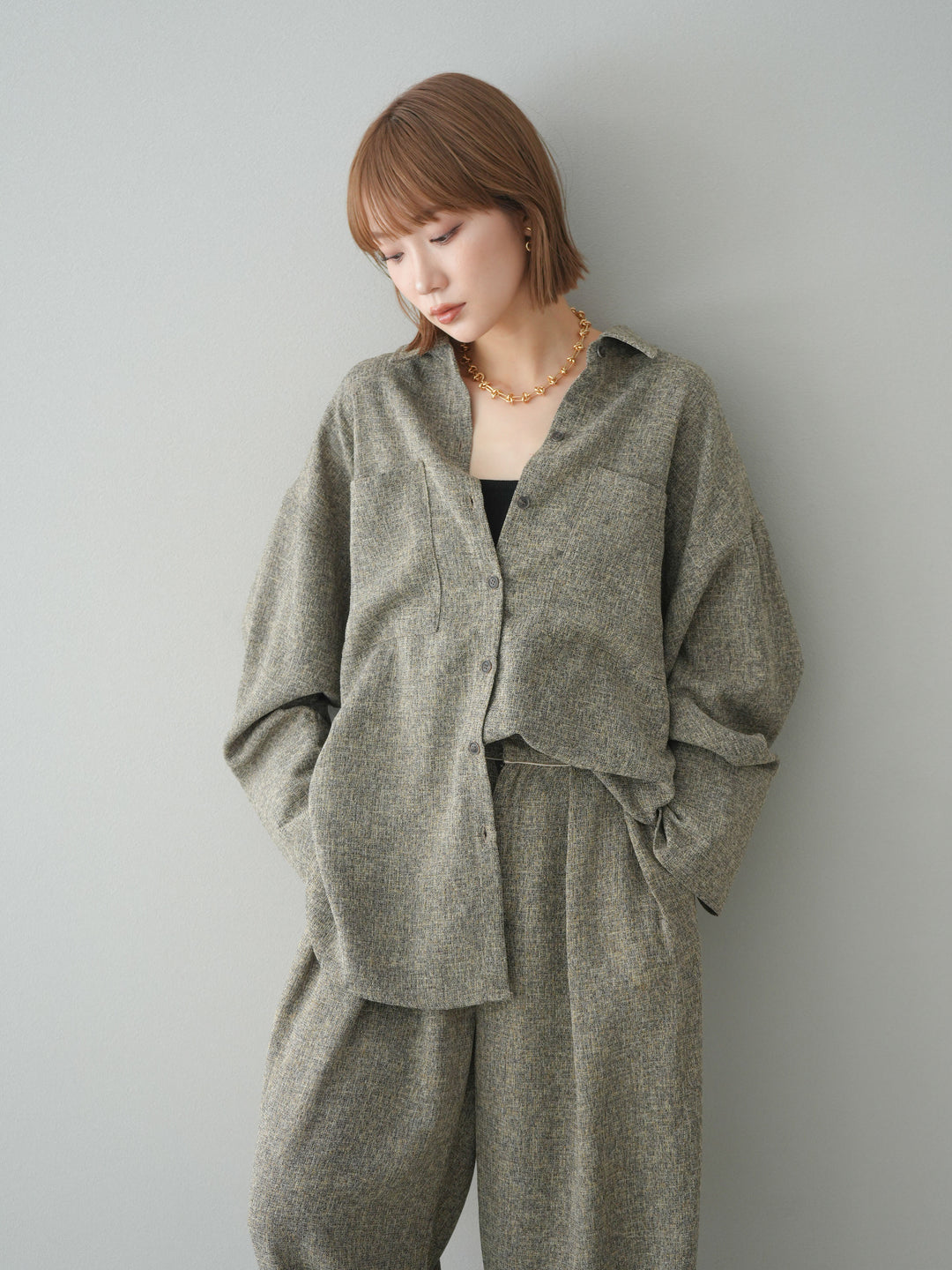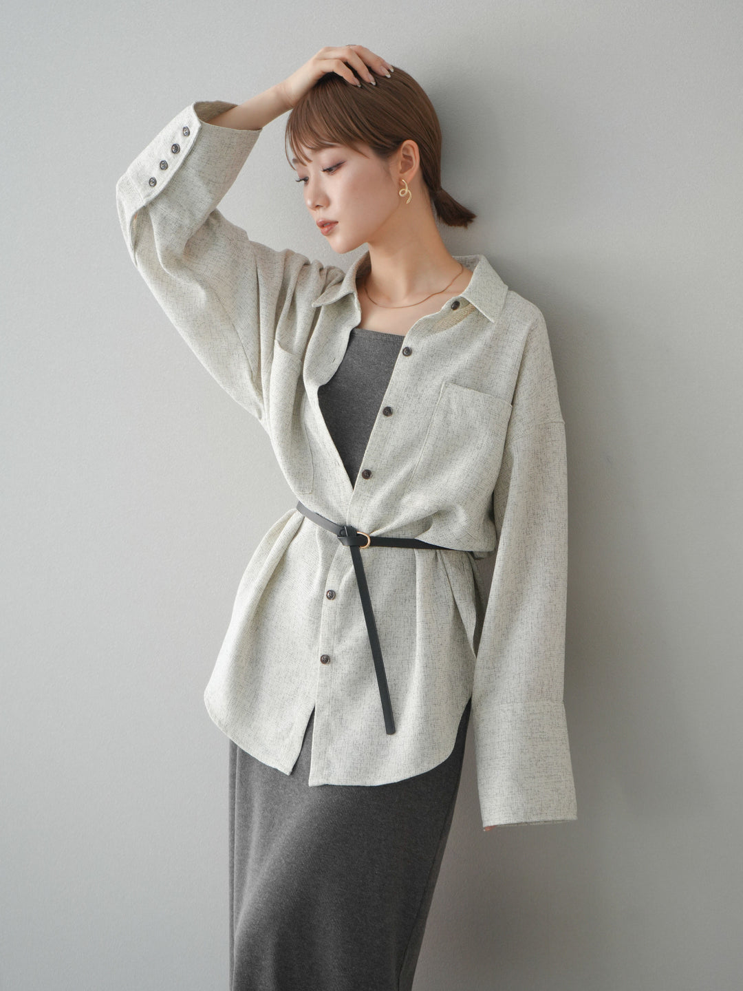 【預購】流蘇提花 x 薄紗疊搭襯衫/棕色