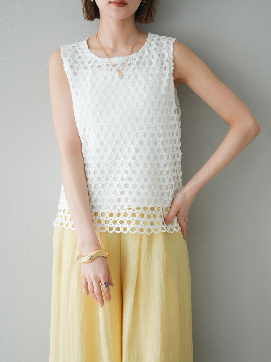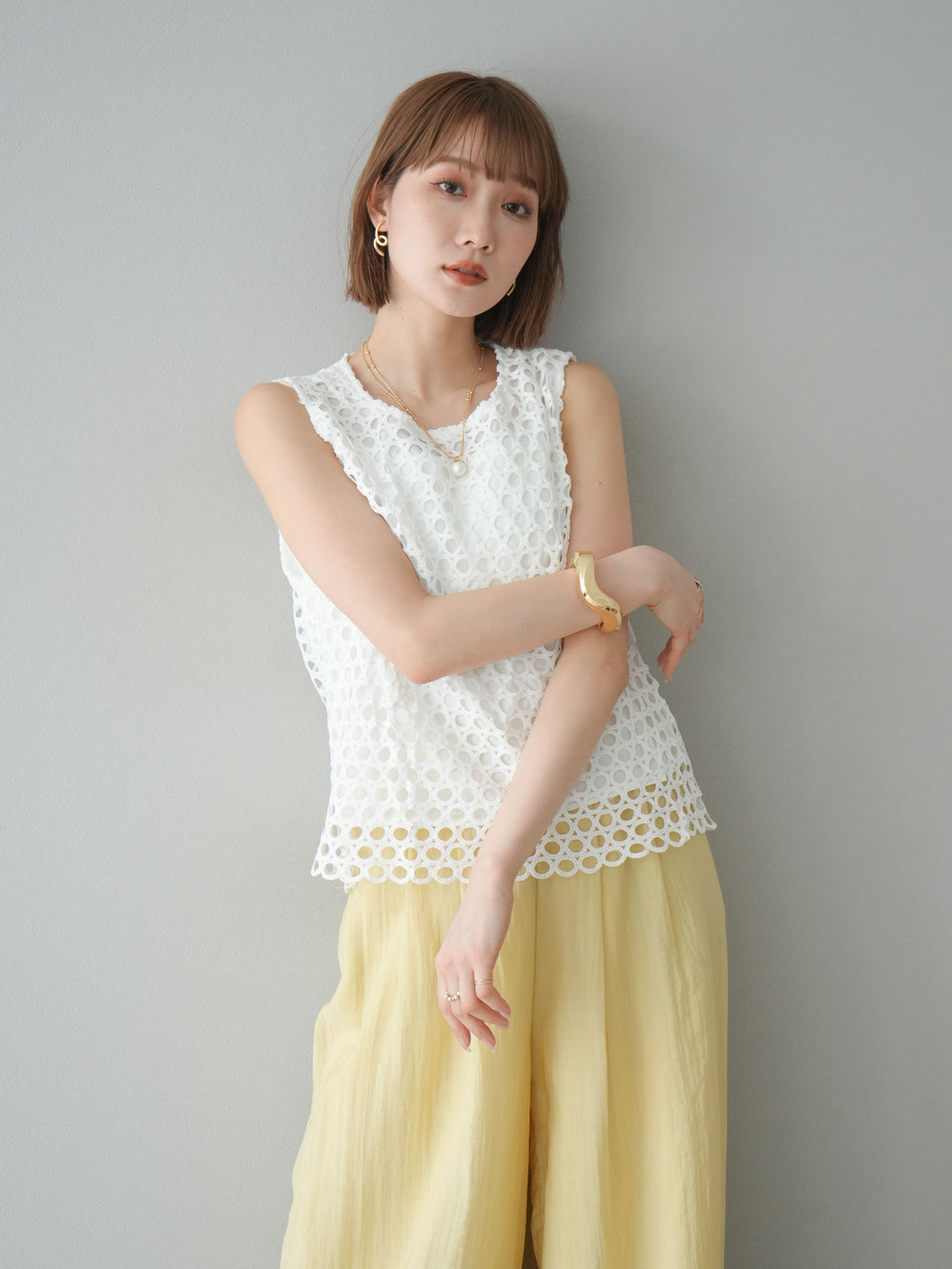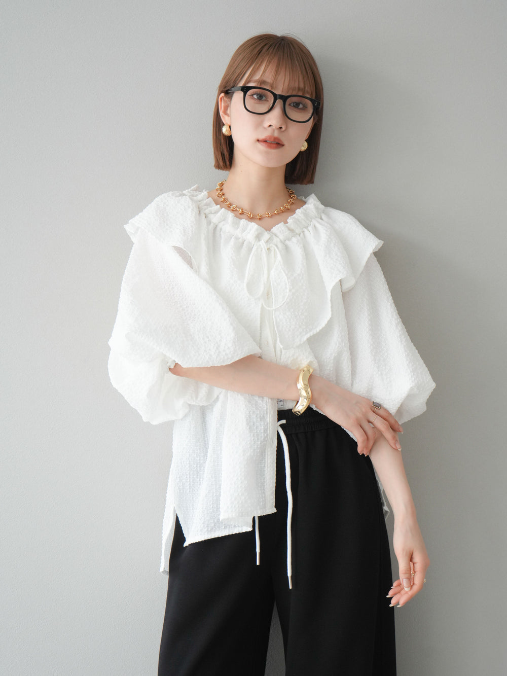 [予約]チュールフラワーフロッキーショートブラウス/ホワイト