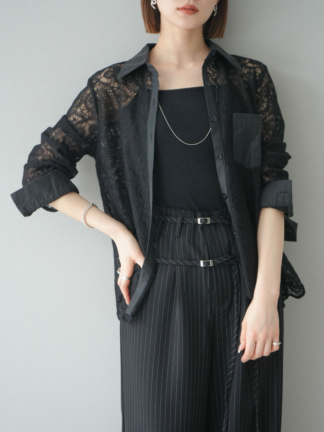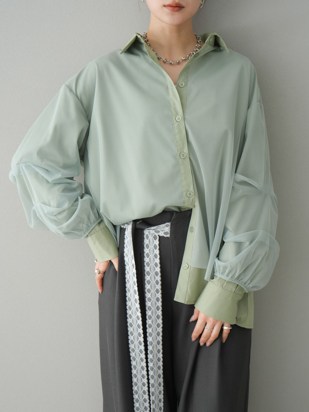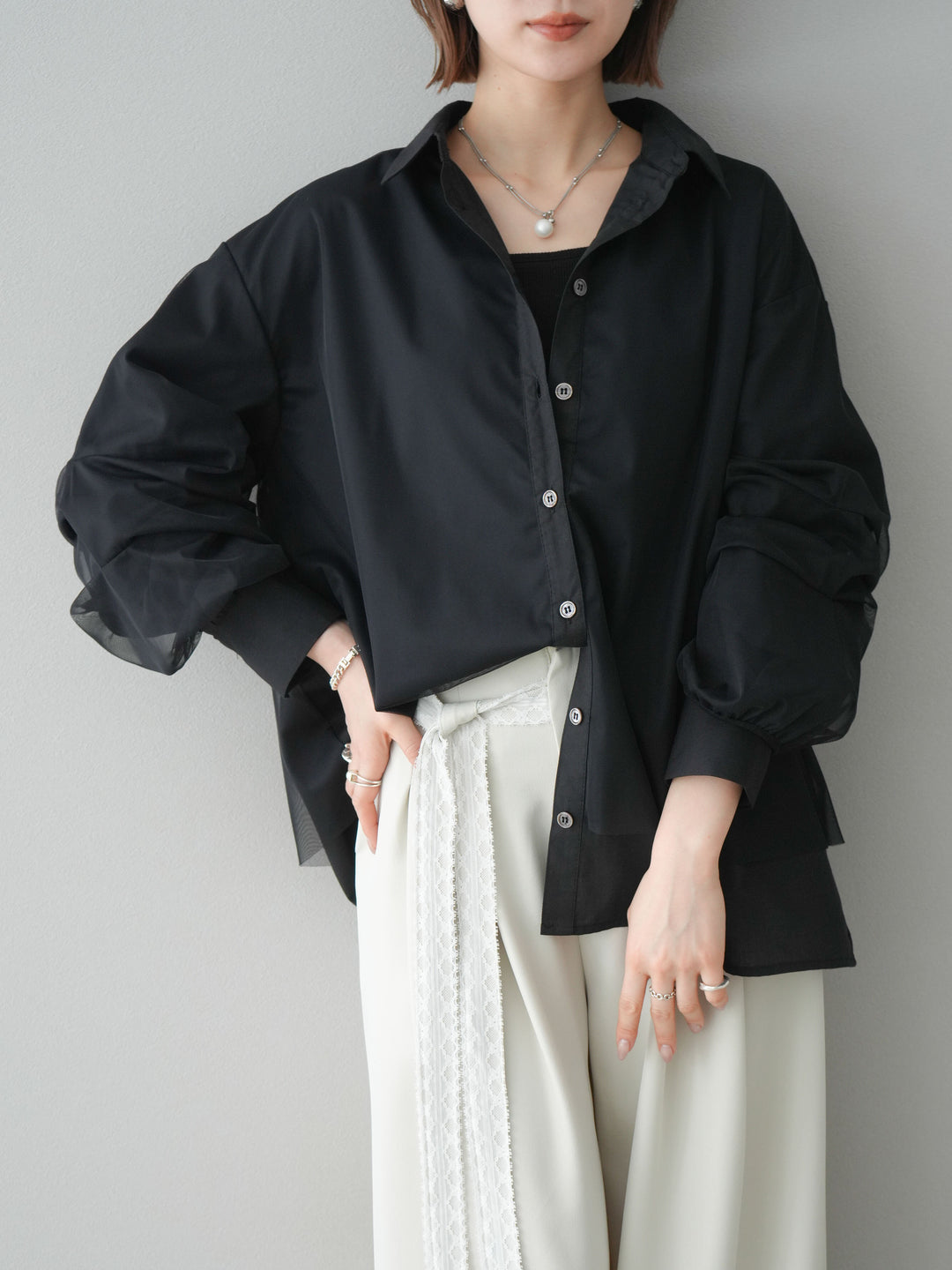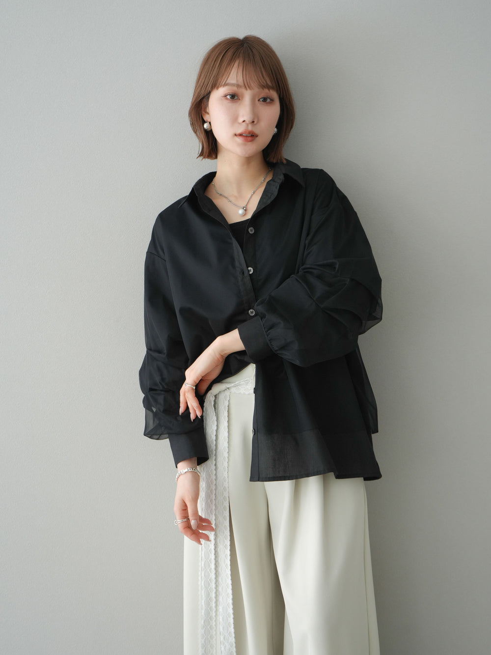 【預購】流蘇提花 x 薄紗疊搭襯衫/黑色