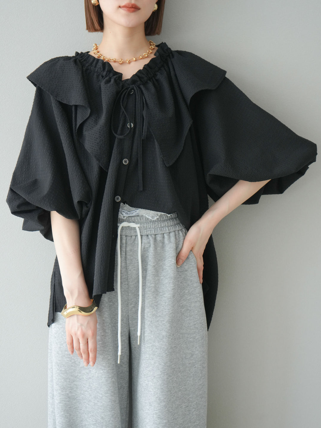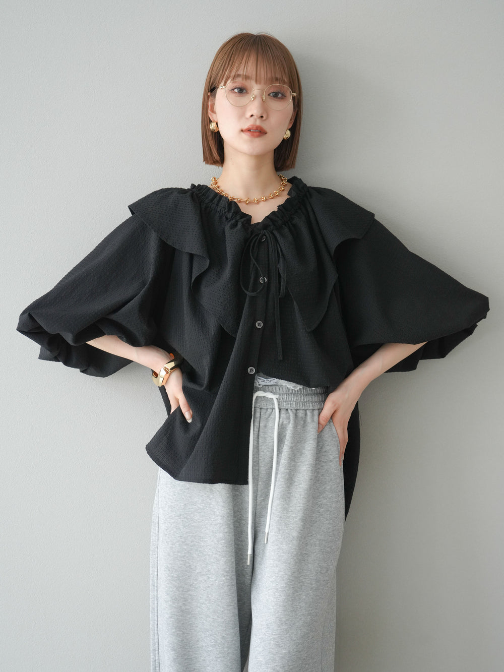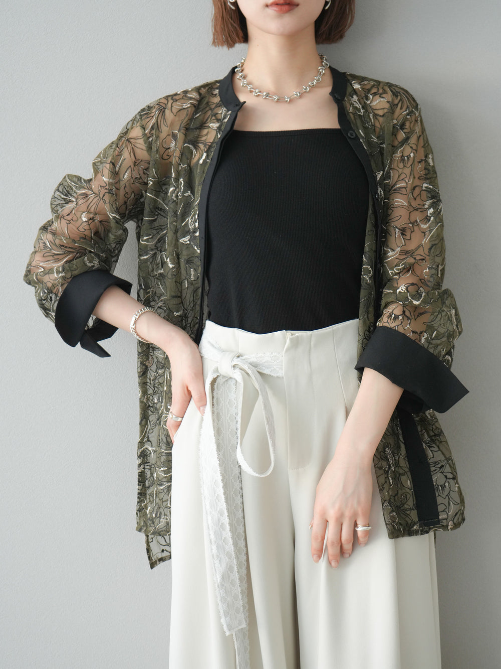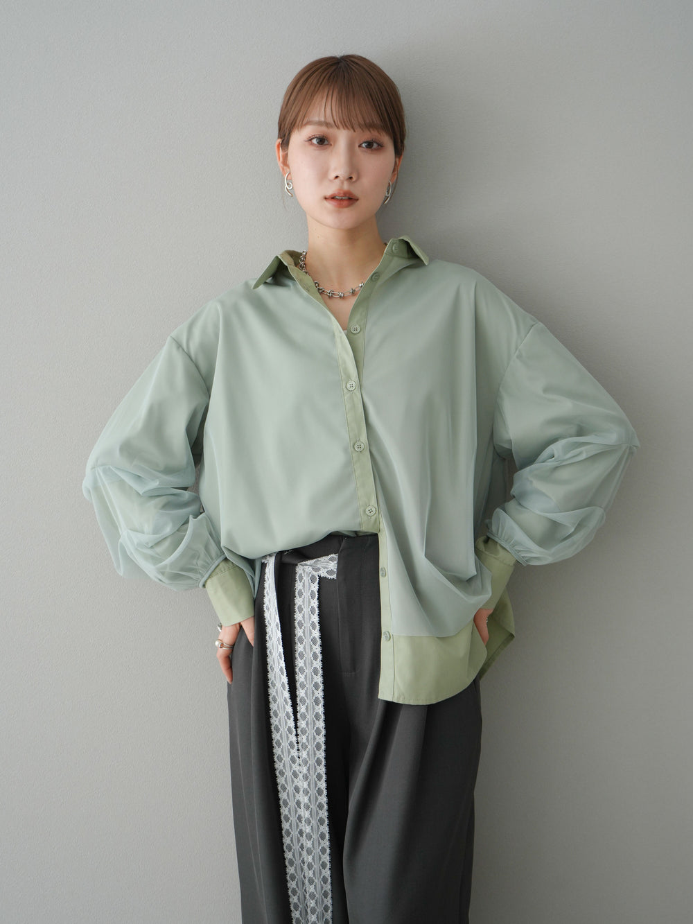 【預購】流蘇提花 x 薄紗疊搭襯衫/黑色