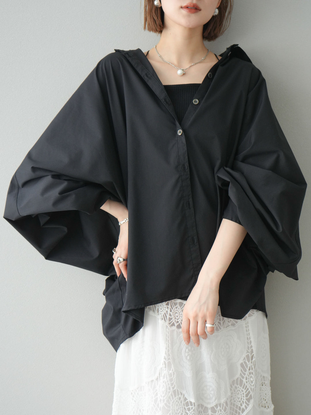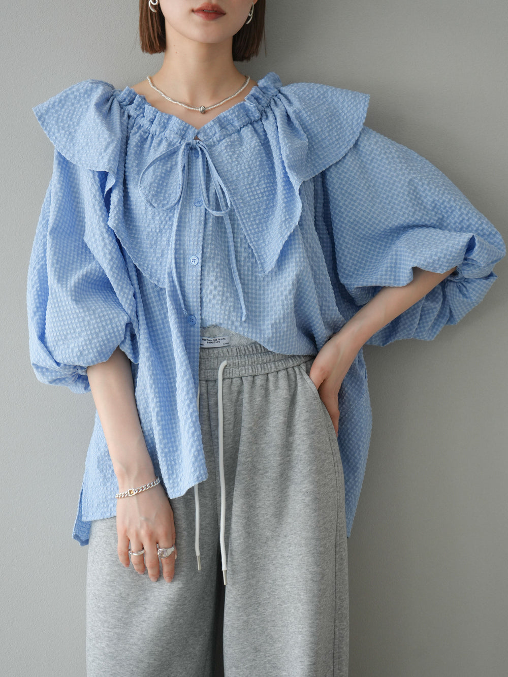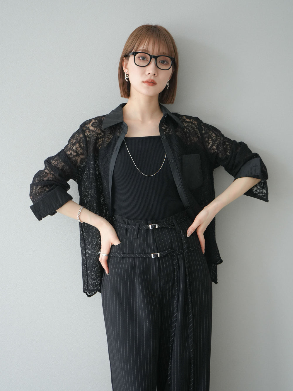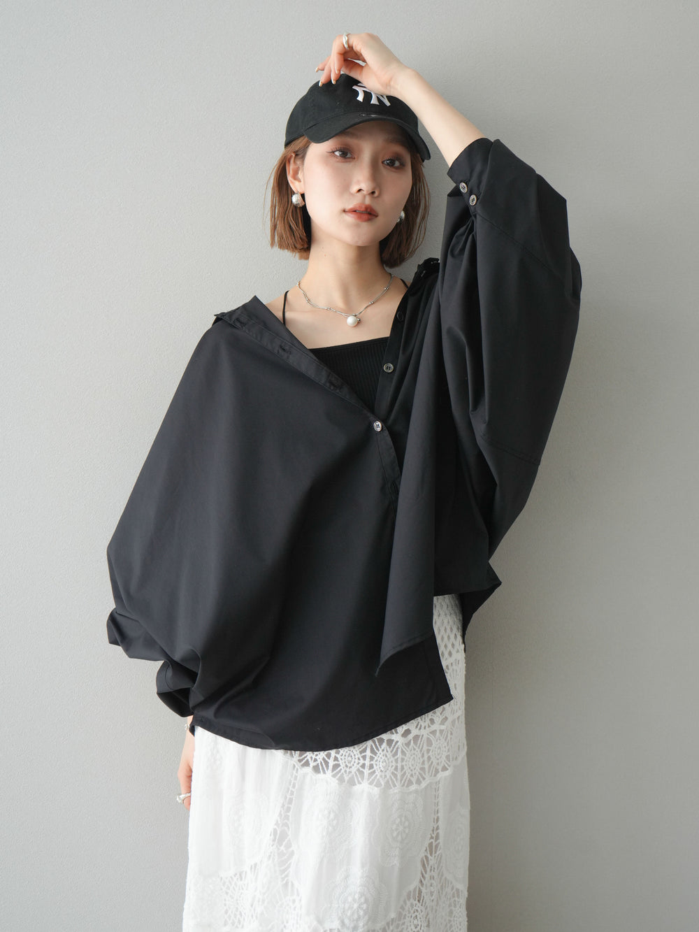 【預購】流蘇提花 x 薄紗疊搭襯衫/黑色