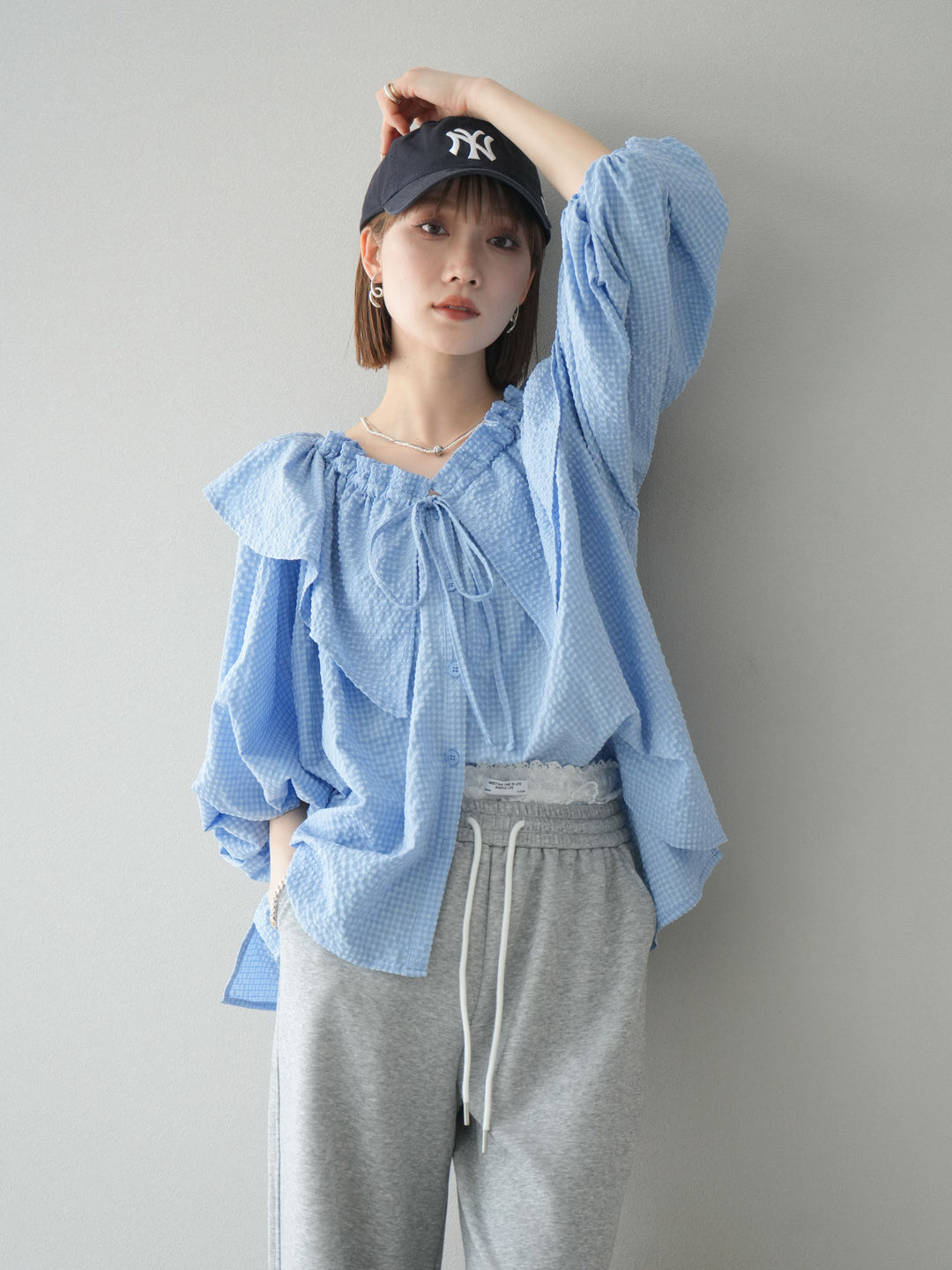 [予約]チェック柄チュールシャツアンサンブル/ブラウン