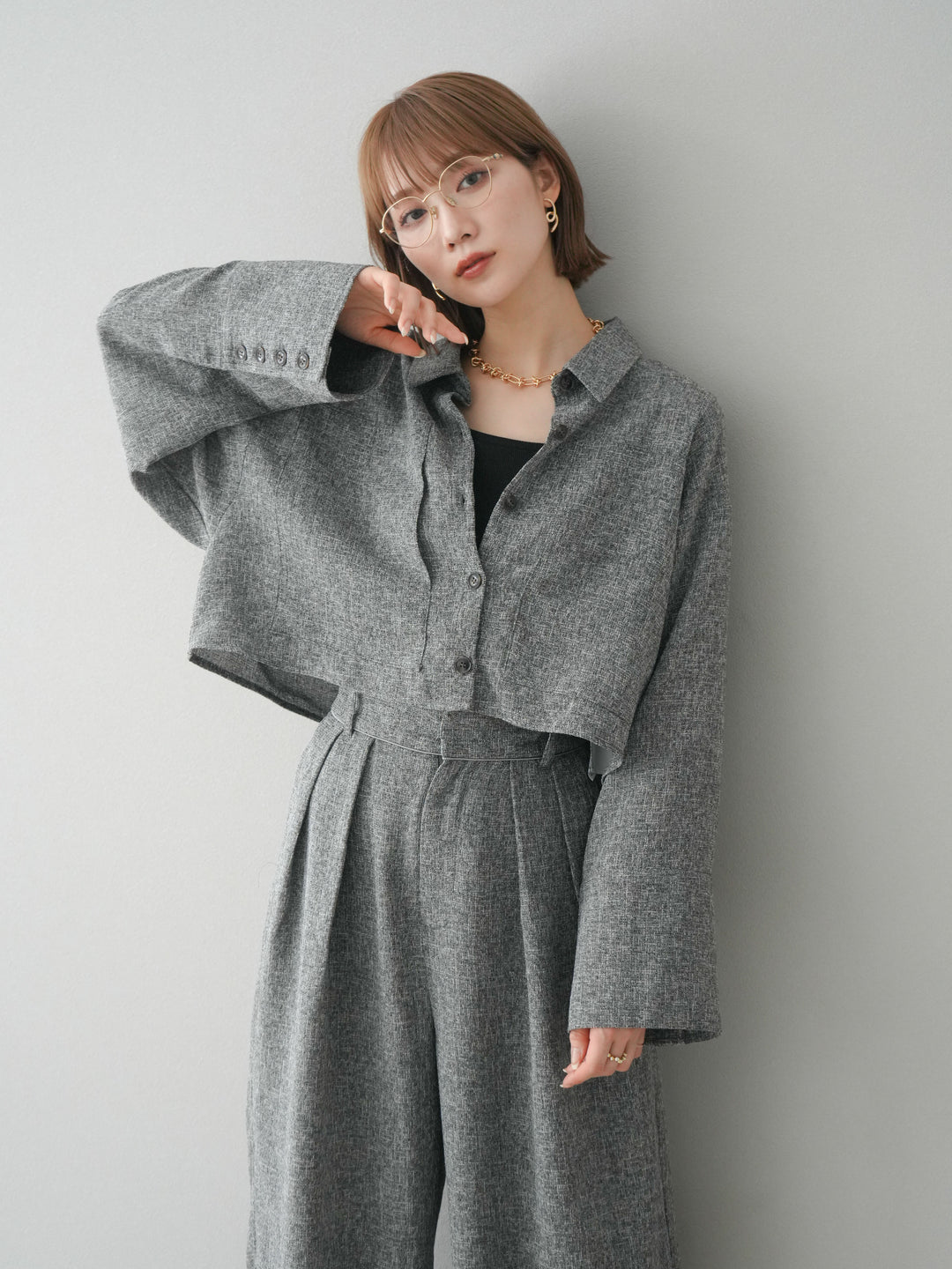 [予約]チェック柄チュールシャツアンサンブル/ブラック