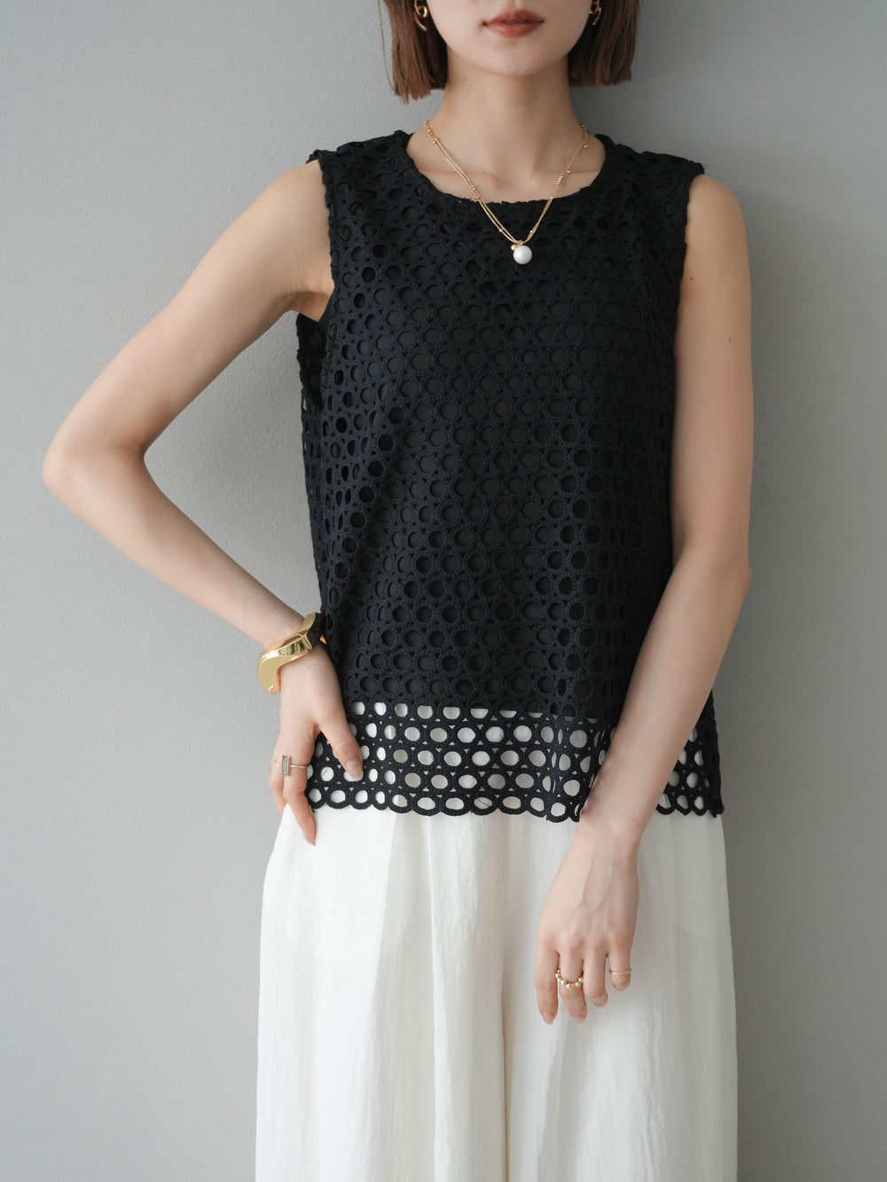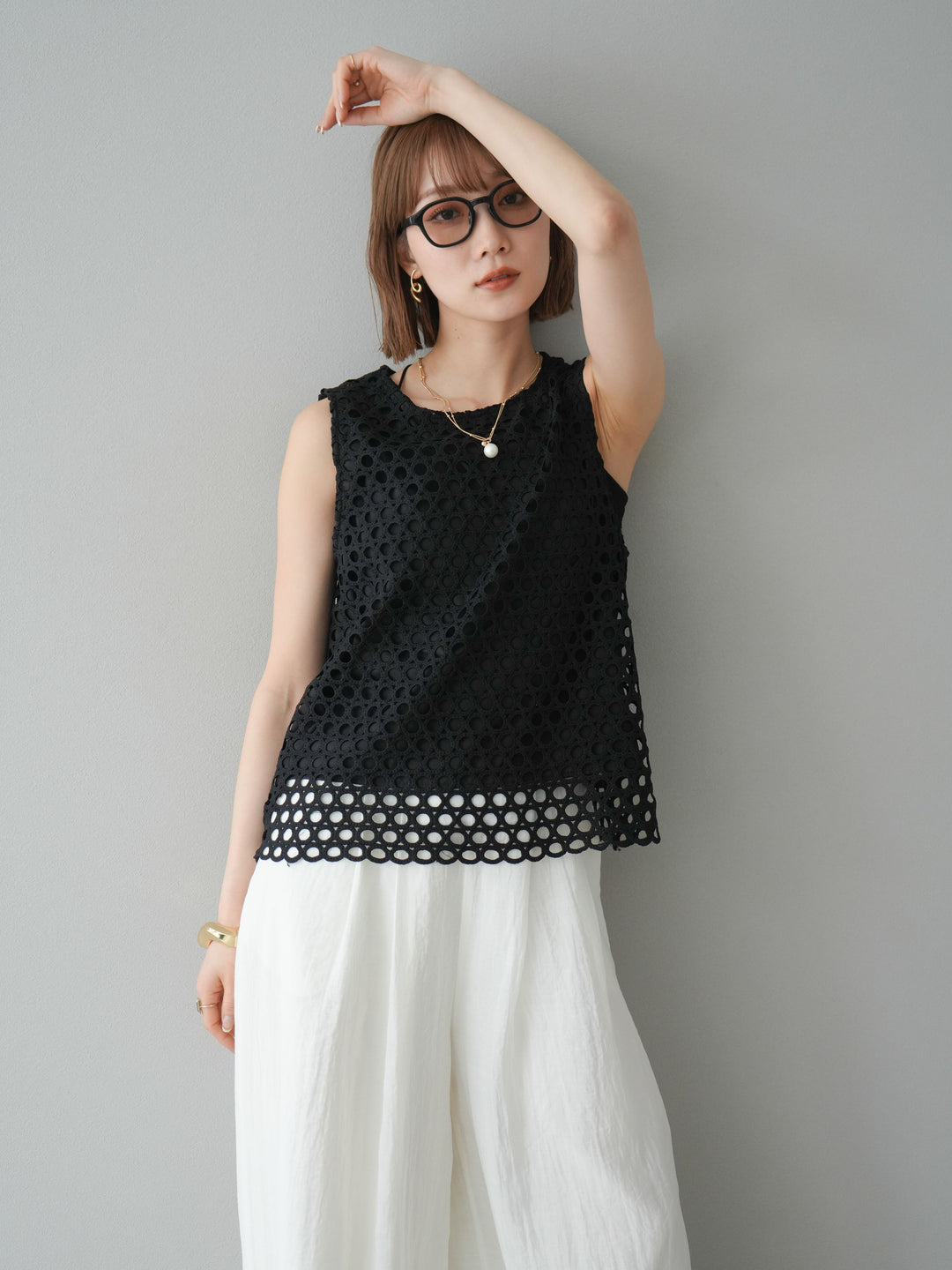 [予約]チュールフラワーフロッキーショートブラウス/ブラック