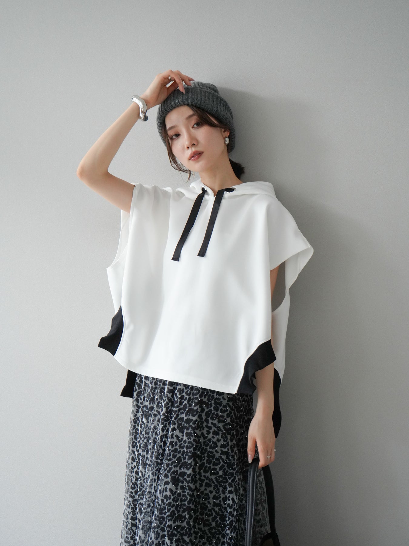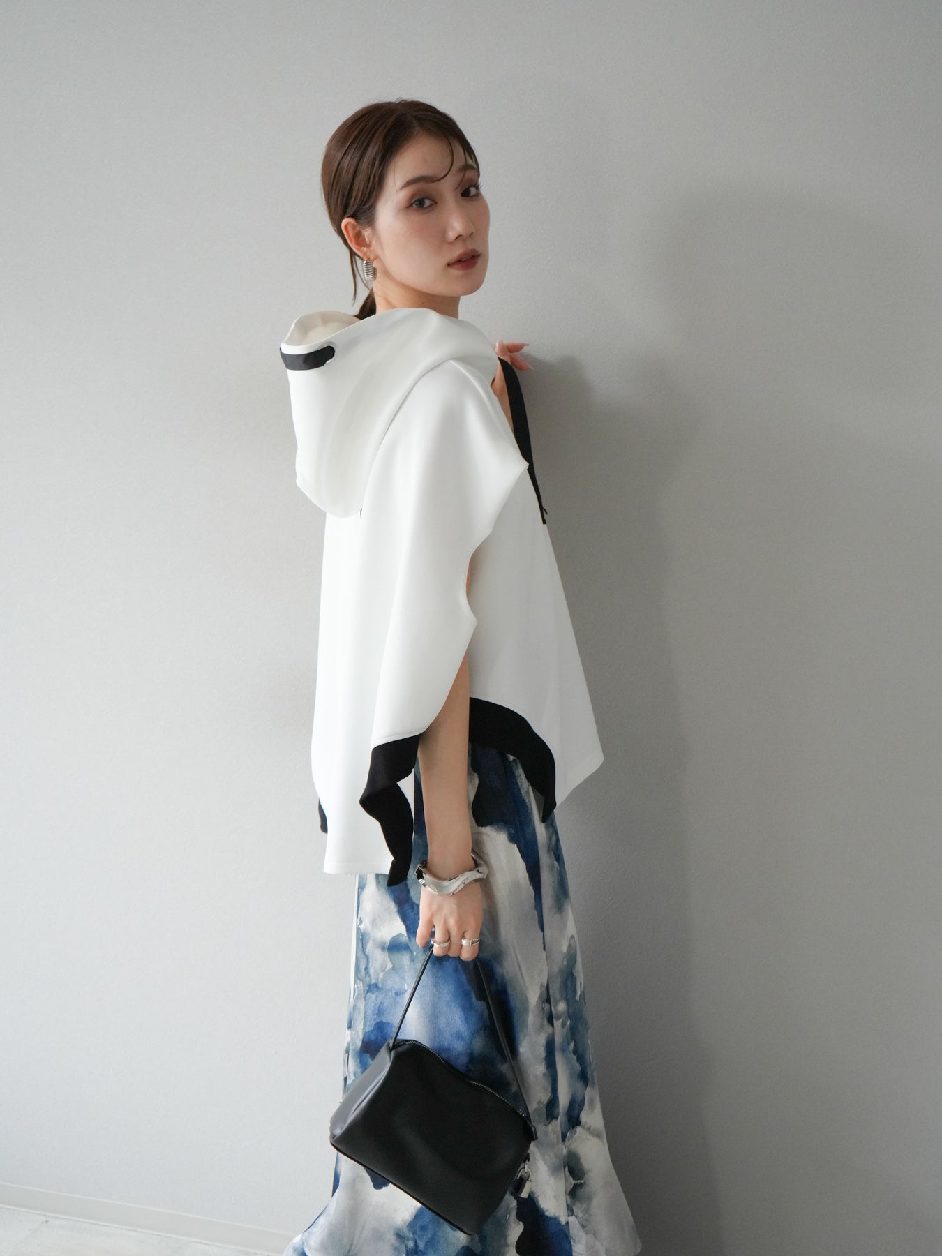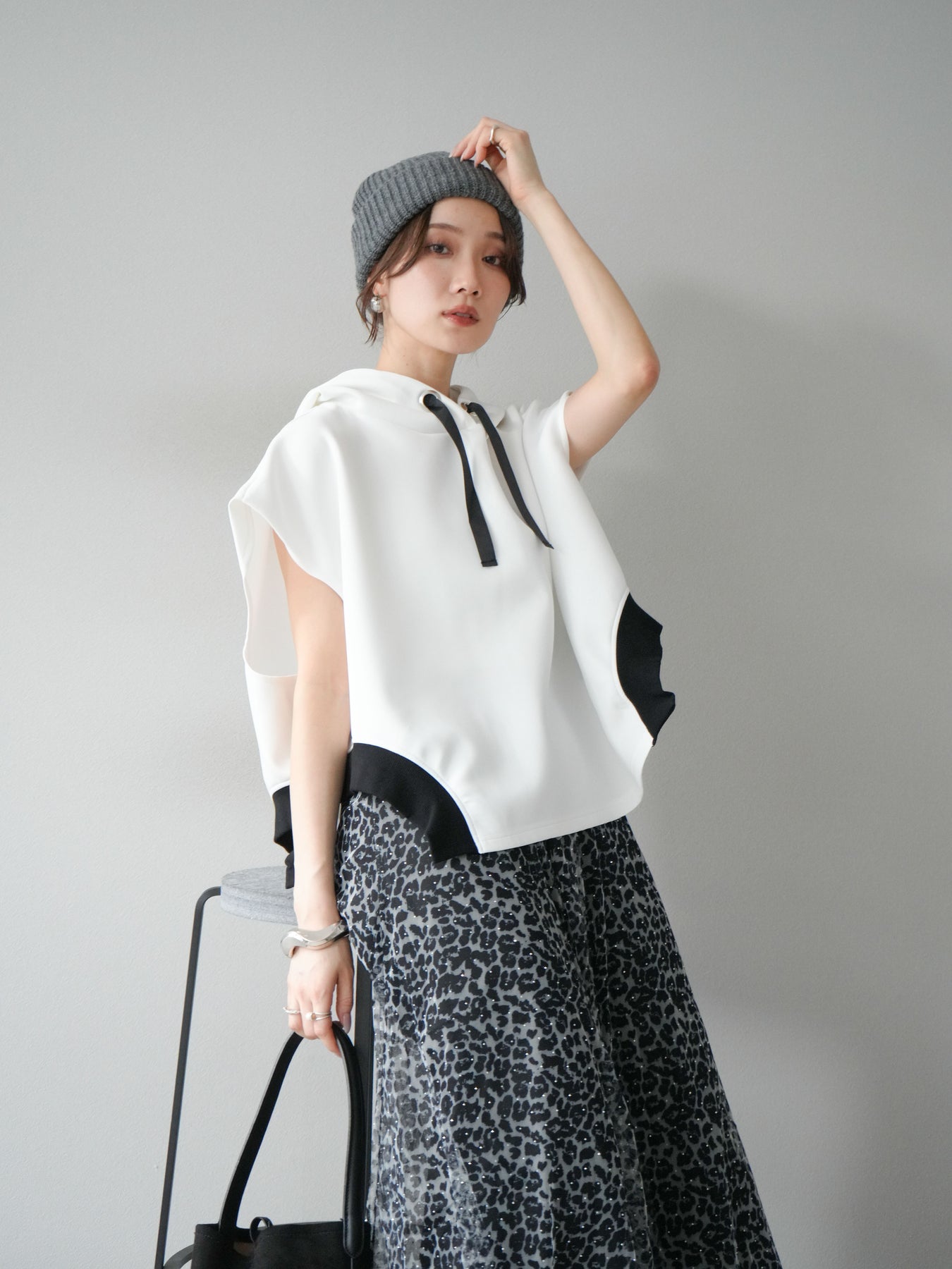 アシンメトリーな裾ラインが印象的なドルマンフーディー。ゆったりとしたシルエットと落ち感のある生地がリラックス感を与えつつ、モードな雰囲気も漂わせます。背面にはZIPを配し、開閉によってスタイリングに変化をつけられるデザイン性の高い一枚。ドロップショルダーとワイドスリーブが抜け感を演出し、カットソーやシャツを合わせたレイヤードスタイルにも好相性。軽やかに羽織れるため、カジュアルからきれいめまで幅広く活躍するアイテムです。 ※ボトムス、キャミソール(インナー)以外の商品は一律でインナーは付属していません。