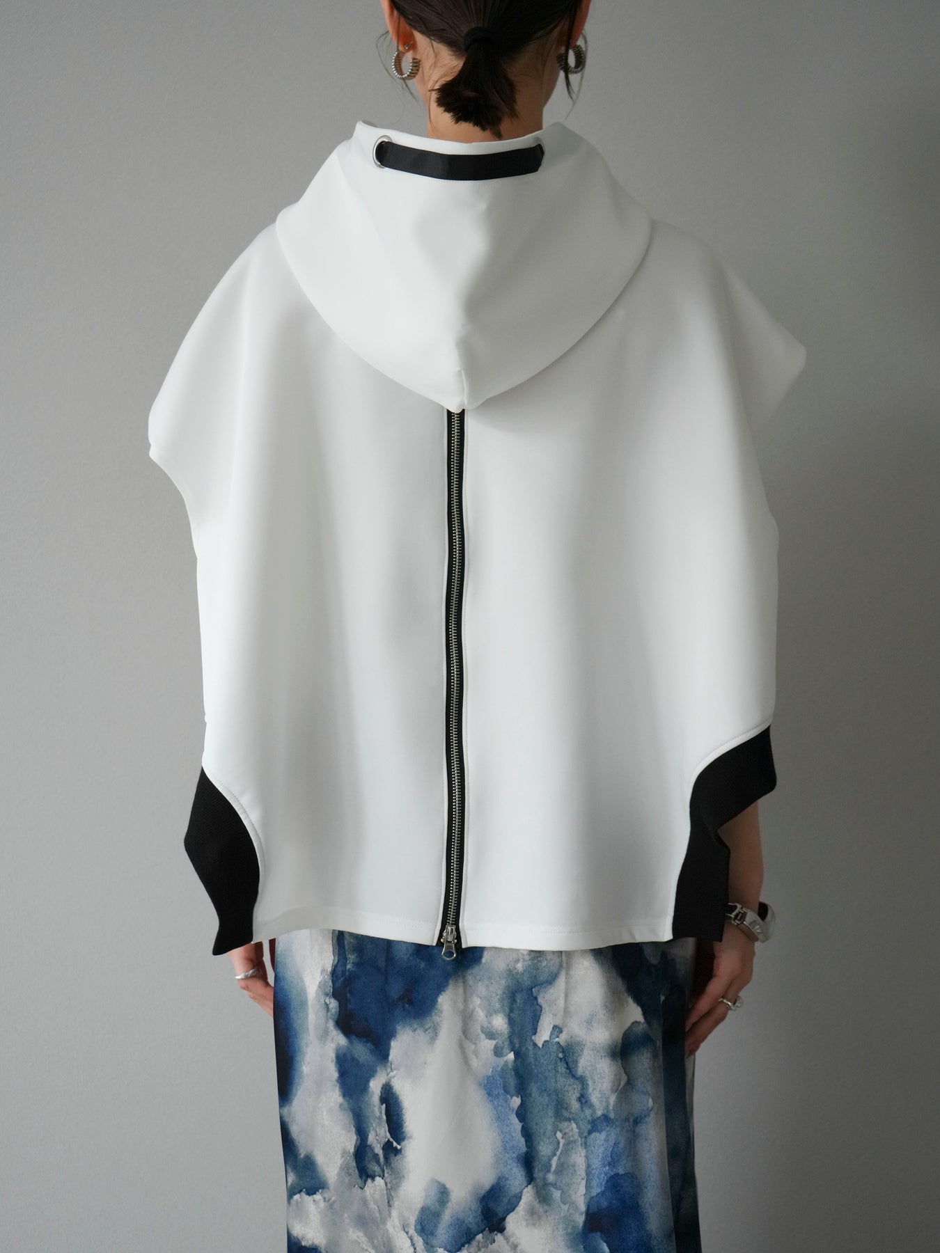 肩幅66cm バスト164cm アームホール46cm 着丈フロント59cm 着丈バック63cm フード高さ39cm バックジップスリット長さ46cm 透け感なし 伸縮性あり