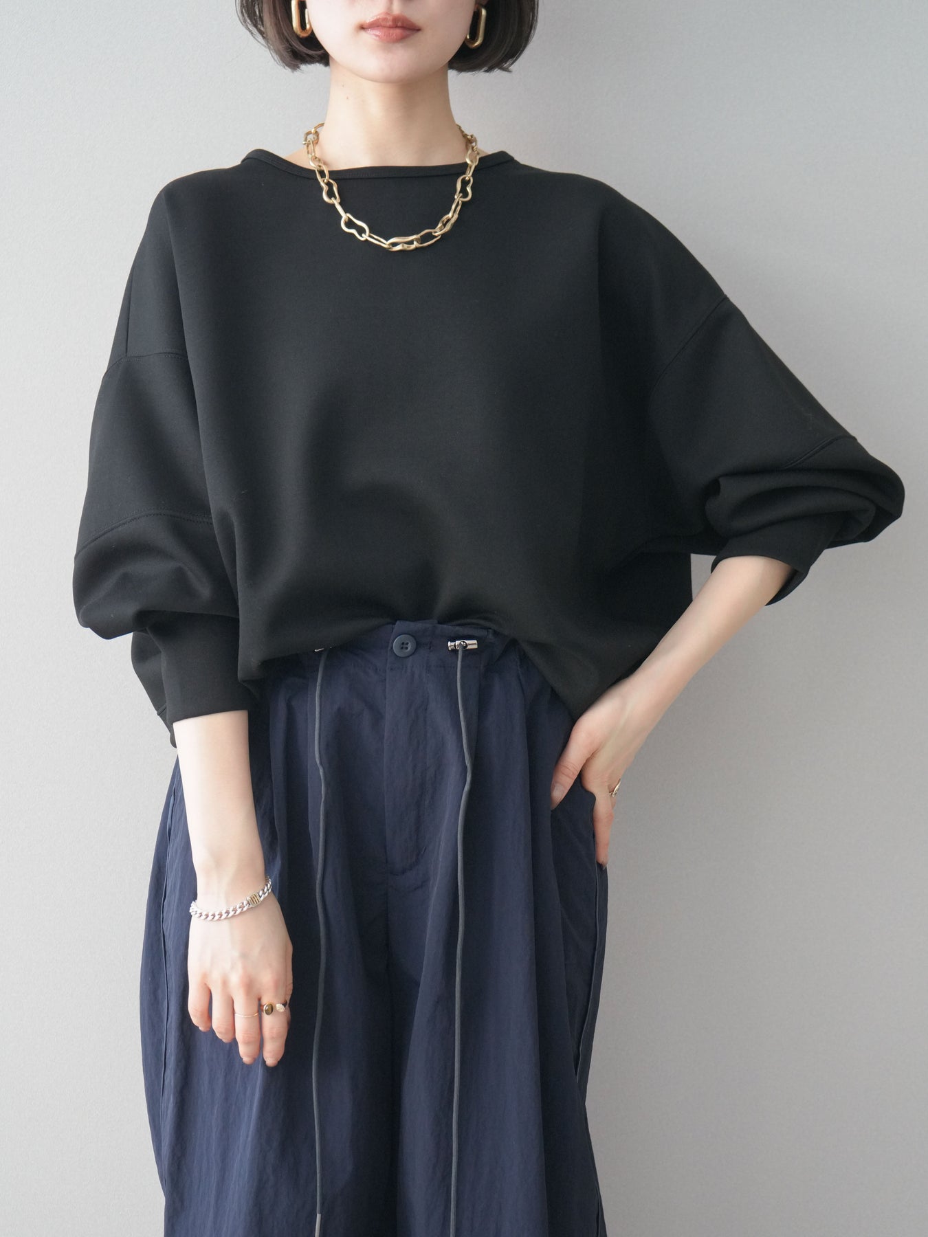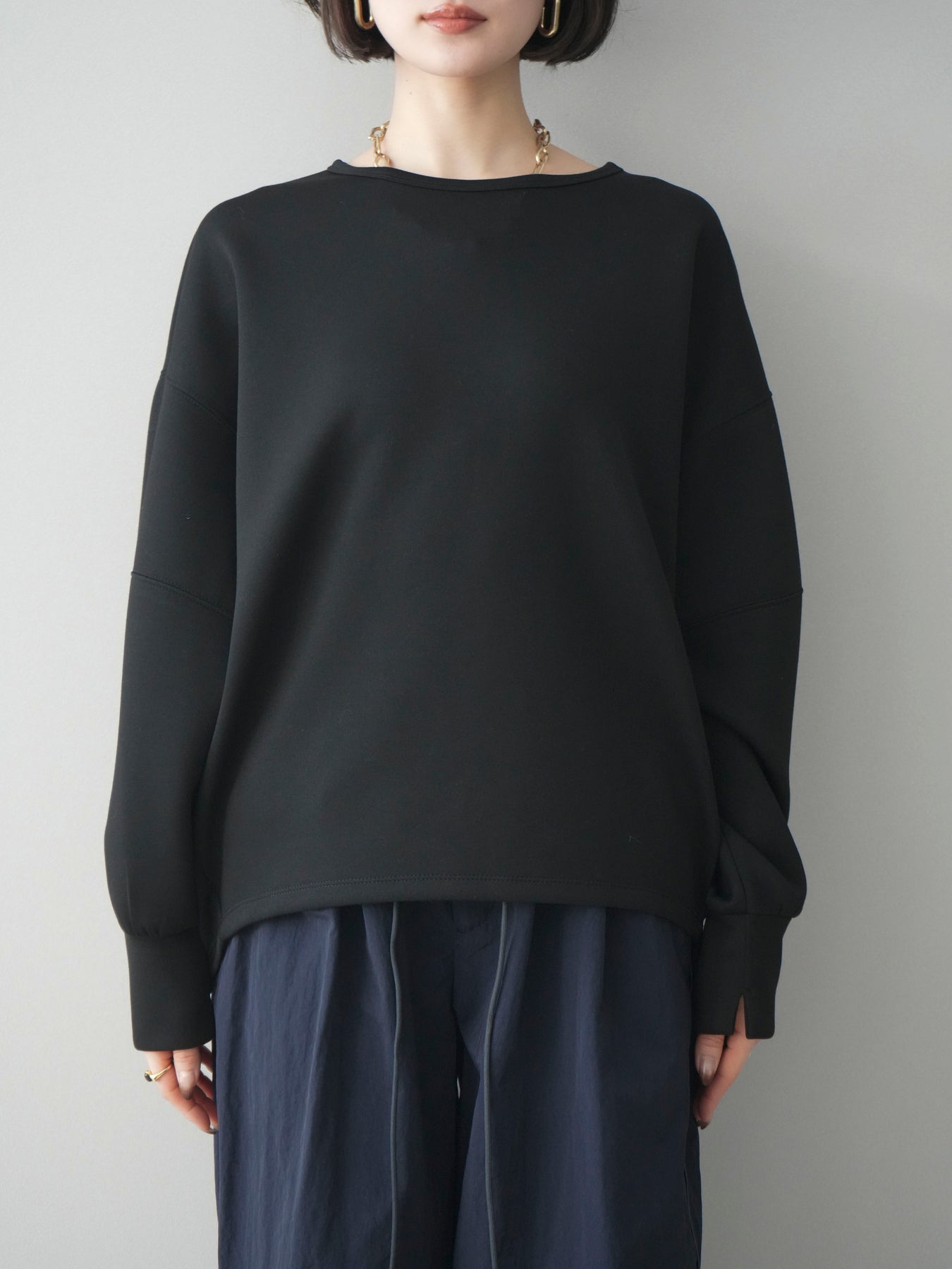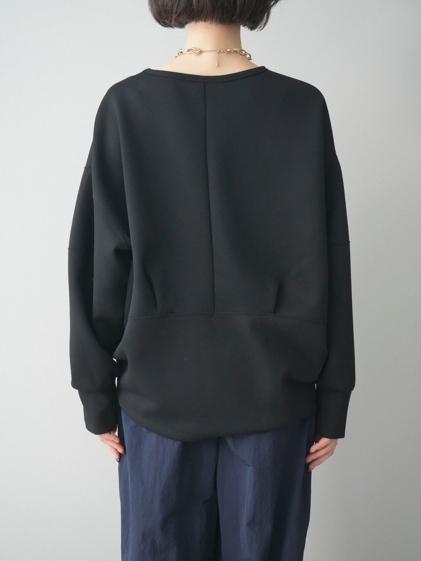軽やかな着心地が魅力のライトポンチ素材を使用したコクーンプルオーバー。程よくハリのある素材感が立体的なシルエットをキープし、自然に体のラインをカバーしてくれます。前後差のある裾デザインと丸みのあるフォルムが、シンプルながらもこなれた印象に。カジュアルになりすぎず、きれいめボトムスとも相性が良いため、デイリーからお出かけまで幅広いシーンで活躍する一着です。 ※ボトムス、キャミソール(インナー)以外の商品は一律でインナーは付属していません。