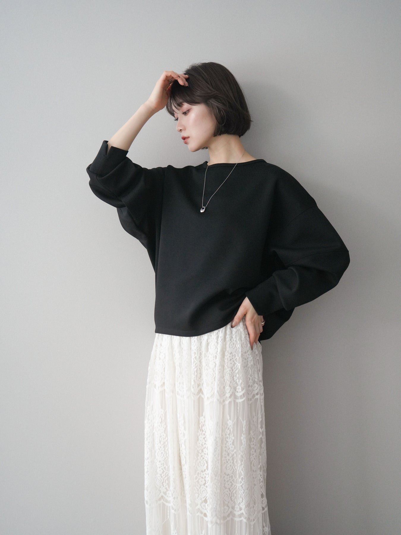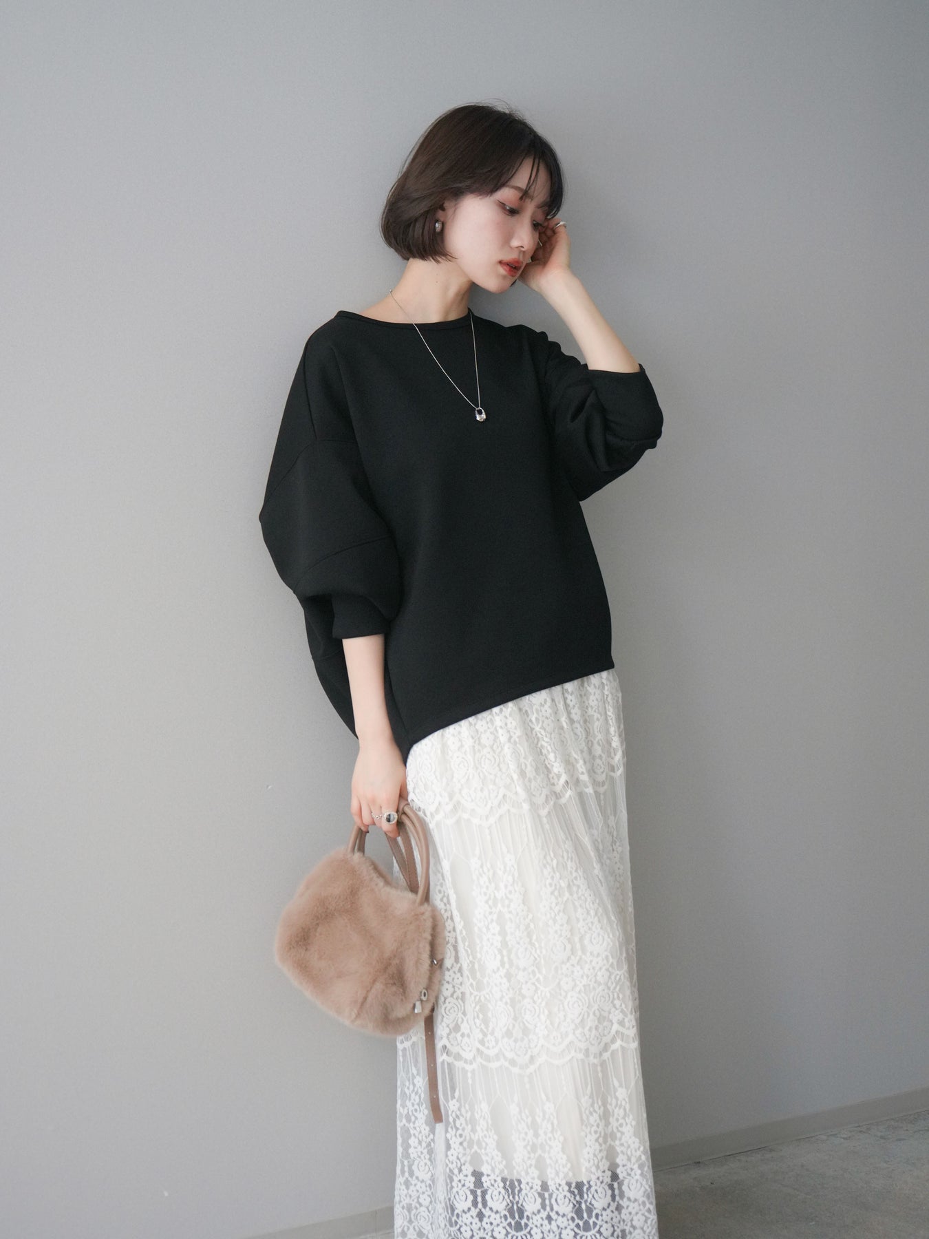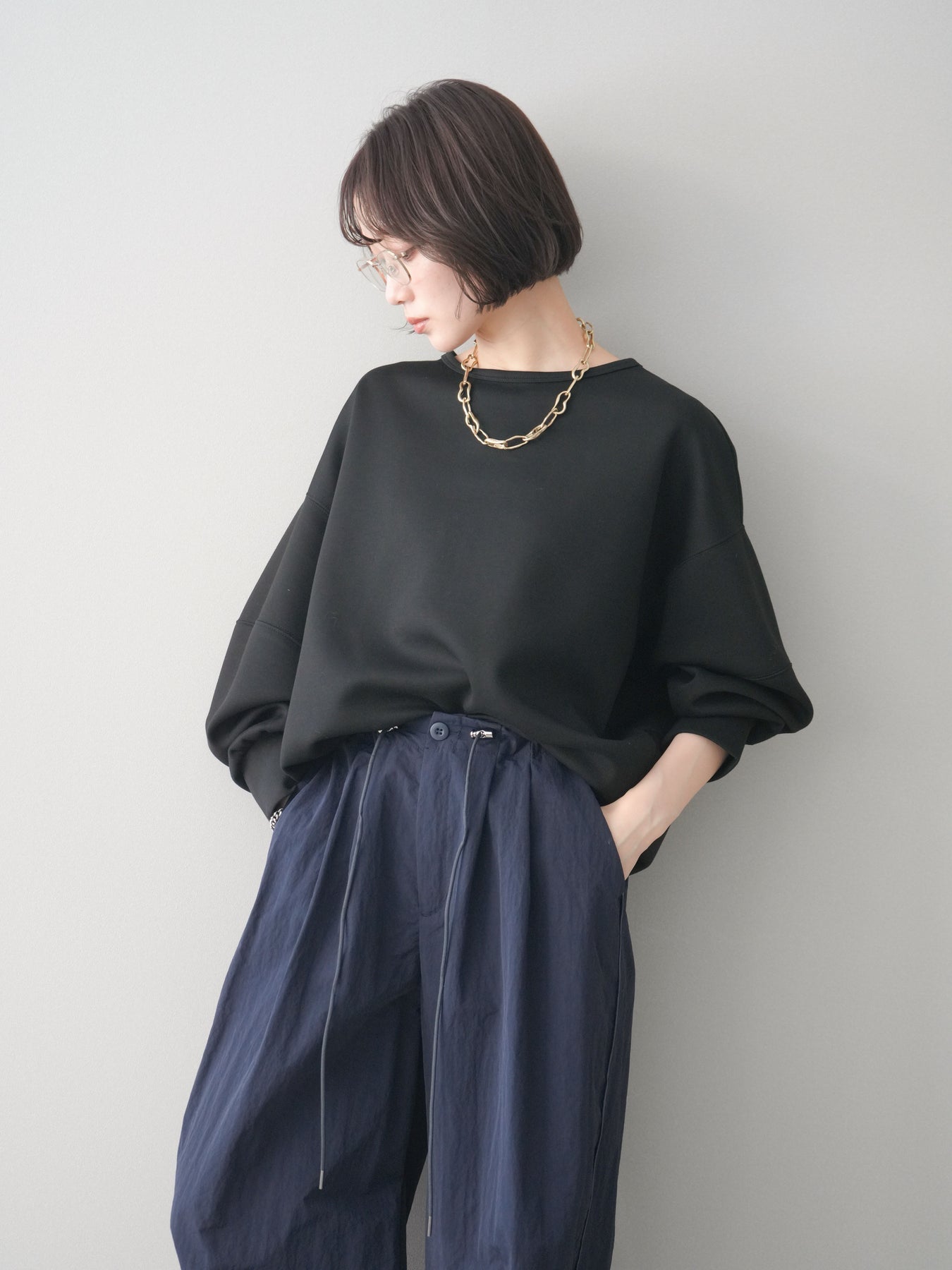 軽やかな着心地が魅力のライトポンチ素材を使用したコクーンプルオーバー。程よくハリのある素材感が立体的なシルエットをキープし、自然に体のラインをカバーしてくれます。前後差のある裾デザインと丸みのあるフォルムが、シンプルながらもこなれた印象に。カジュアルになりすぎず、きれいめボトムスとも相性が良いため、デイリーからお出かけまで幅広いシーンで活躍する一着です。 ※ボトムス、キャミソール(インナー)以外の商品は一律でインナーは付属していません。