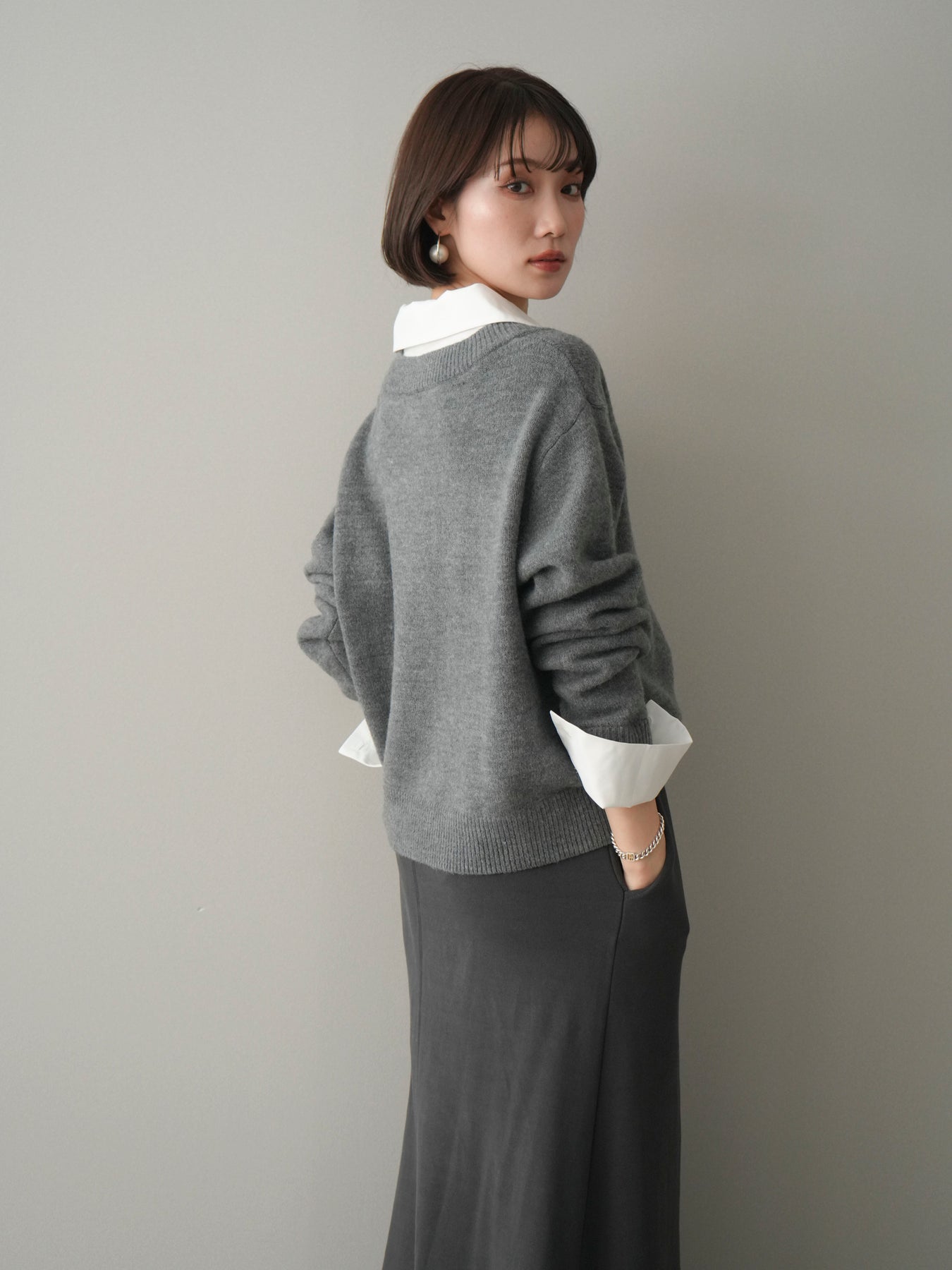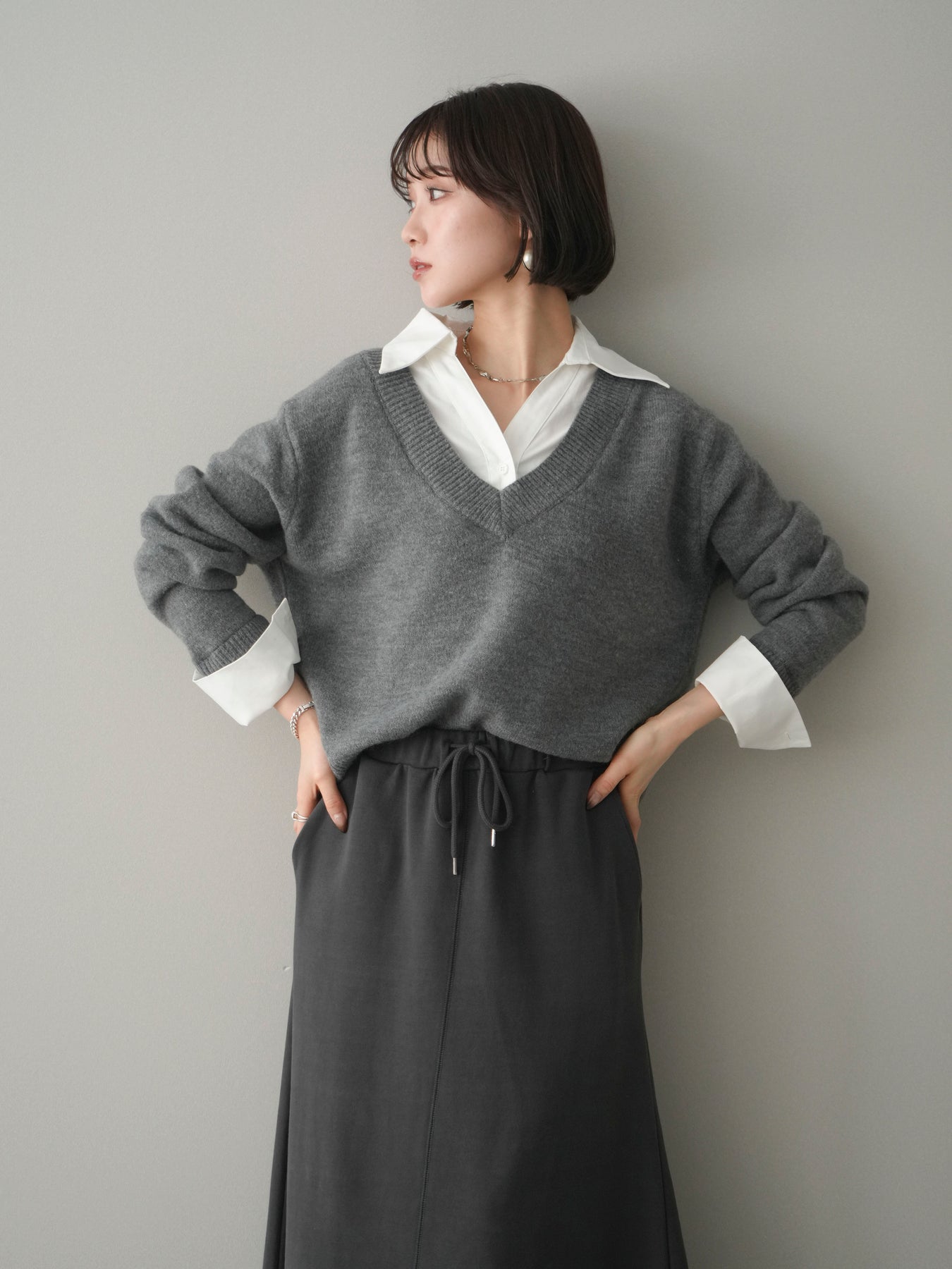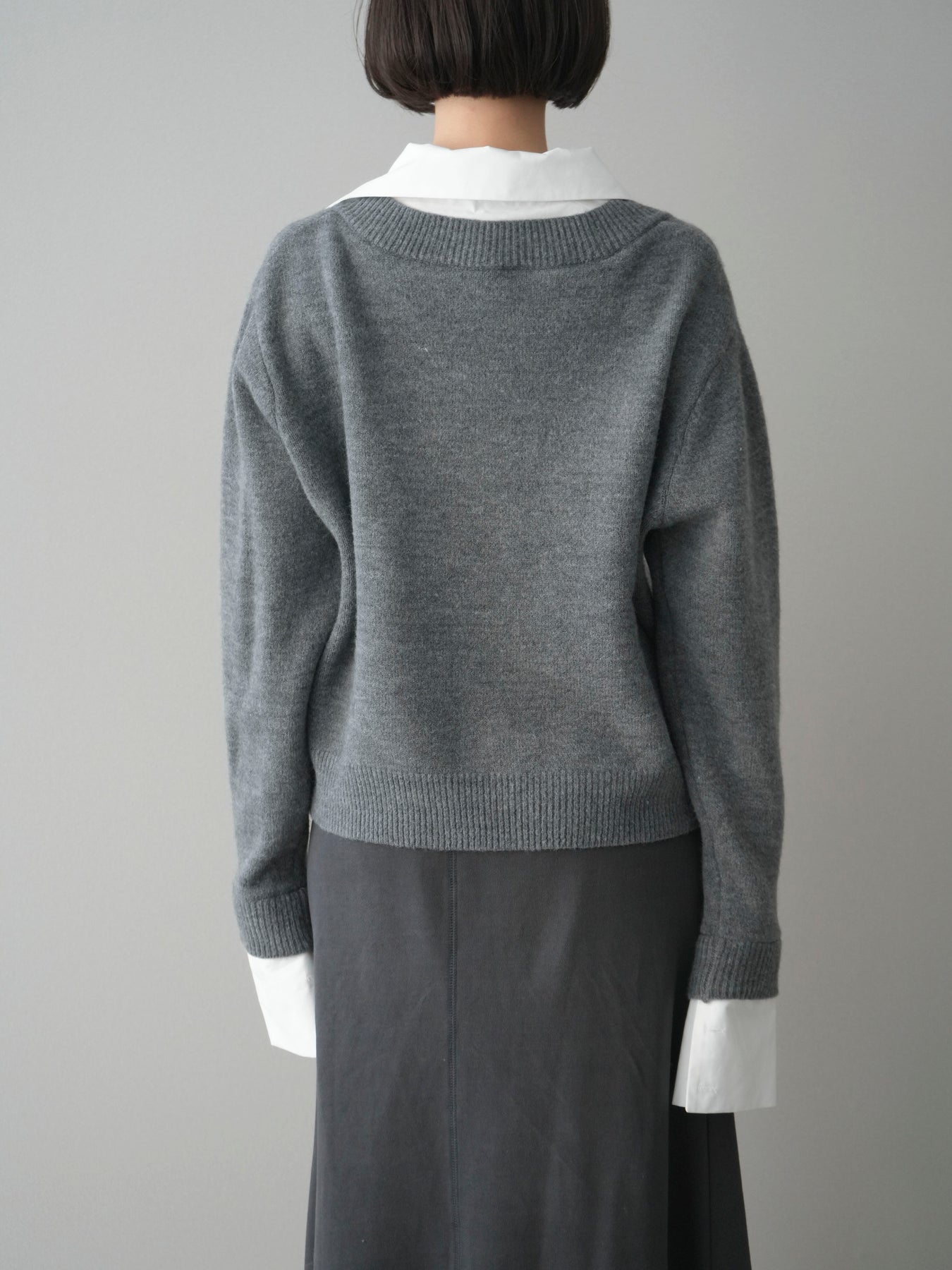 [予約]シャツドッキングVネックニットトップス/gray