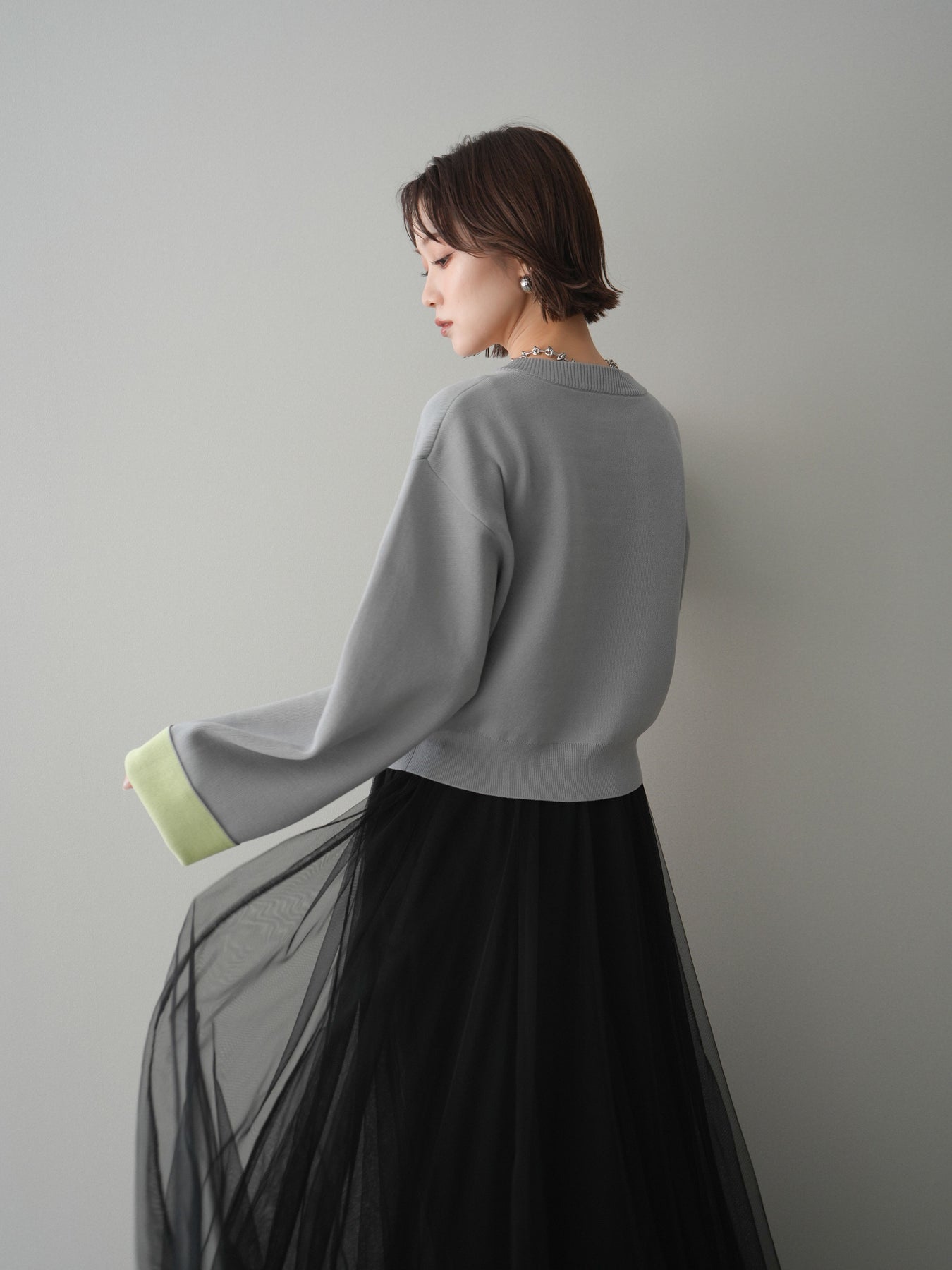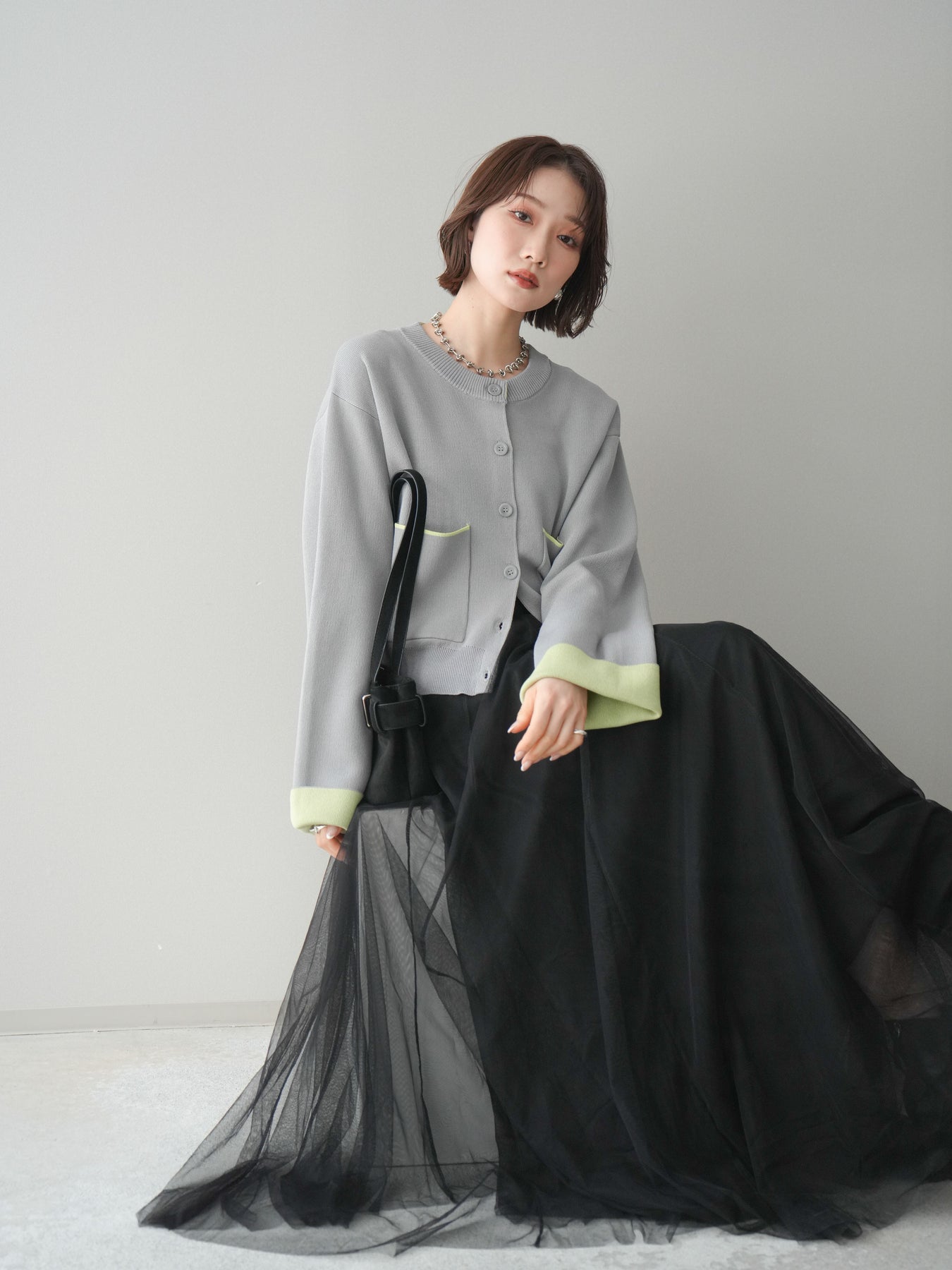 [予約]レーヨンポリダブルフェイスニットカーディガン/gray