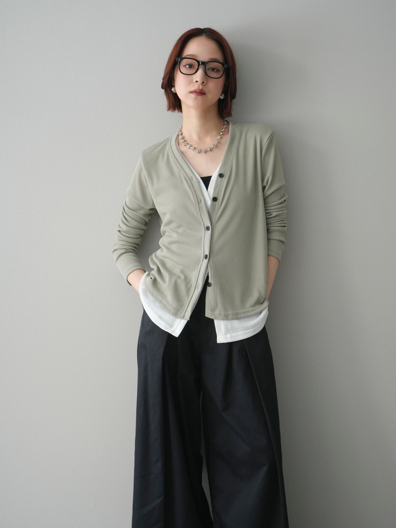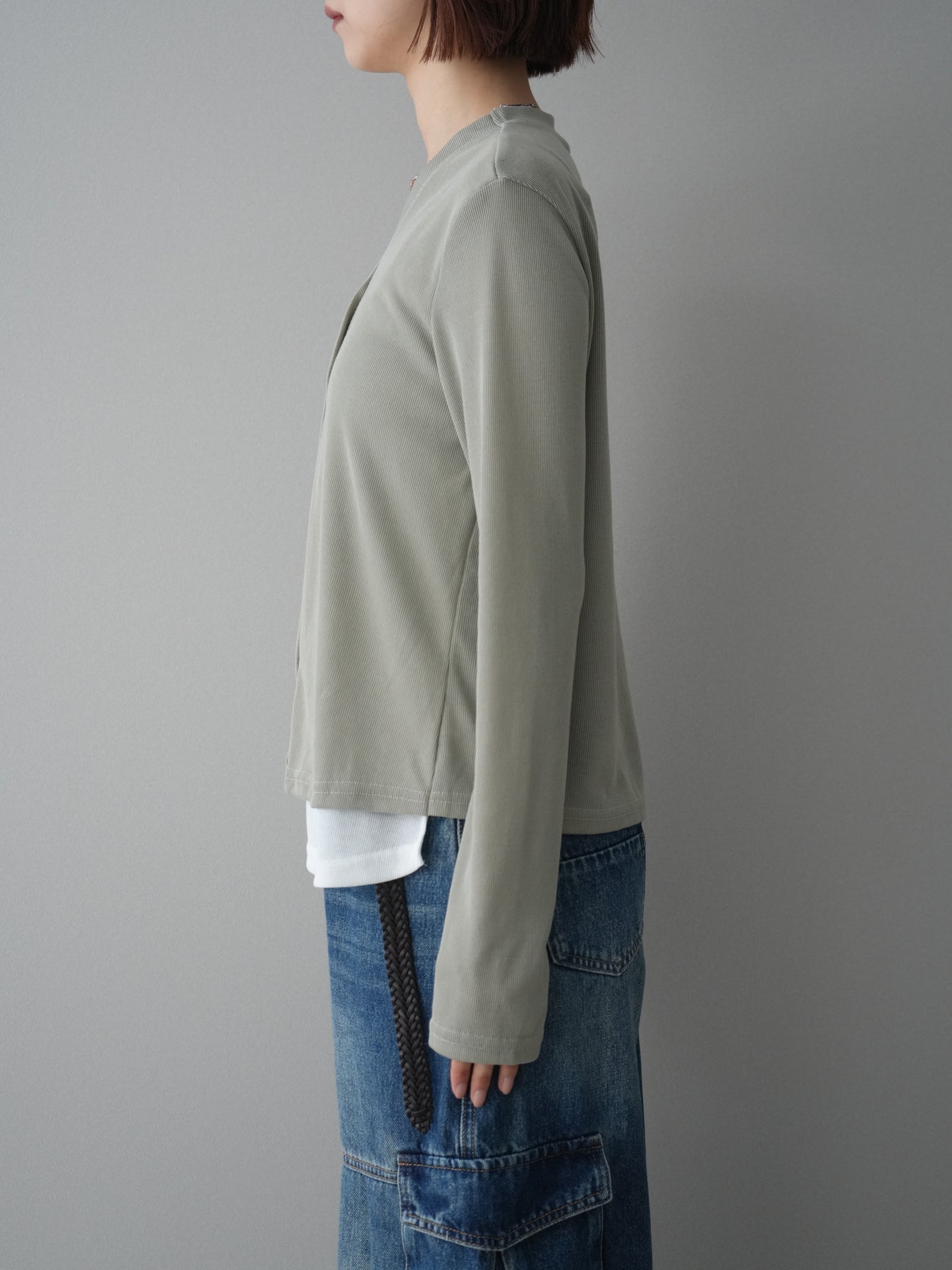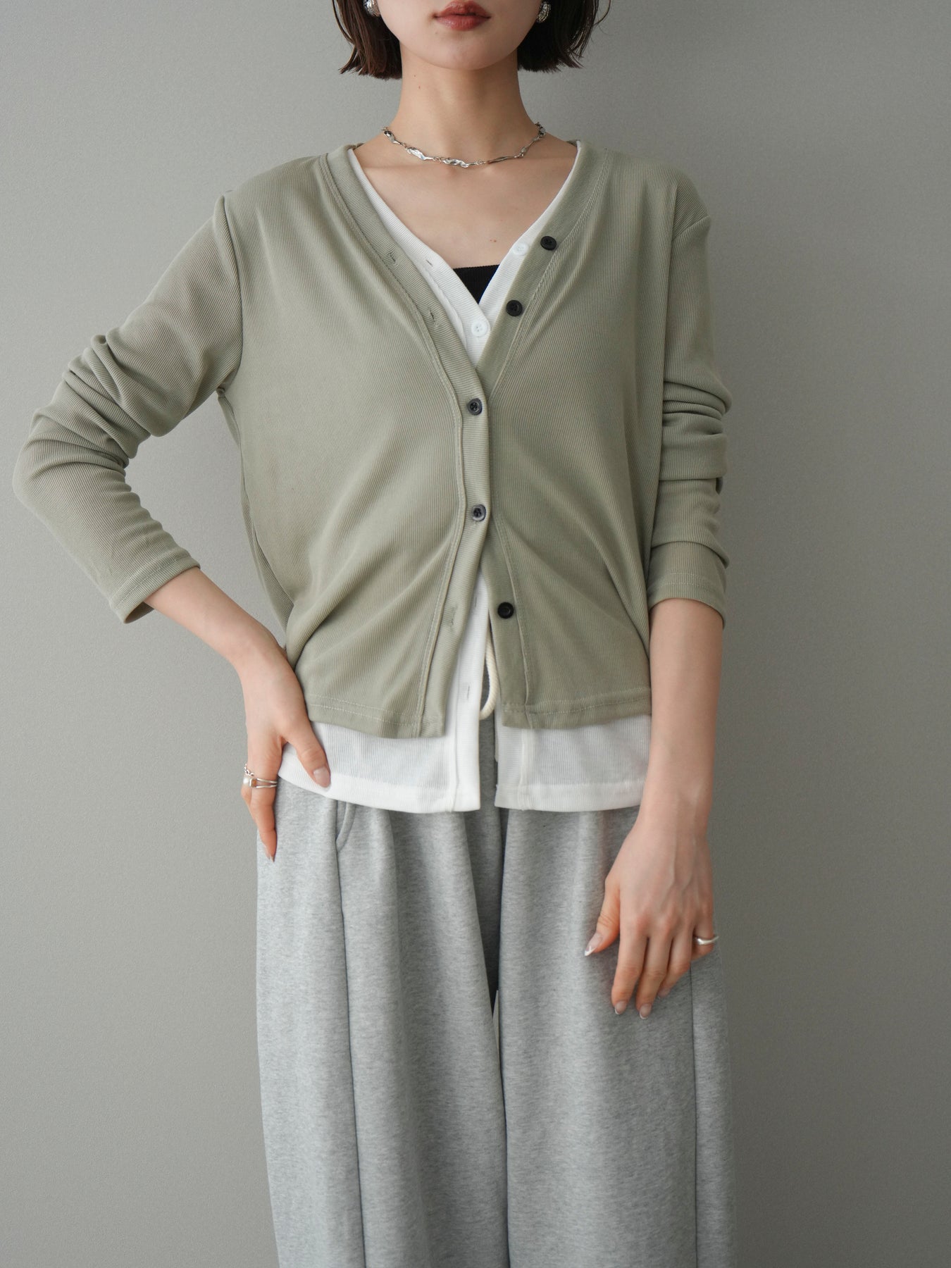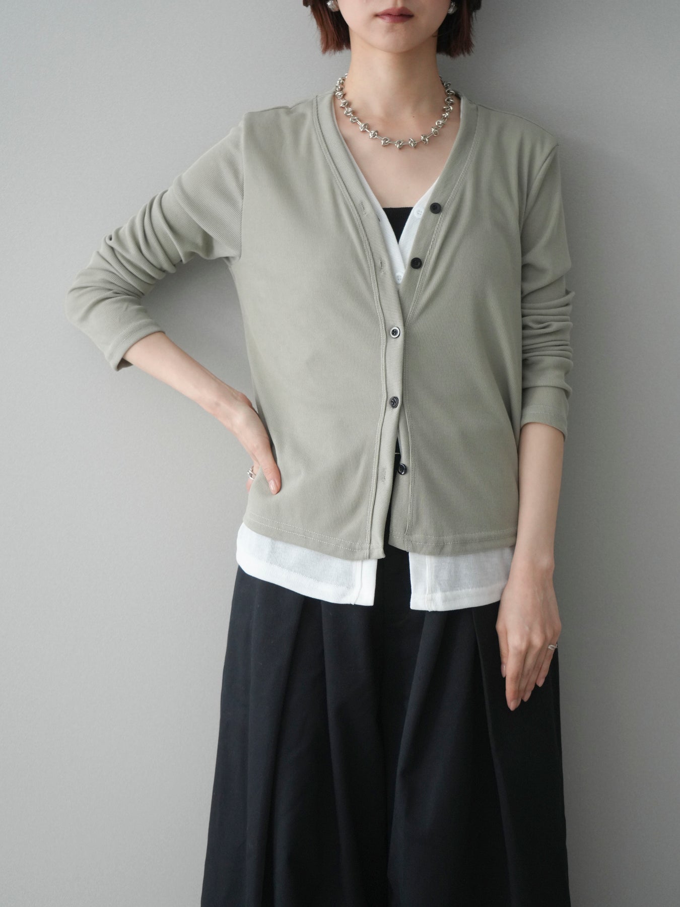 [予約]配色レイヤードカットリブカーディガン/lightgreen