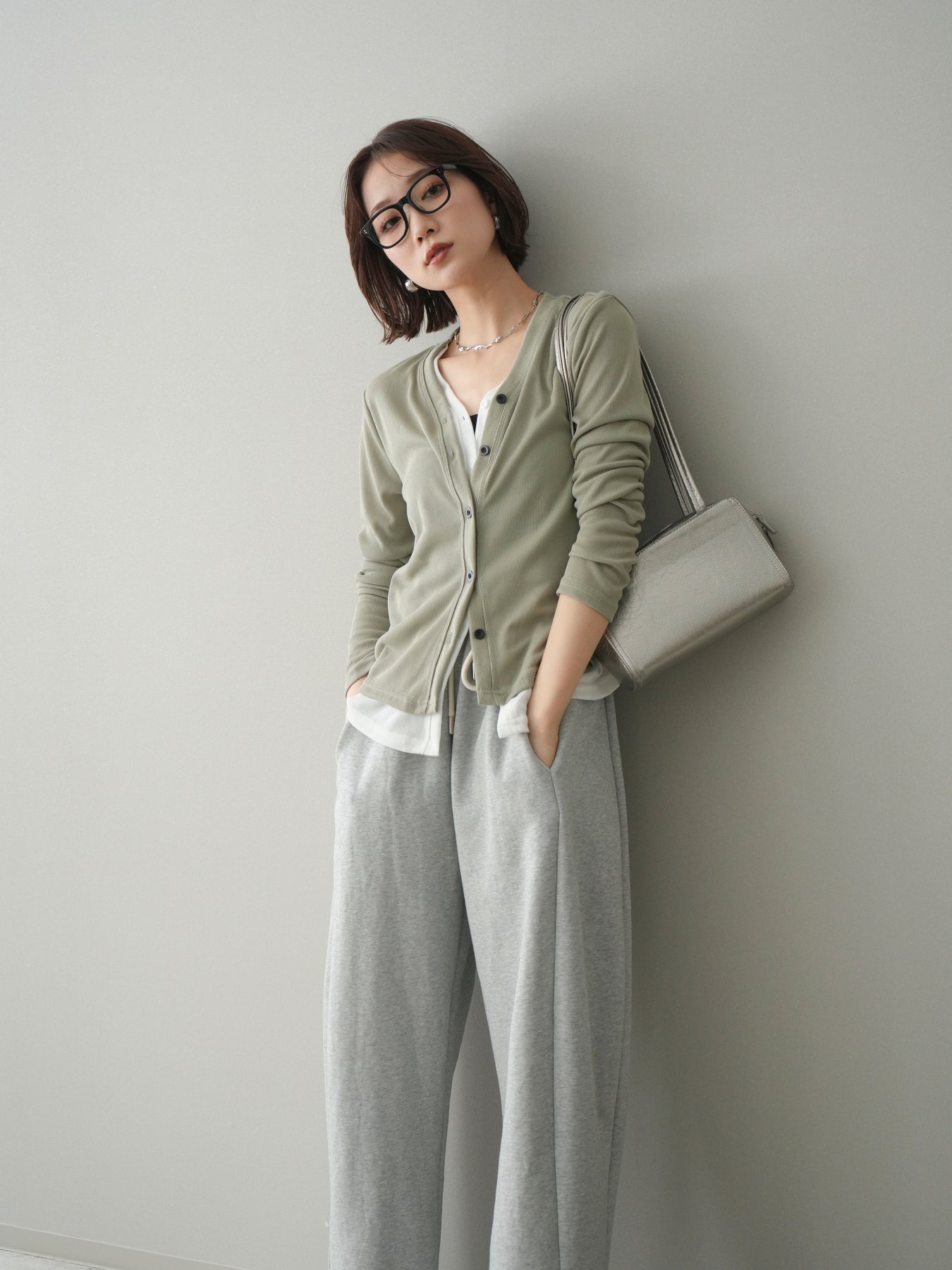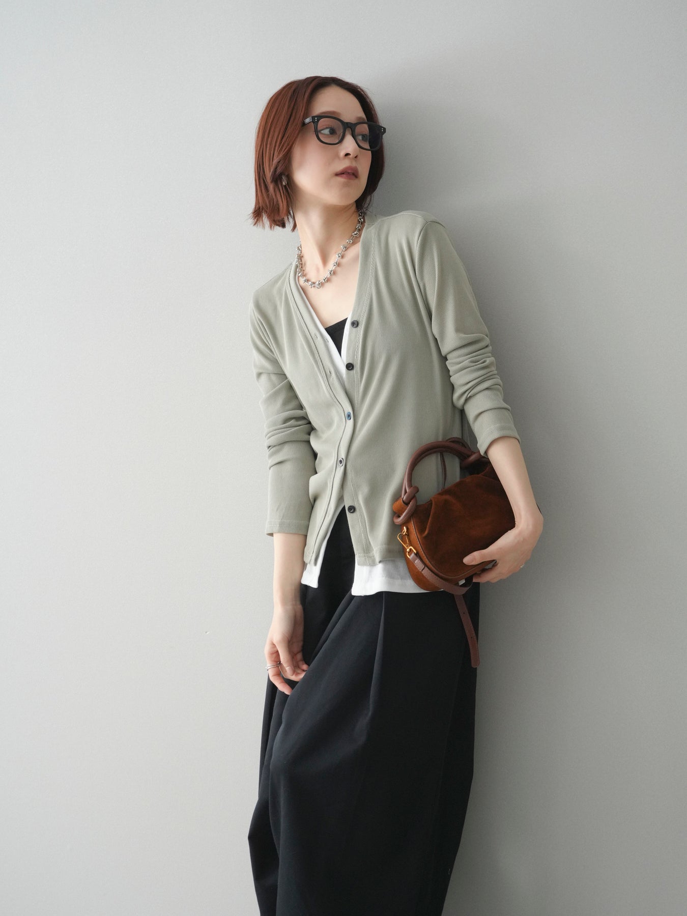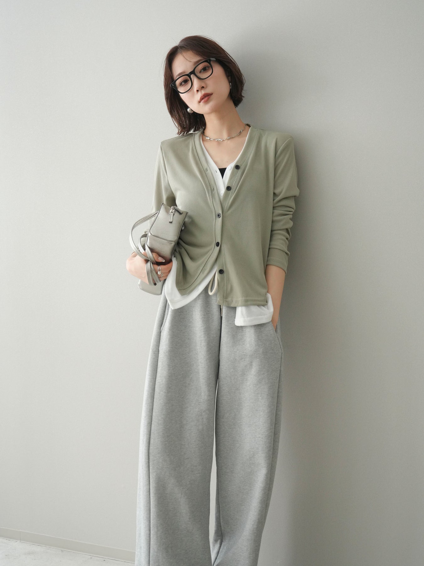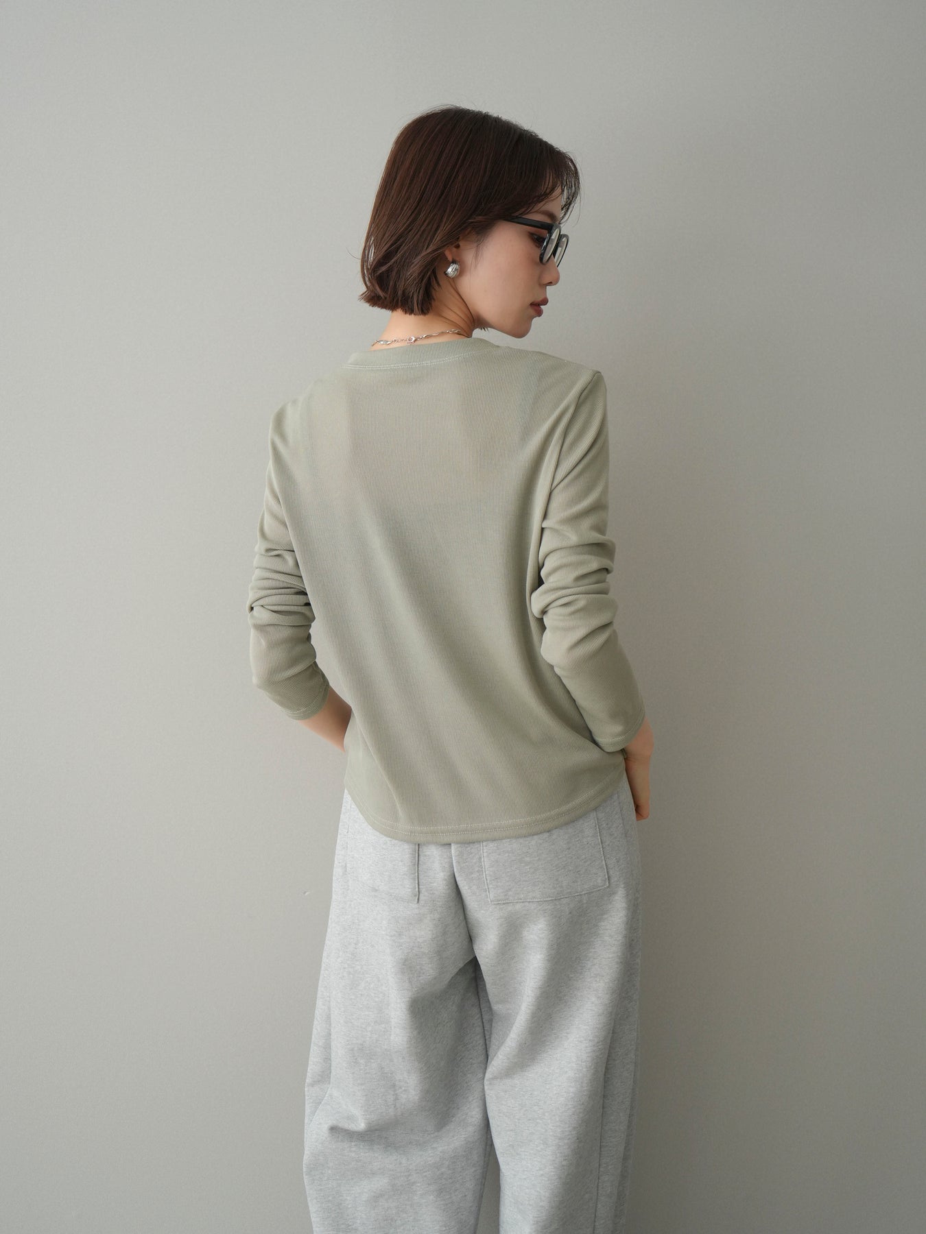 [予約]配色レイヤードカットリブカーディガン/lightgreen