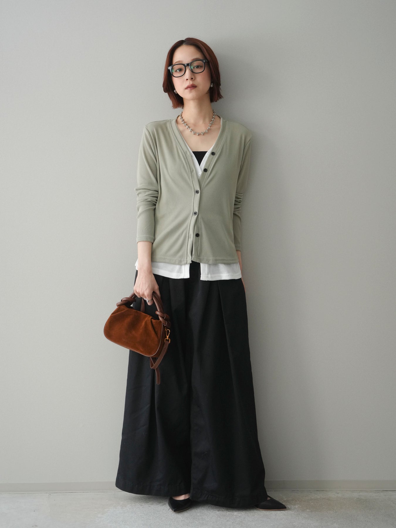 配色のレイヤードデザインがポイントの、カットリブ素材カーディガン。シンプルなVネックに、裾から覗くレイヤード風ディテールを加えることで、1枚で奥行きのあるスタイリングが完成します。程よく伸縮性のあるリブ素材で着心地が良く、すっきりとしたシルエットながら体のラインを拾いにくいのも魅力。前を留めてトップス感覚でも、羽織りとしても活躍し、デイリーからきれいめまで幅広いコーディネートに取り入れやすい一着です。 ※ボトムス、キャミソール(インナー)以外の商品は一律でインナーは付属していません。