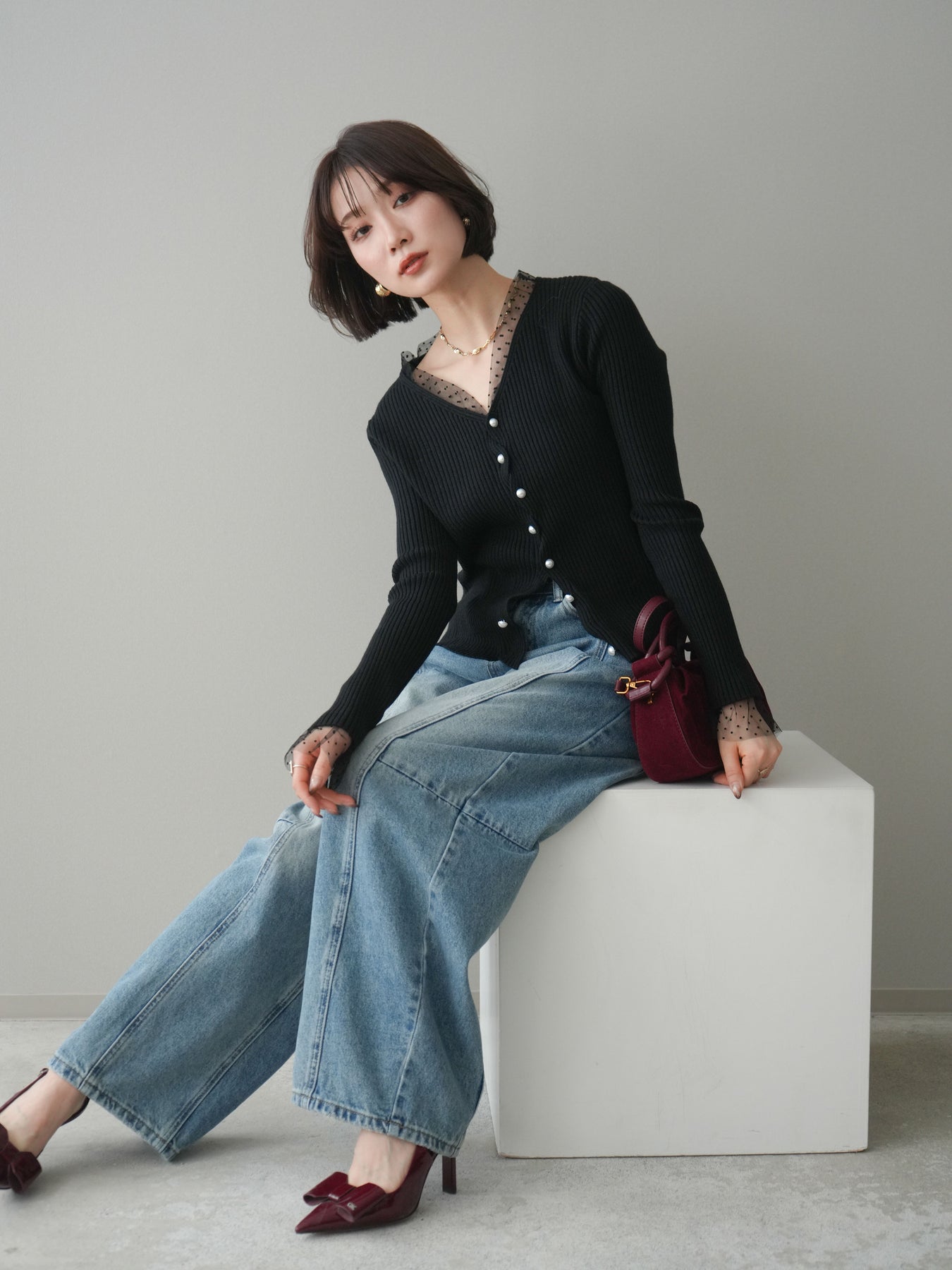[予約]チュールドッキングパールボタンニットカーディガンに関連する商品を探す↓