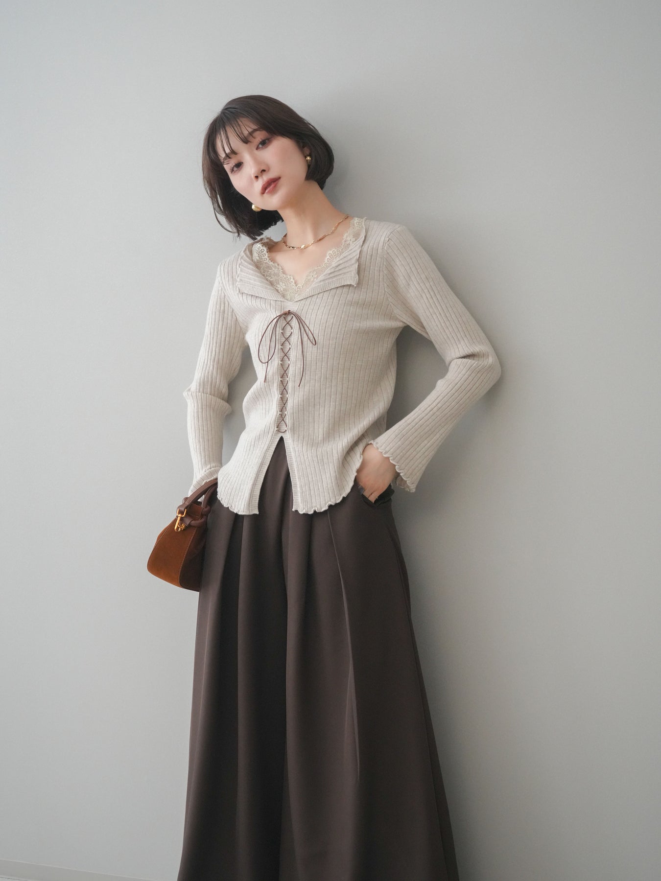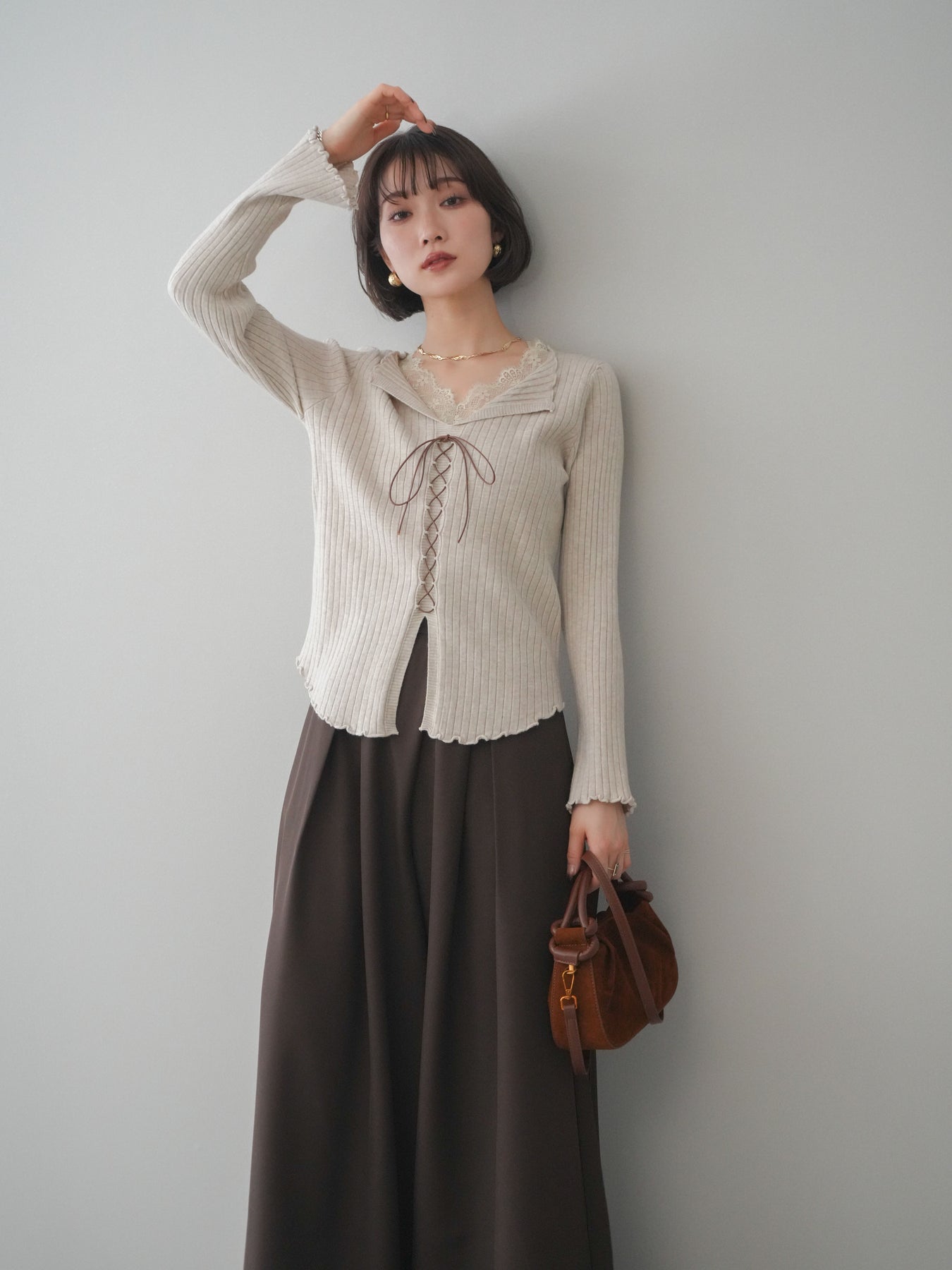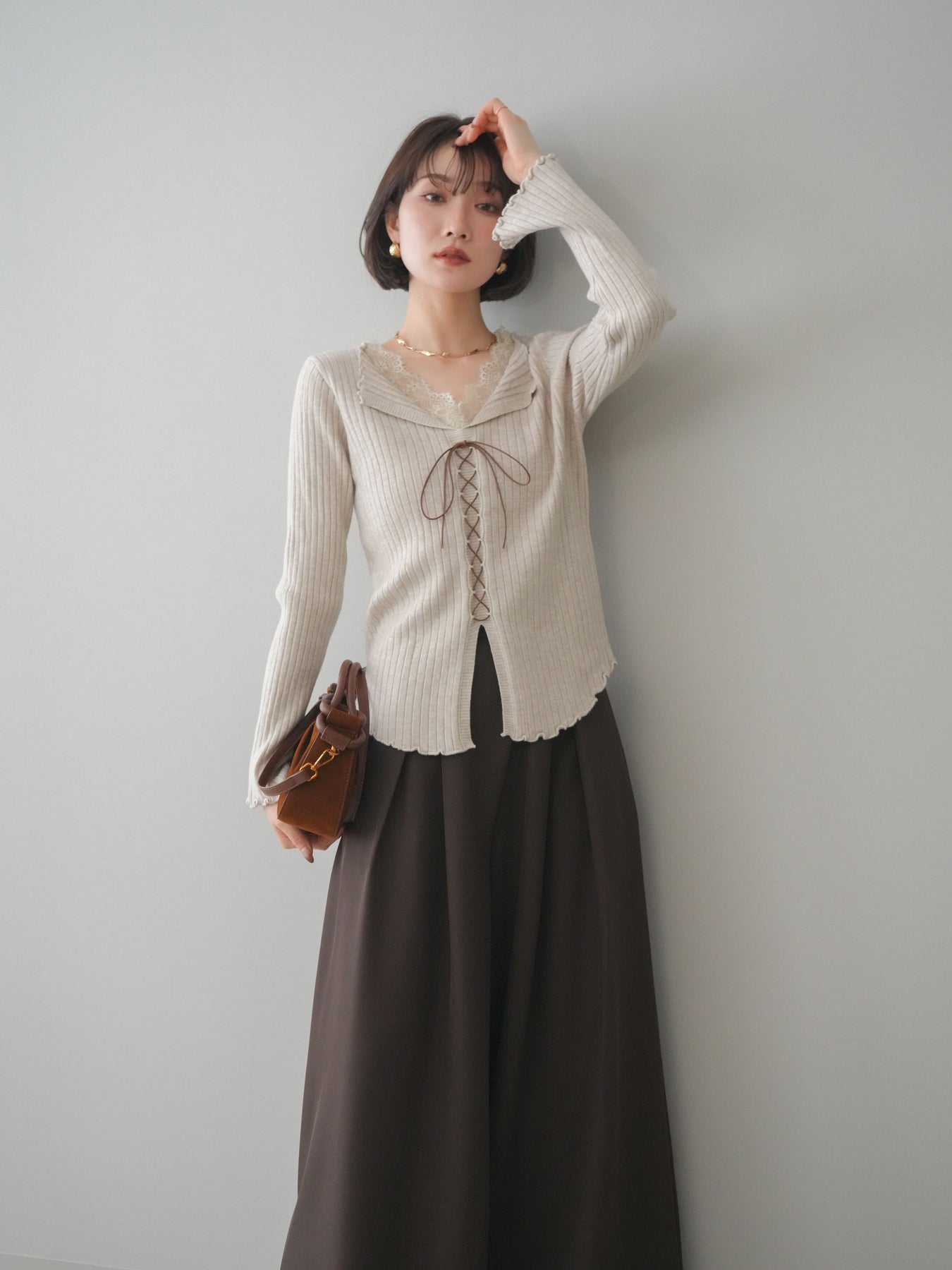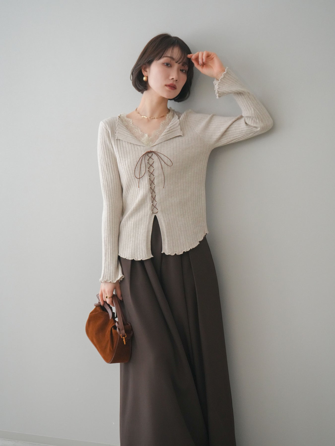 [予約]レースネックレースアップリブニットトップスに関連する商品を探す↓