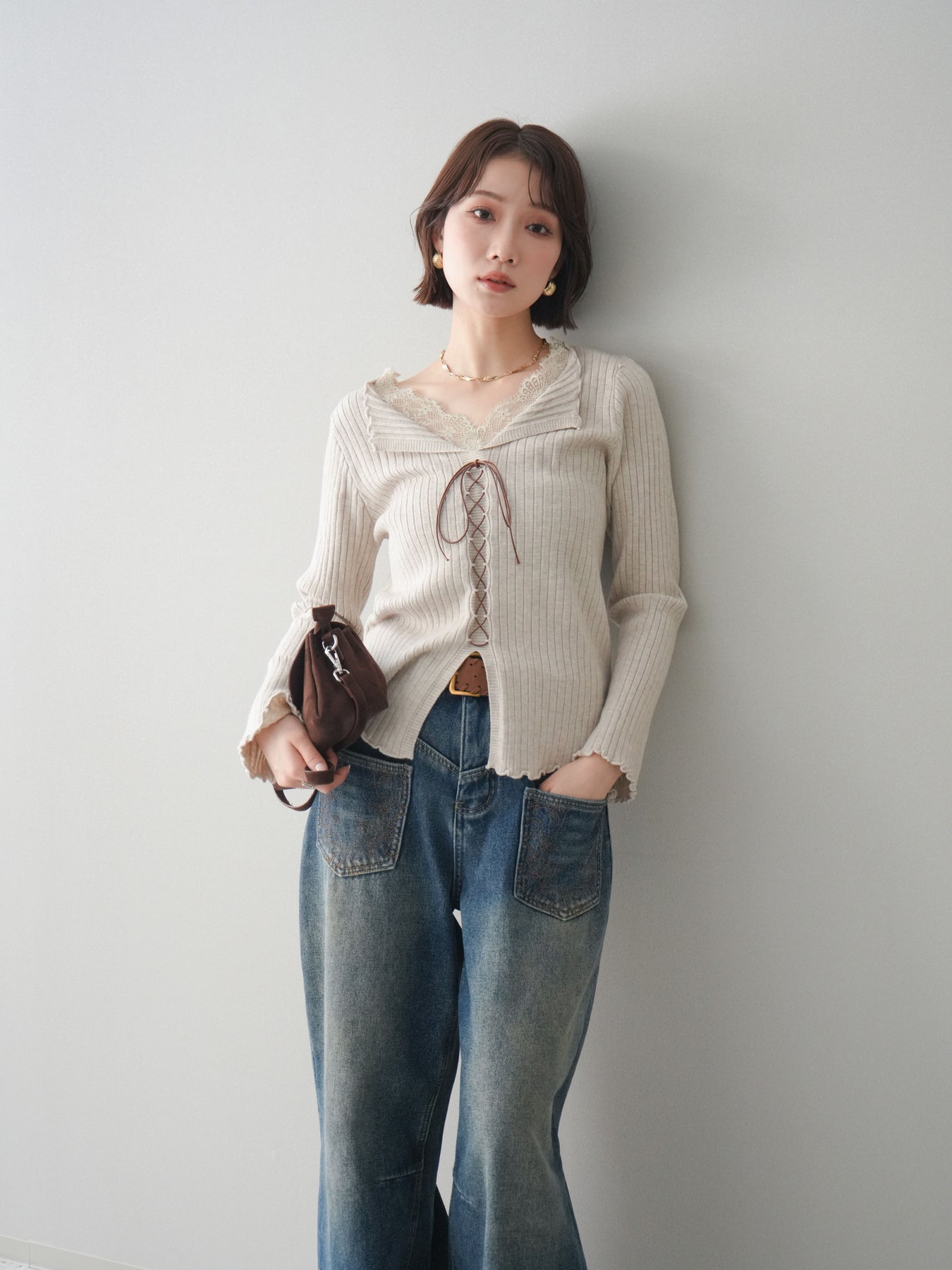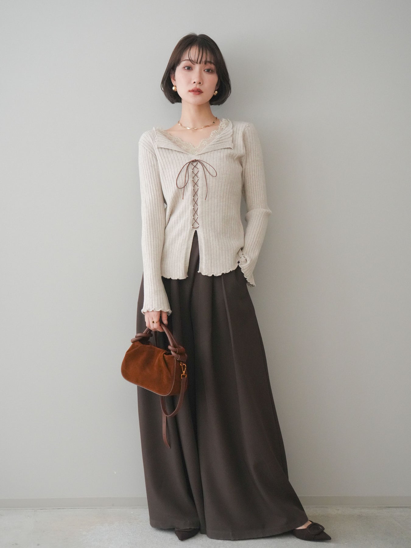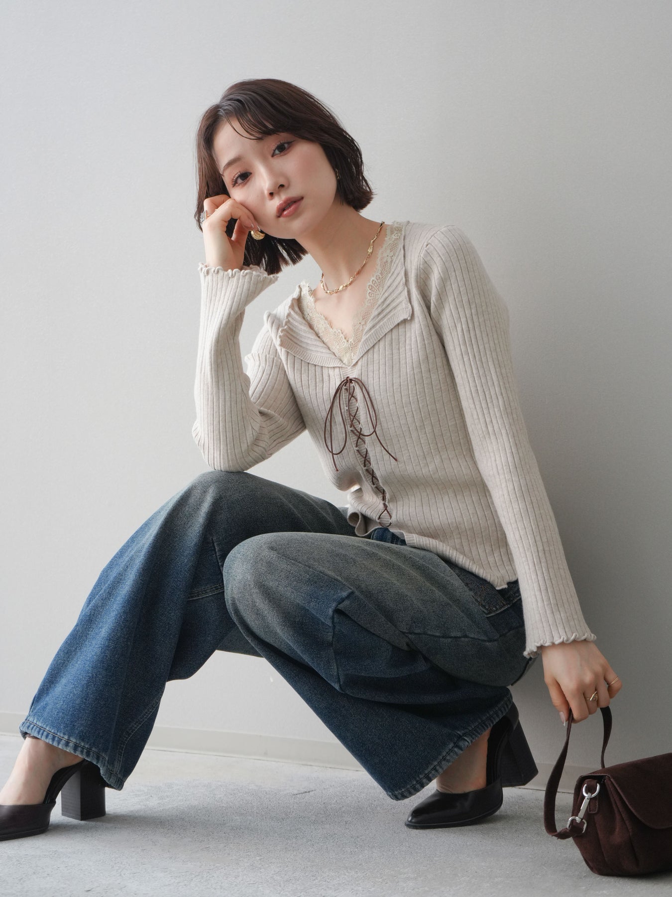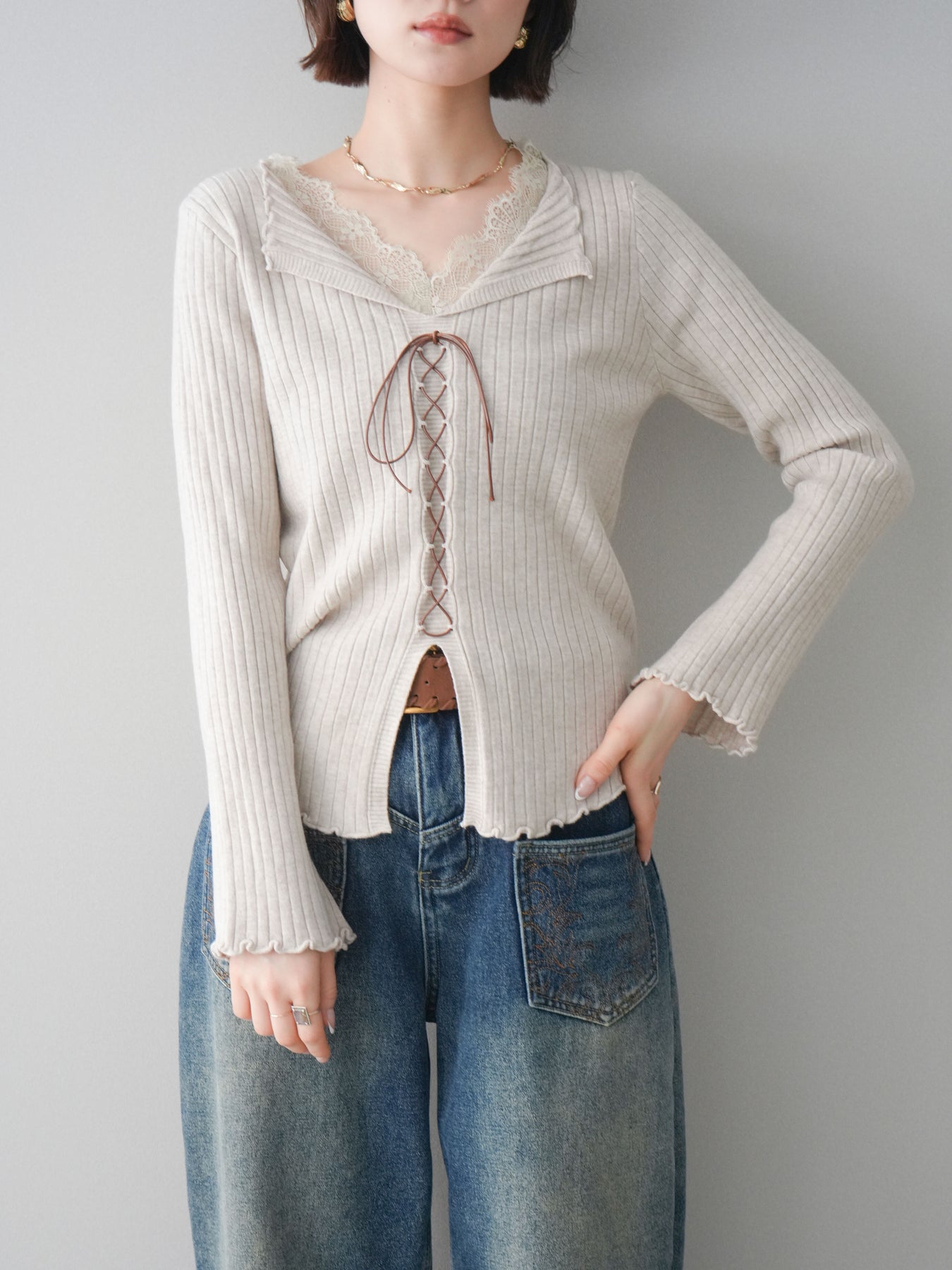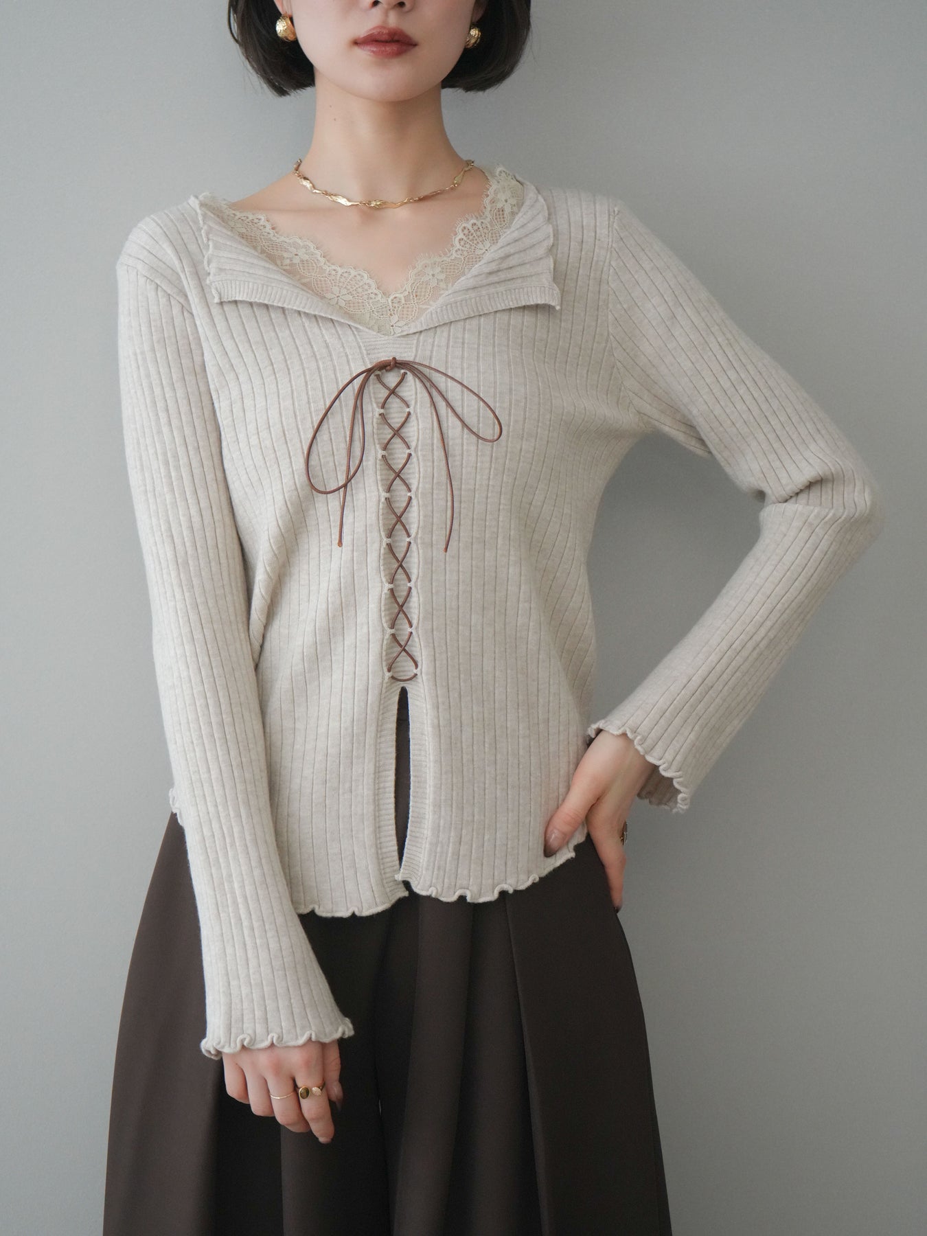 [予約]レースネックレースアップリブニットトップスに関連する商品を探す↓