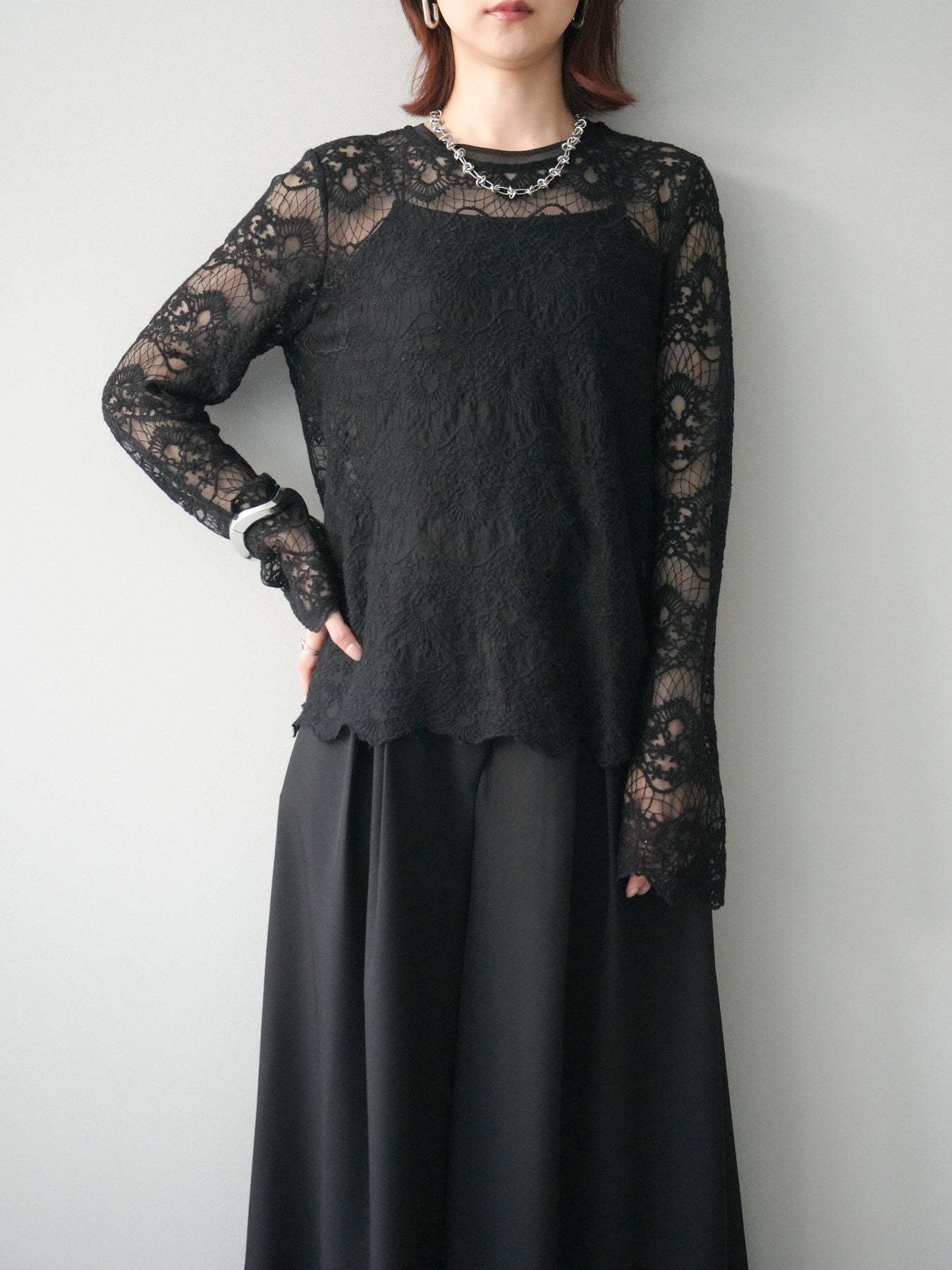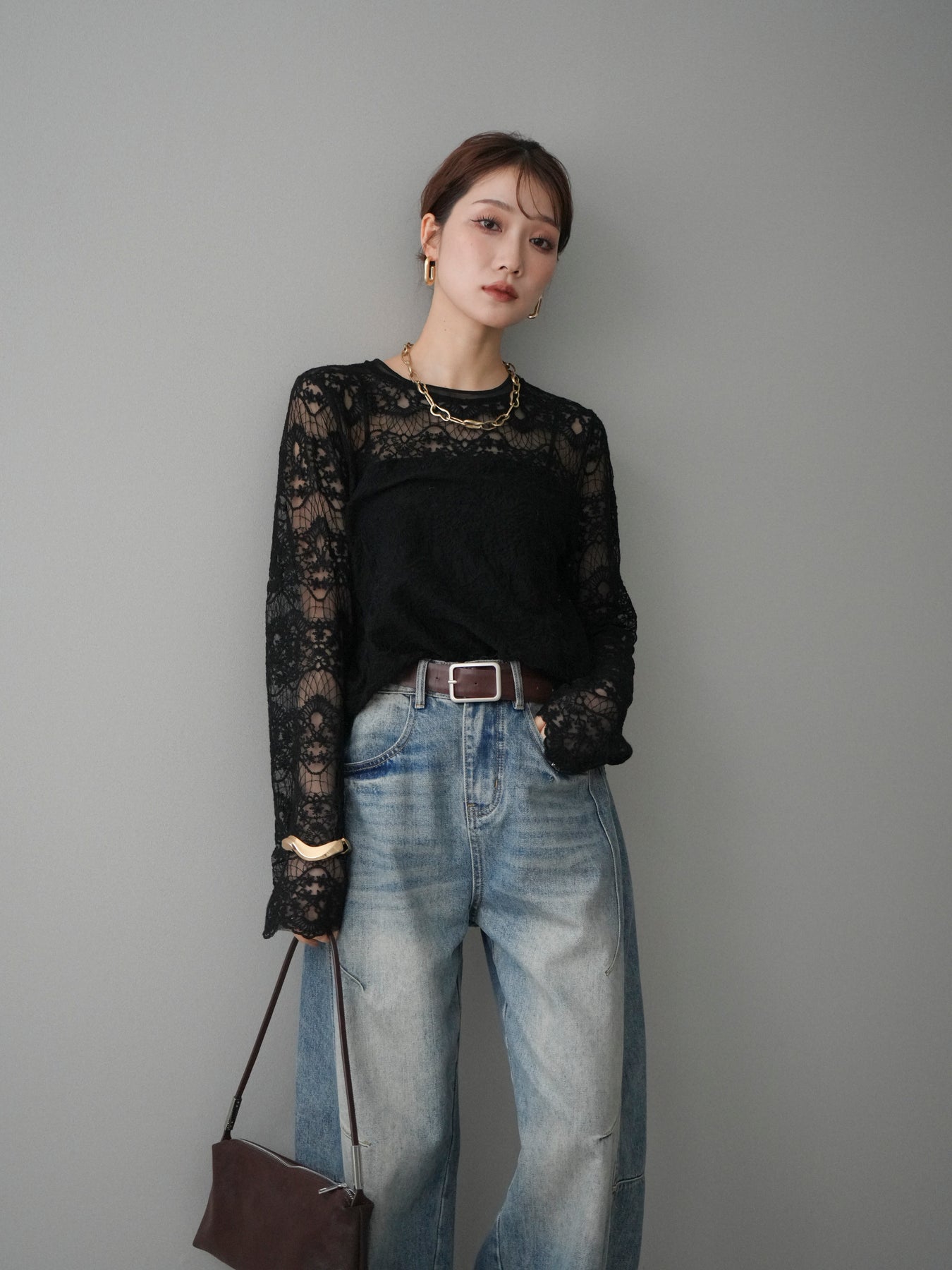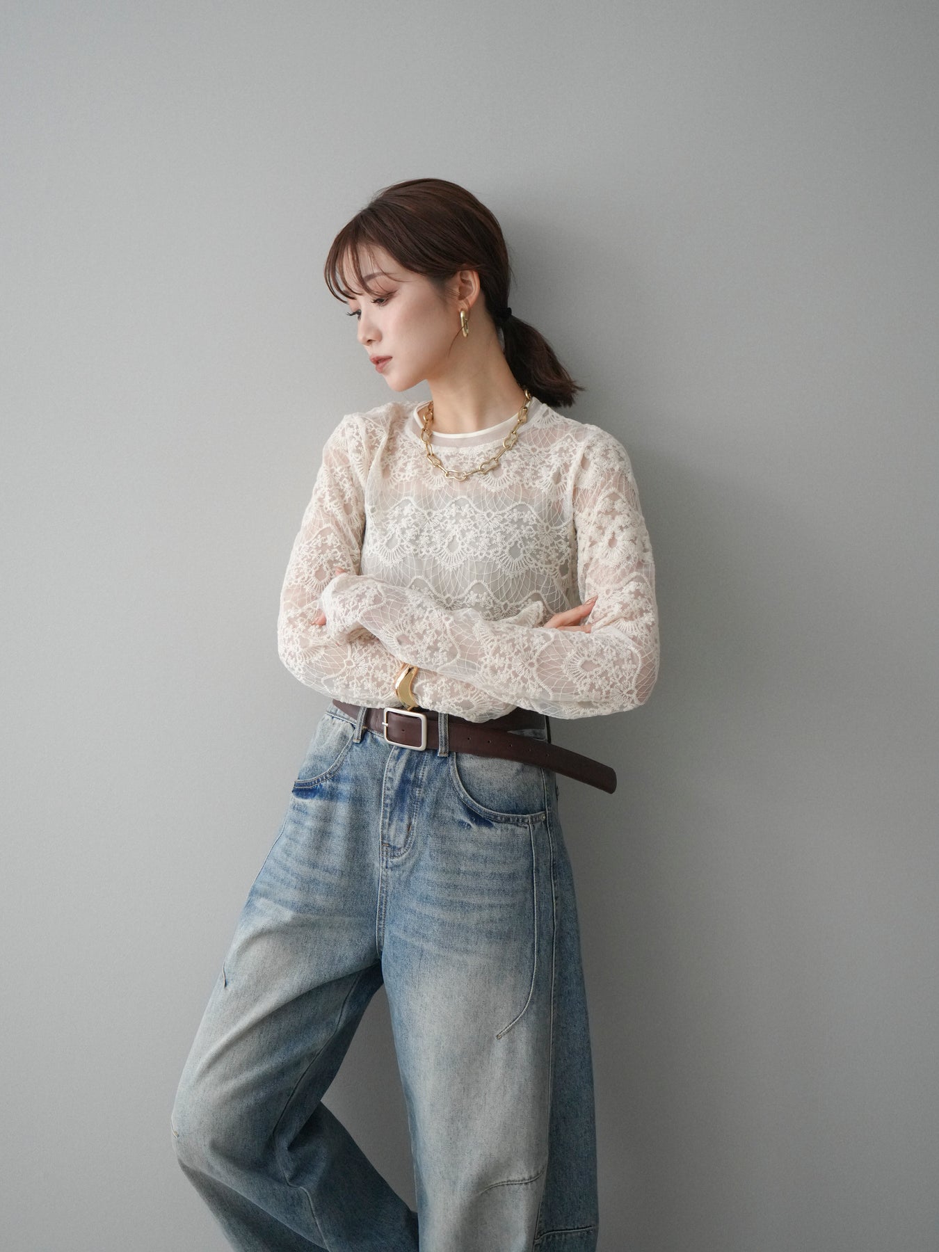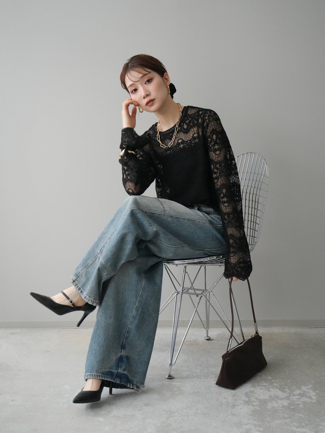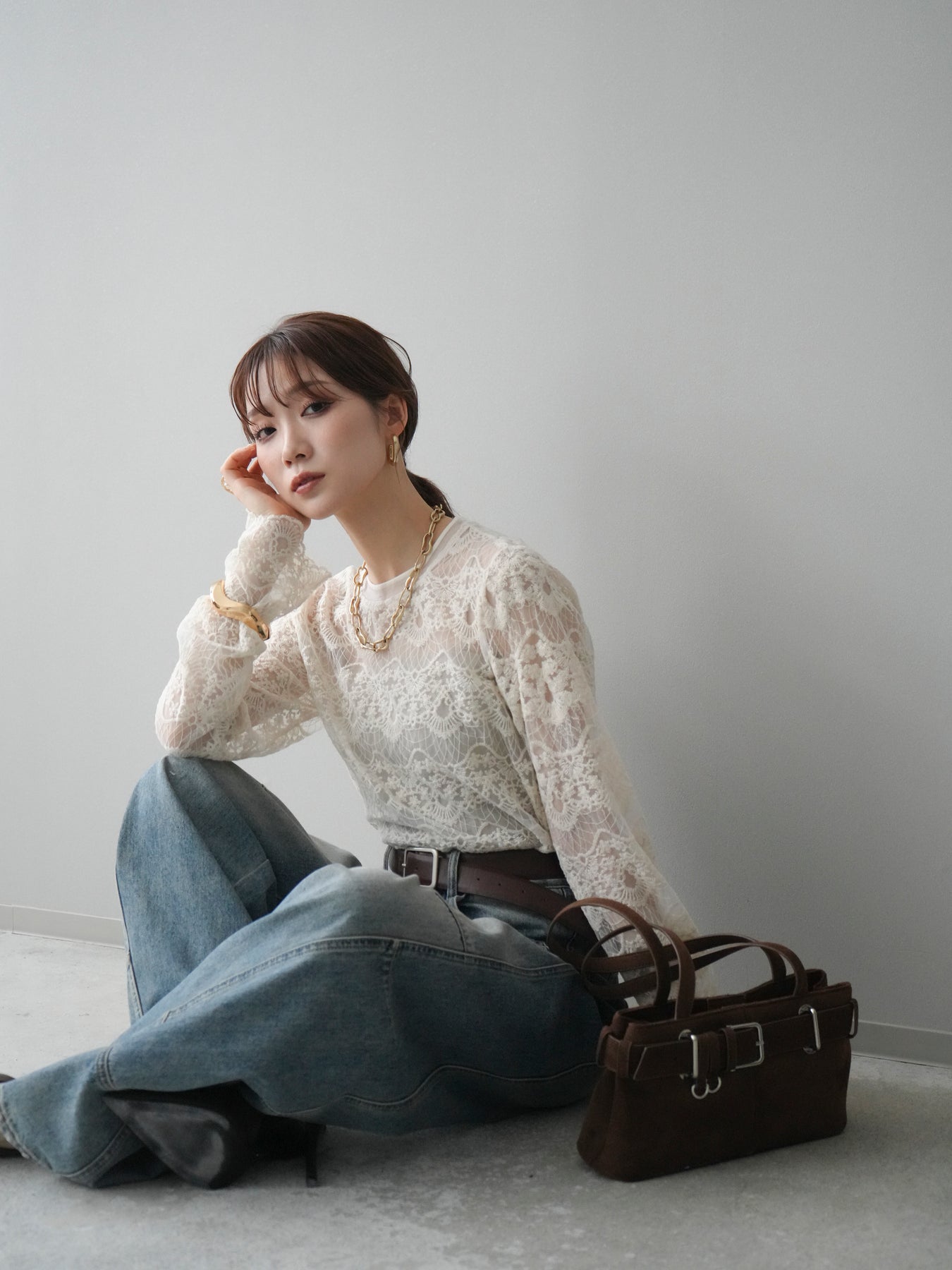 繊細なチュールレースが上品な印象を与えるレーストップス。 透け感のある素材が軽やかさと女性らしさを演出し、スタイリングに抜け感をプラスします。 華やかなレース柄が全体に施されており、シンプルなアイテムと合わせるだけで着映えする一着。 インナーとしてレイヤードしたり、1枚で主役として着用したりと、幅広い着こなしが楽しめます。 デイリーからきれいめスタイルまで活躍する、コーディネートの幅を広げてくれるアイテムです。