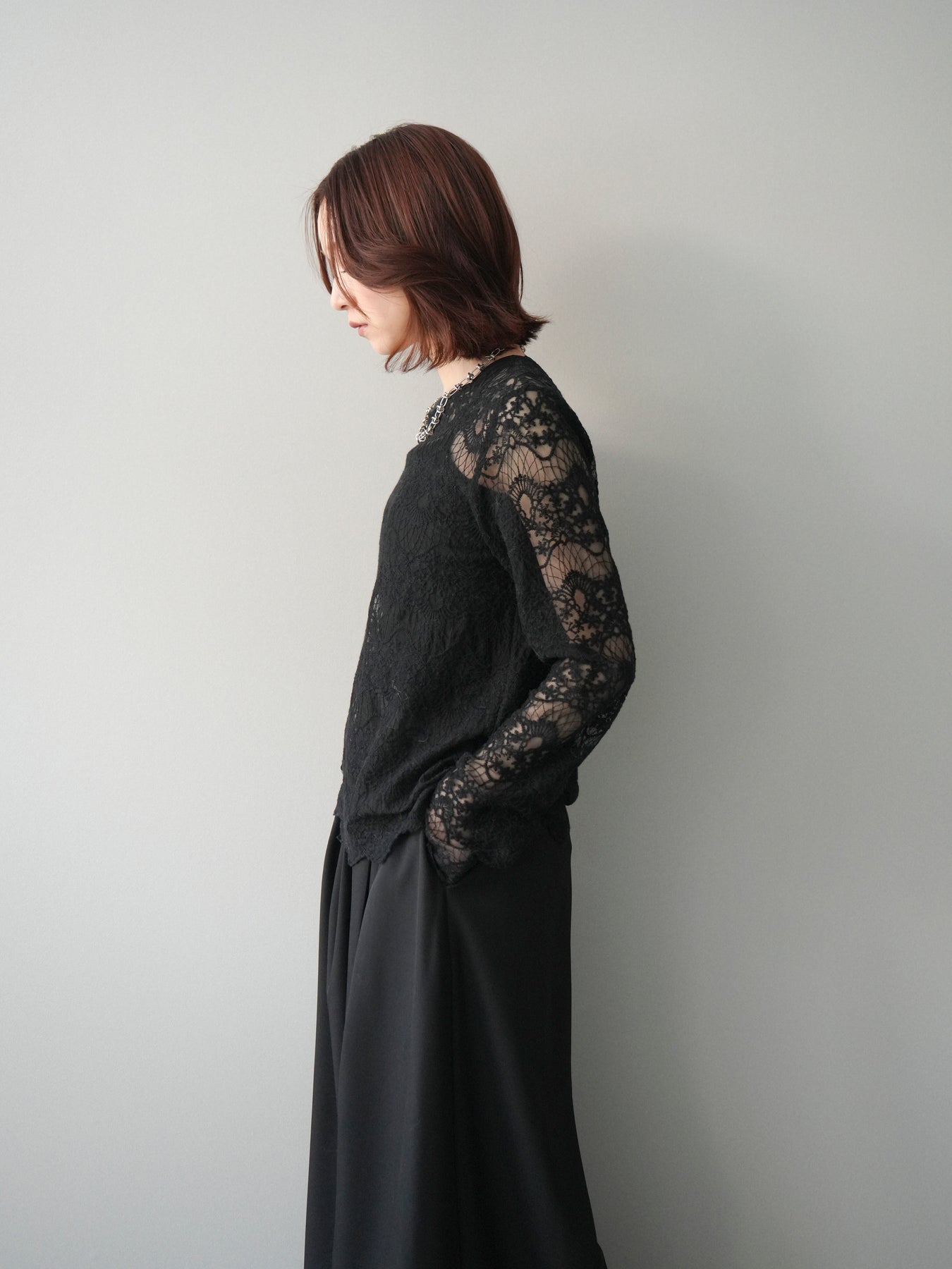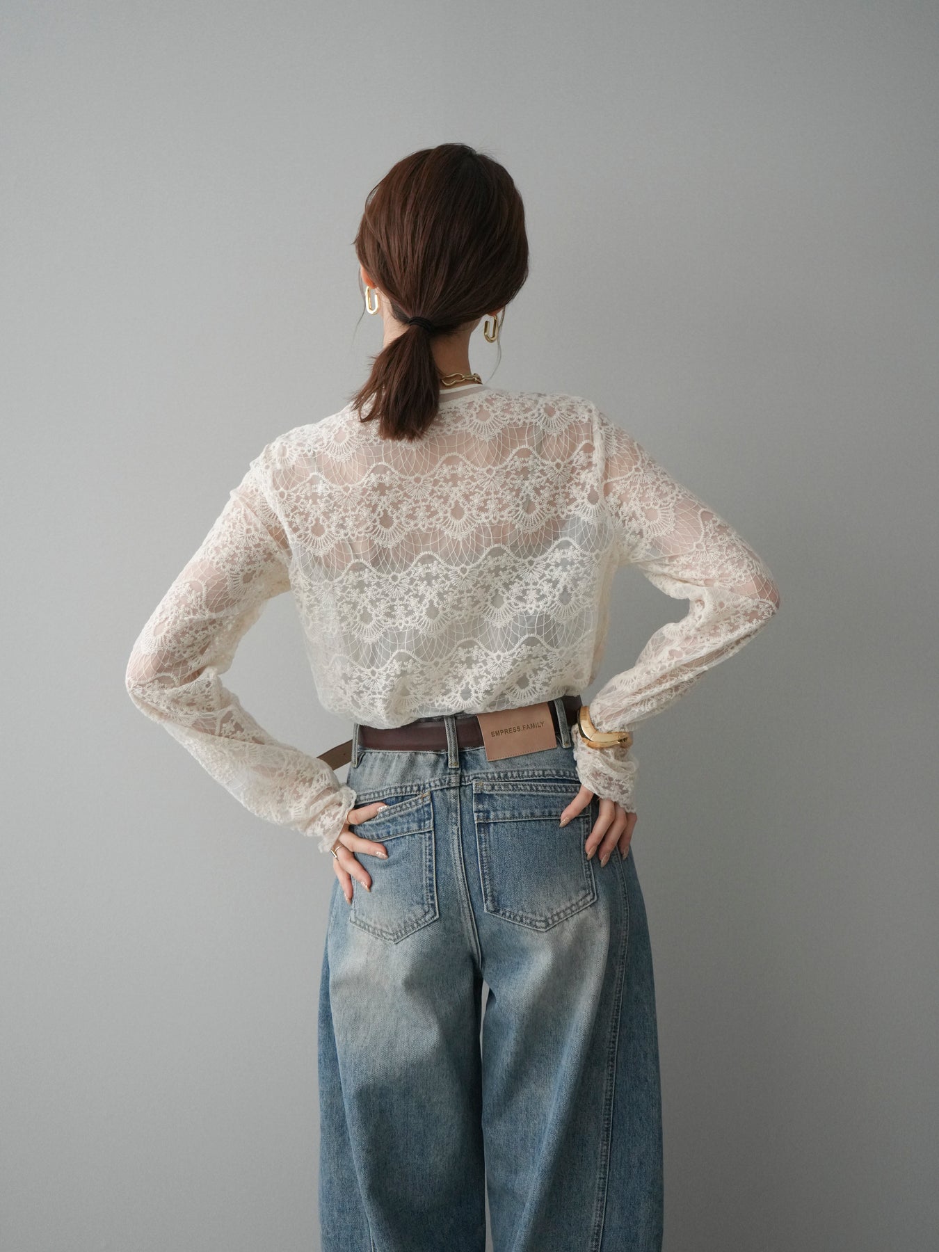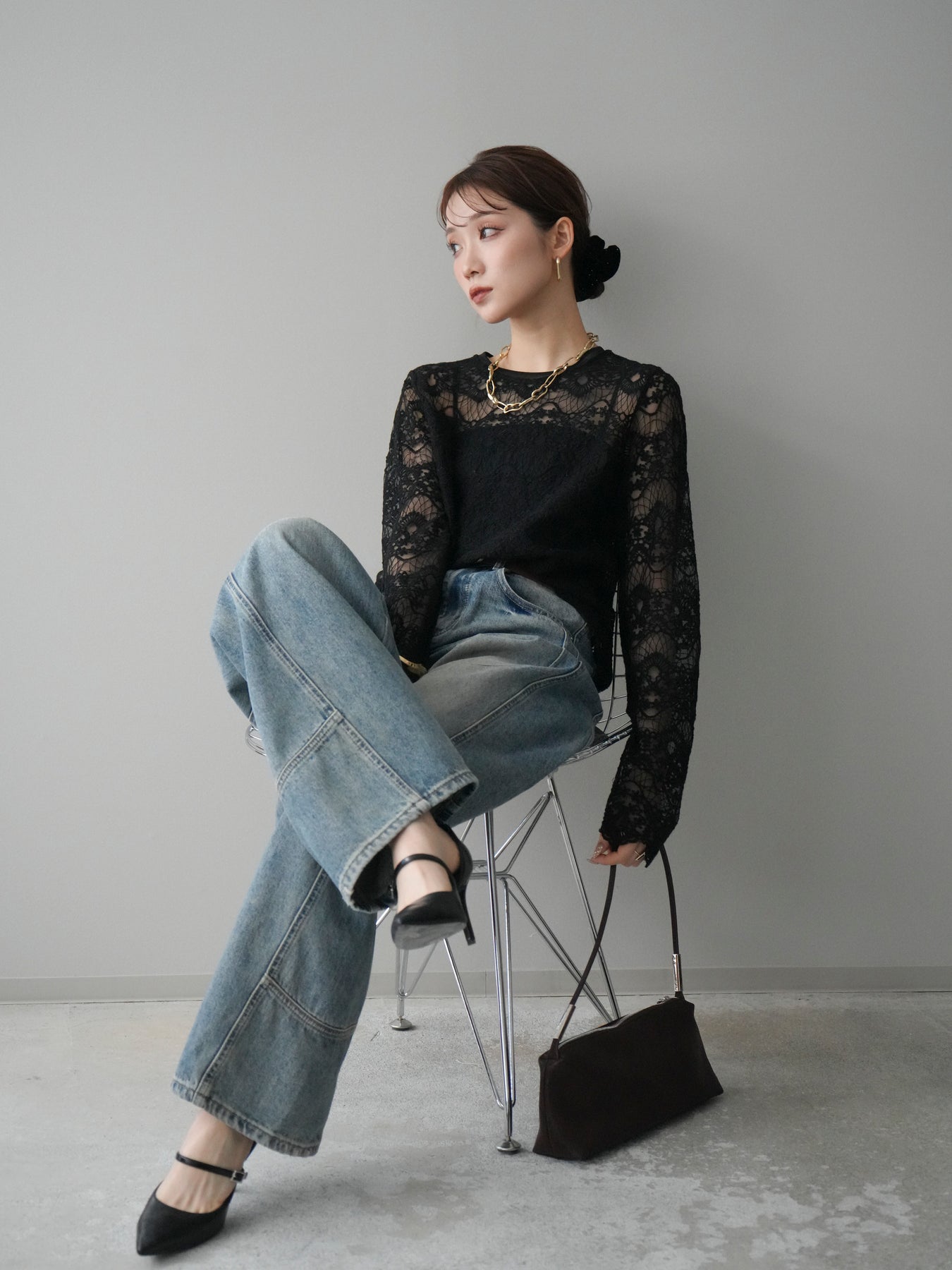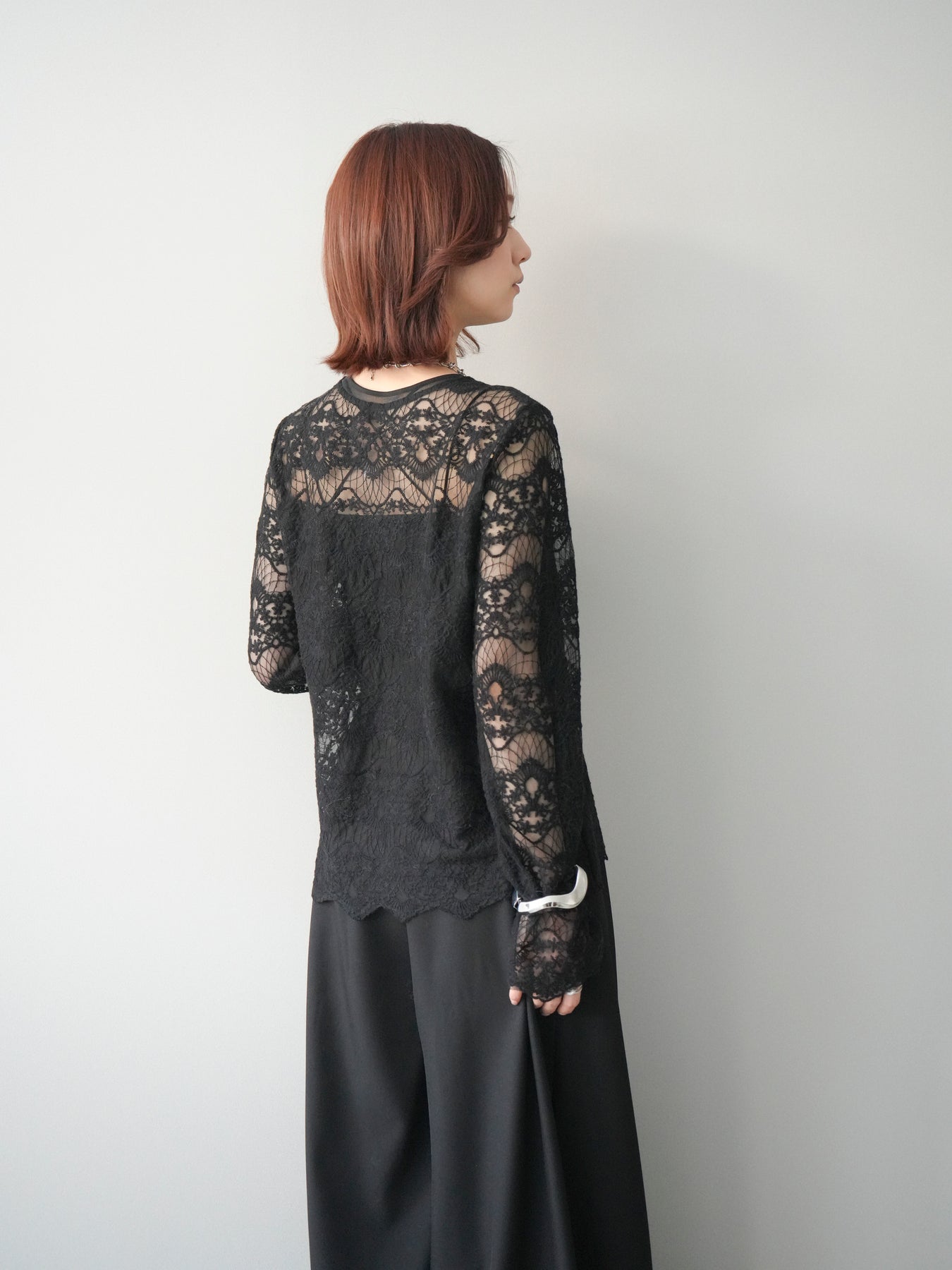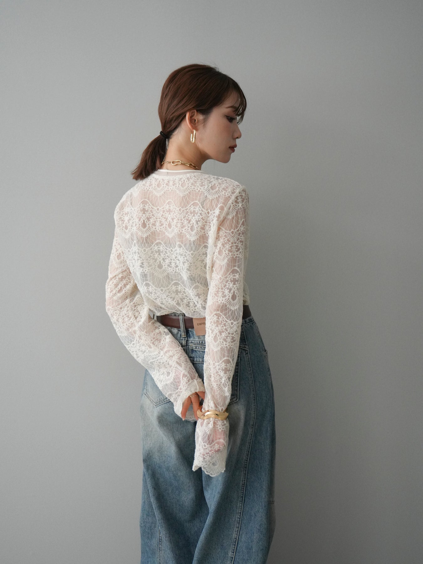 繊細なチュールレースが上品な印象を与えるレーストップス。 透け感のある素材が軽やかさと女性らしさを演出し、スタイリングに抜け感をプラスします。 華やかなレース柄が全体に施されており、シンプルなアイテムと合わせるだけで着映えする一着。 インナーとしてレイヤードしたり、1枚で主役として着用したりと、幅広い着こなしが楽しめます。 デイリーからきれいめスタイルまで活躍する、コーディネートの幅を広げてくれるアイテムです。