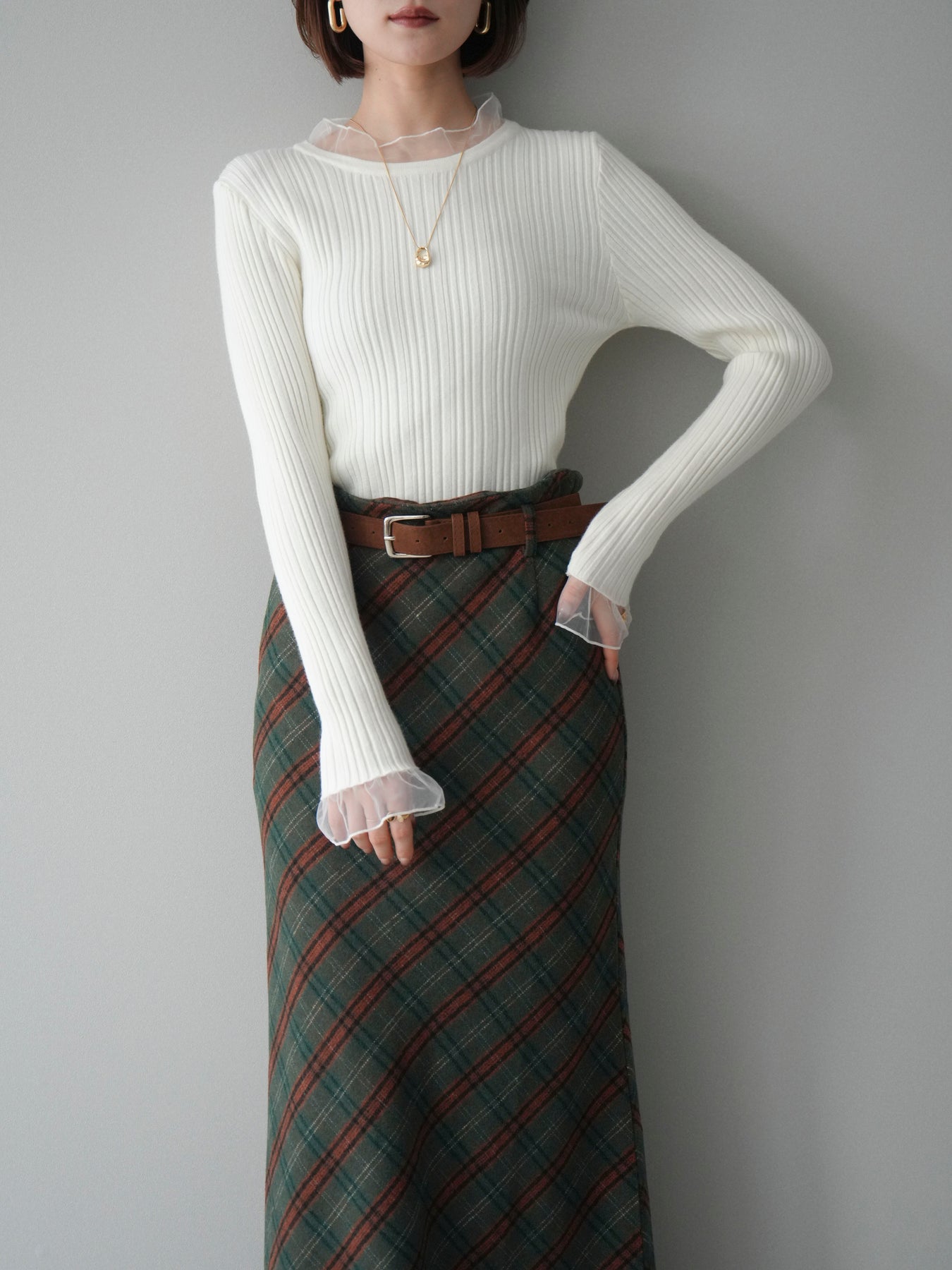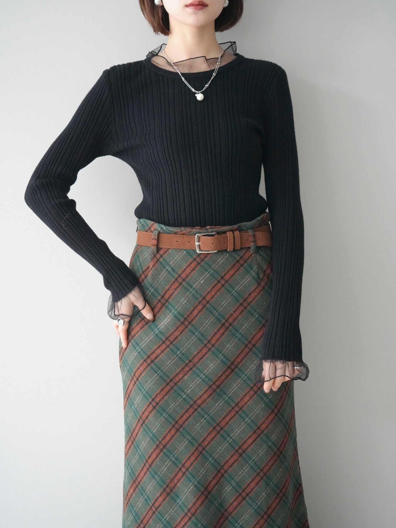 ◆ [予約]チュールドッキングリブニットトップス