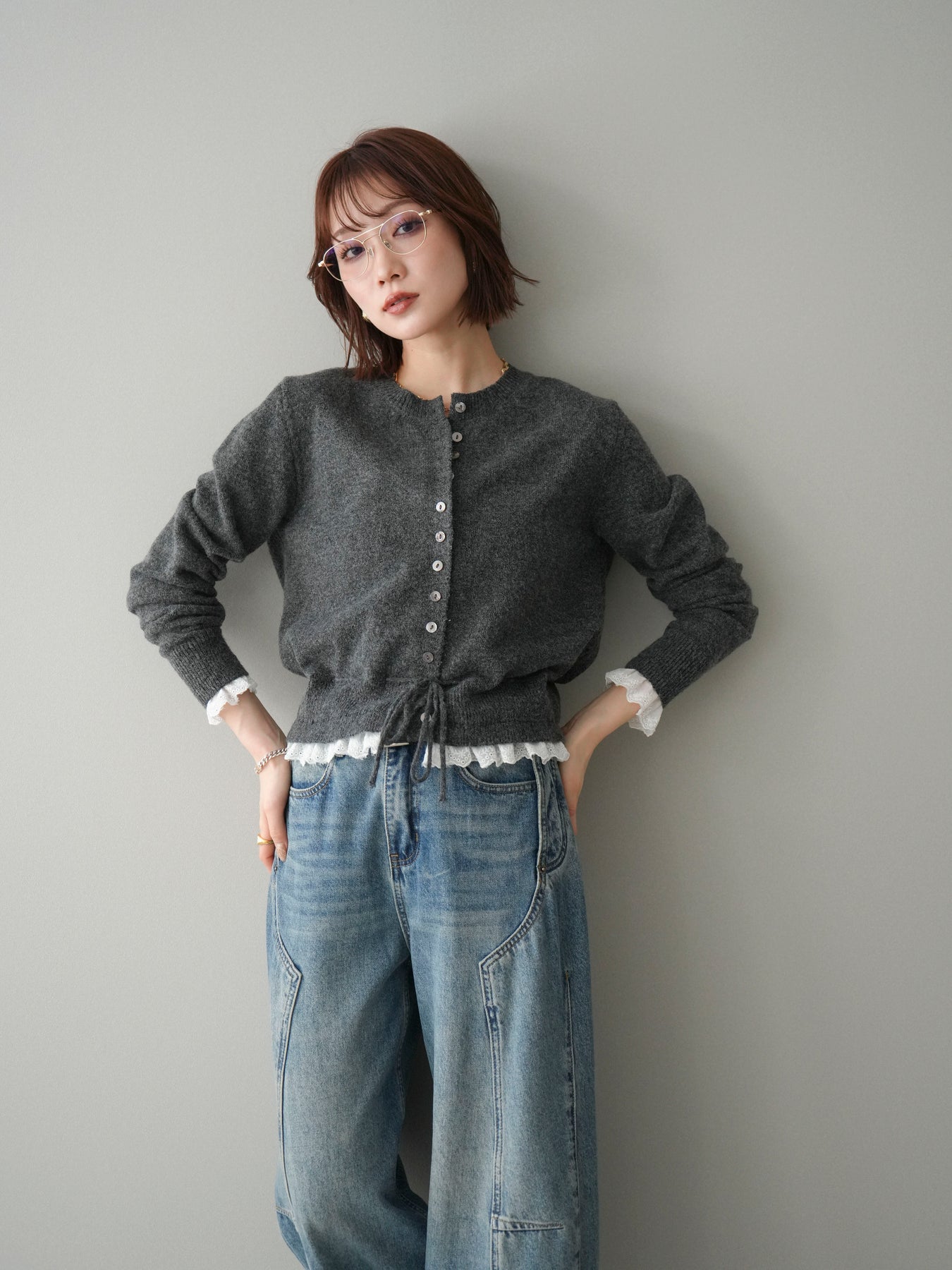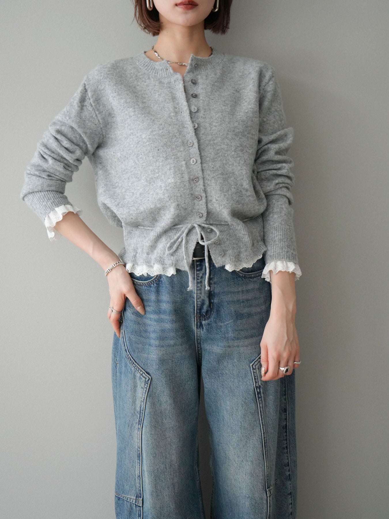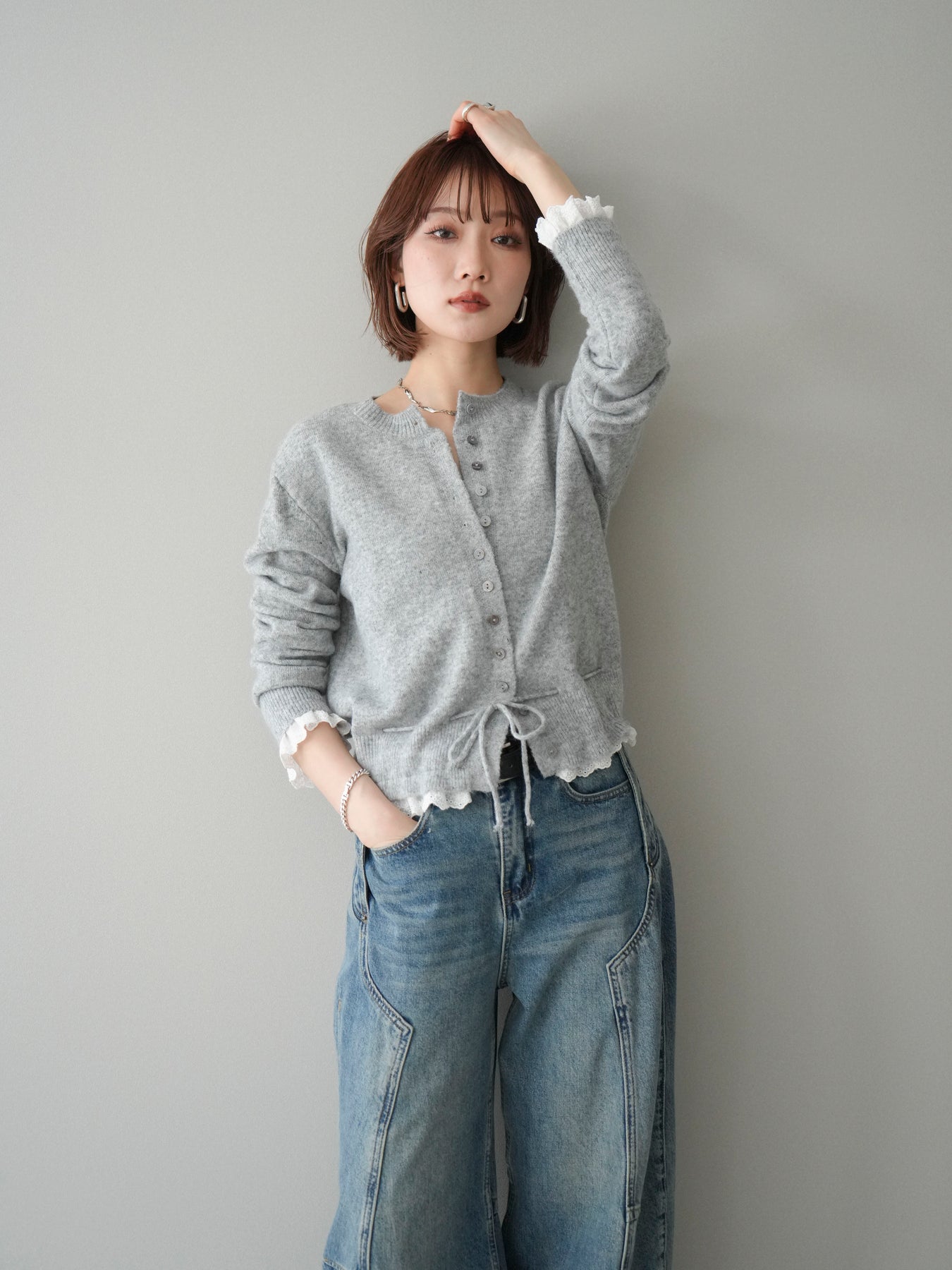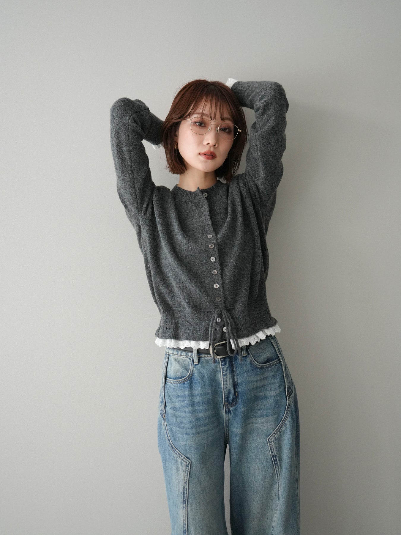 ◆ [予約]スカラップレース切り替ニットカーディガン