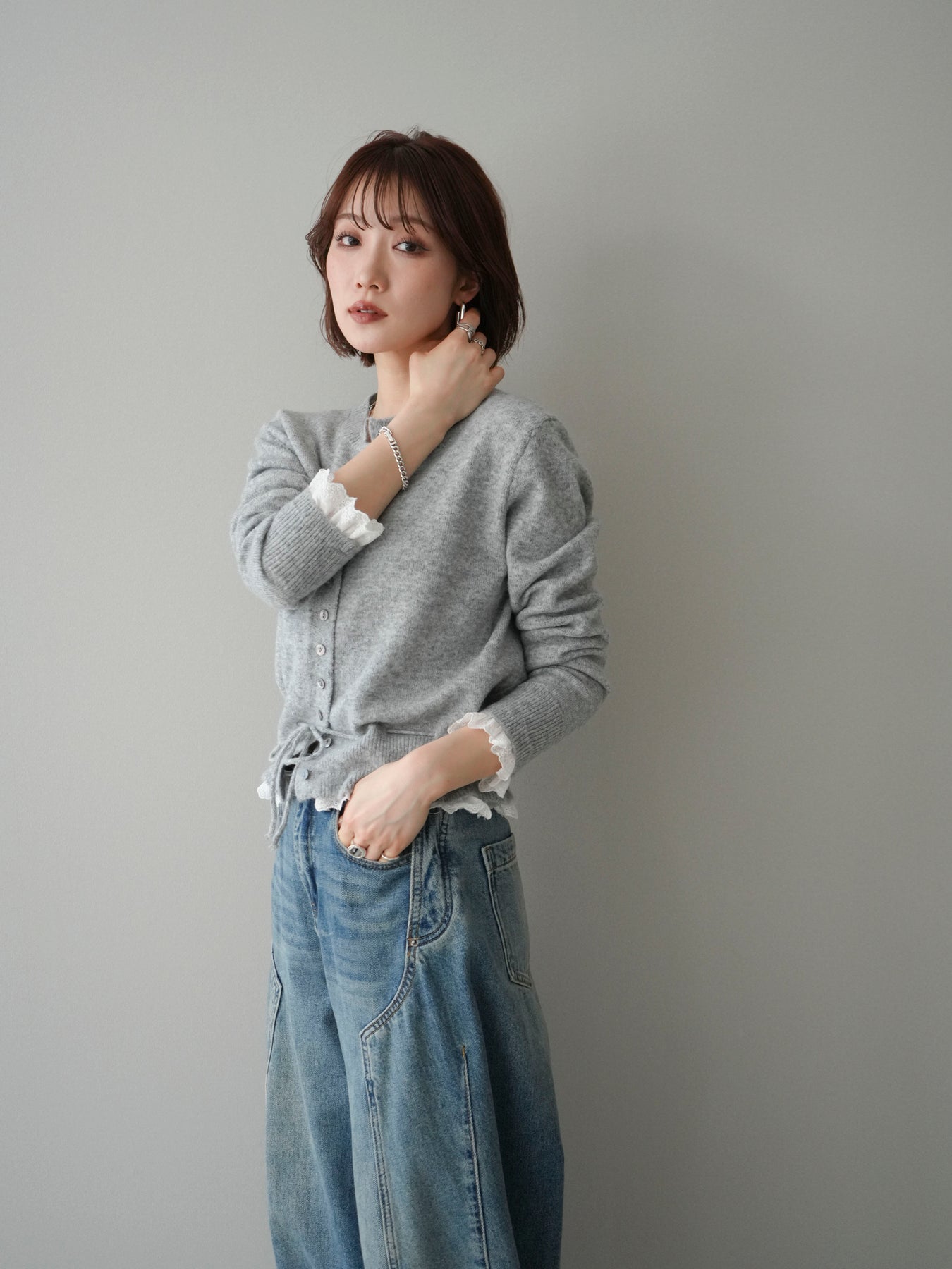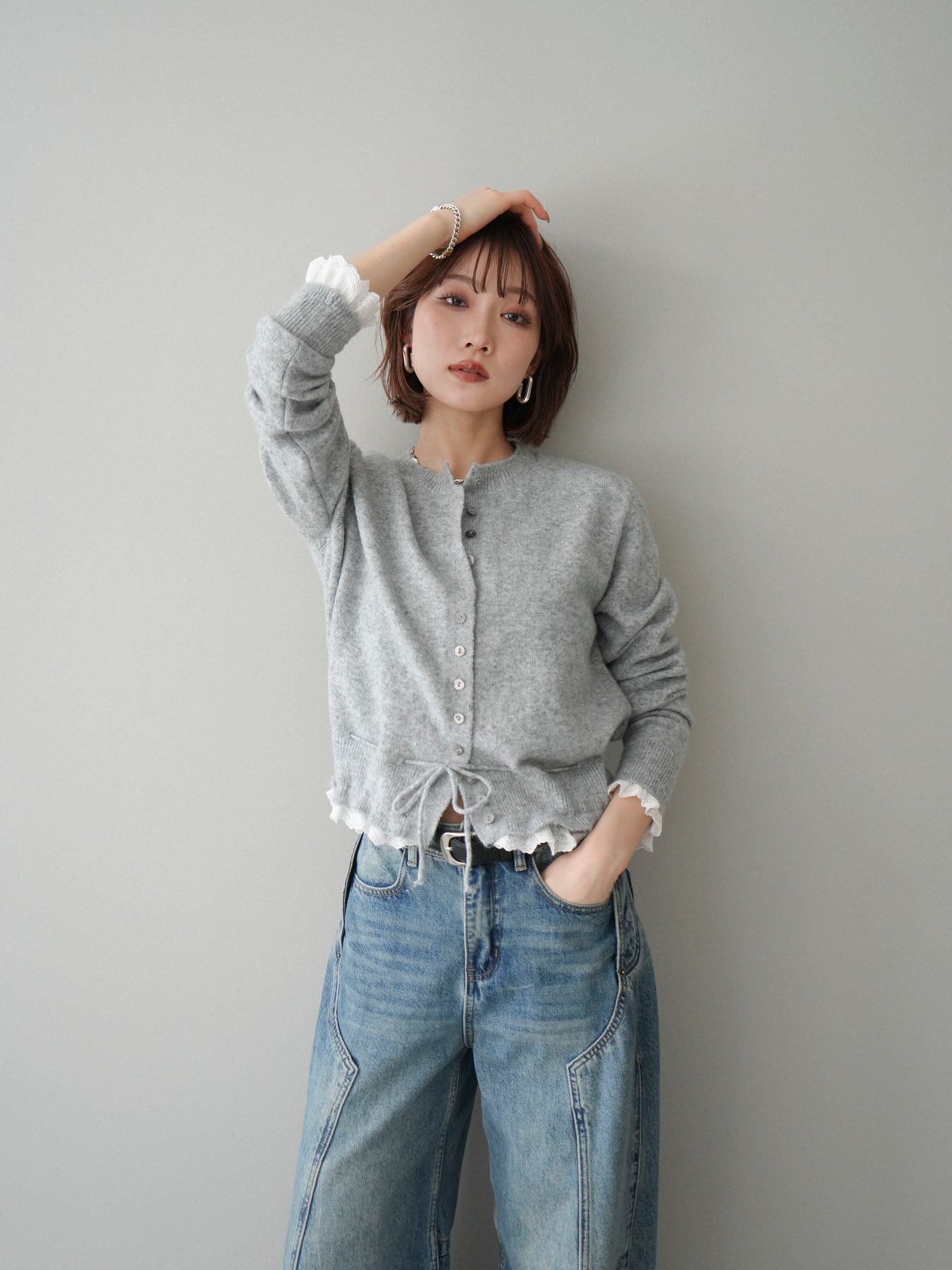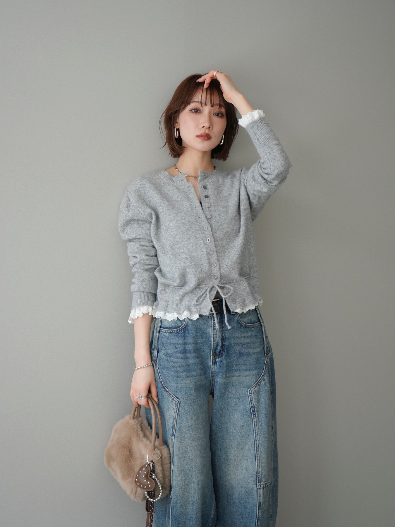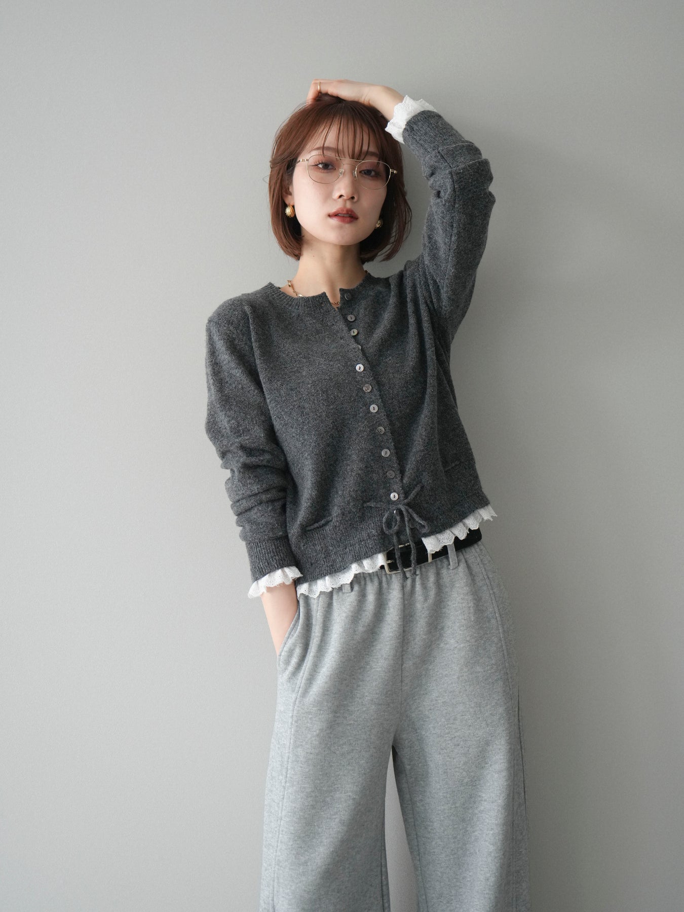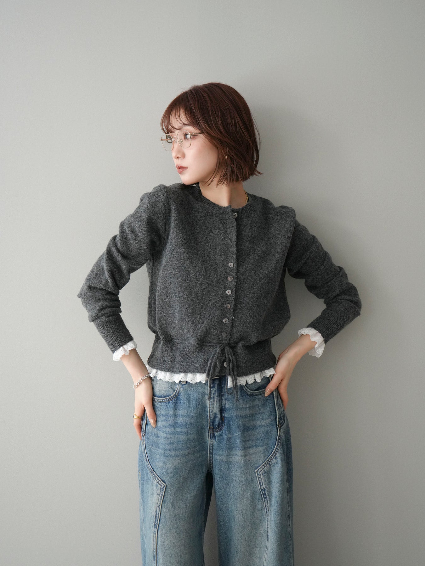 ◆ [予約]スカラップレース切り替ニットカーディガン