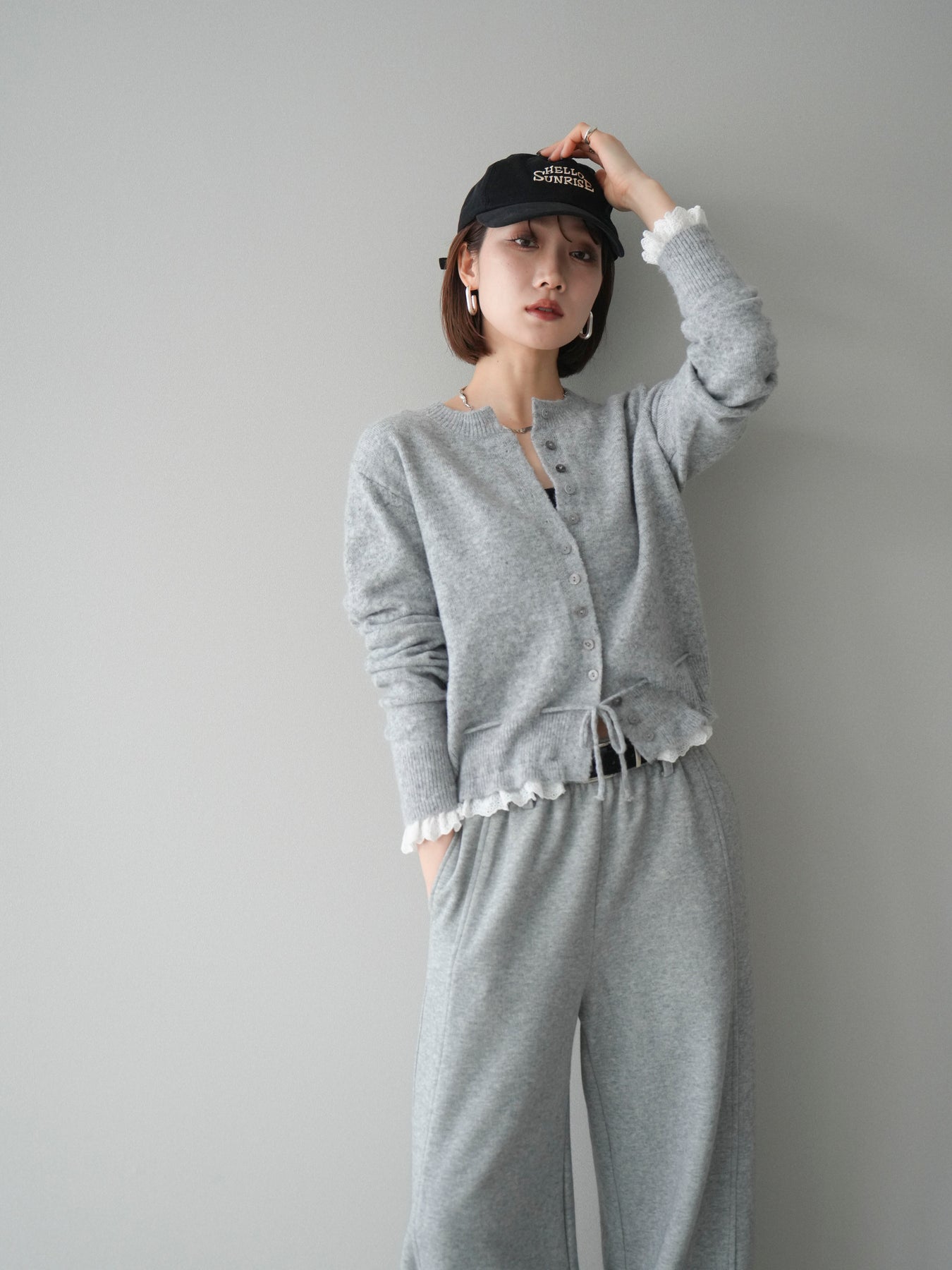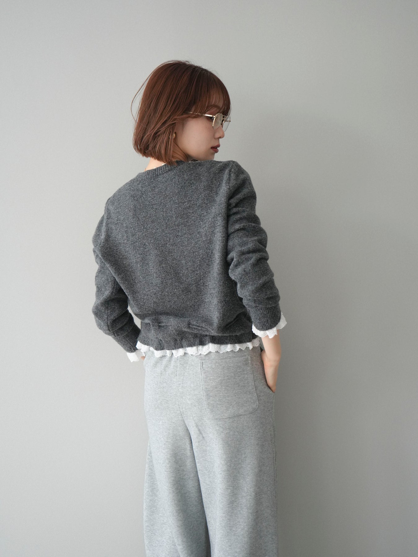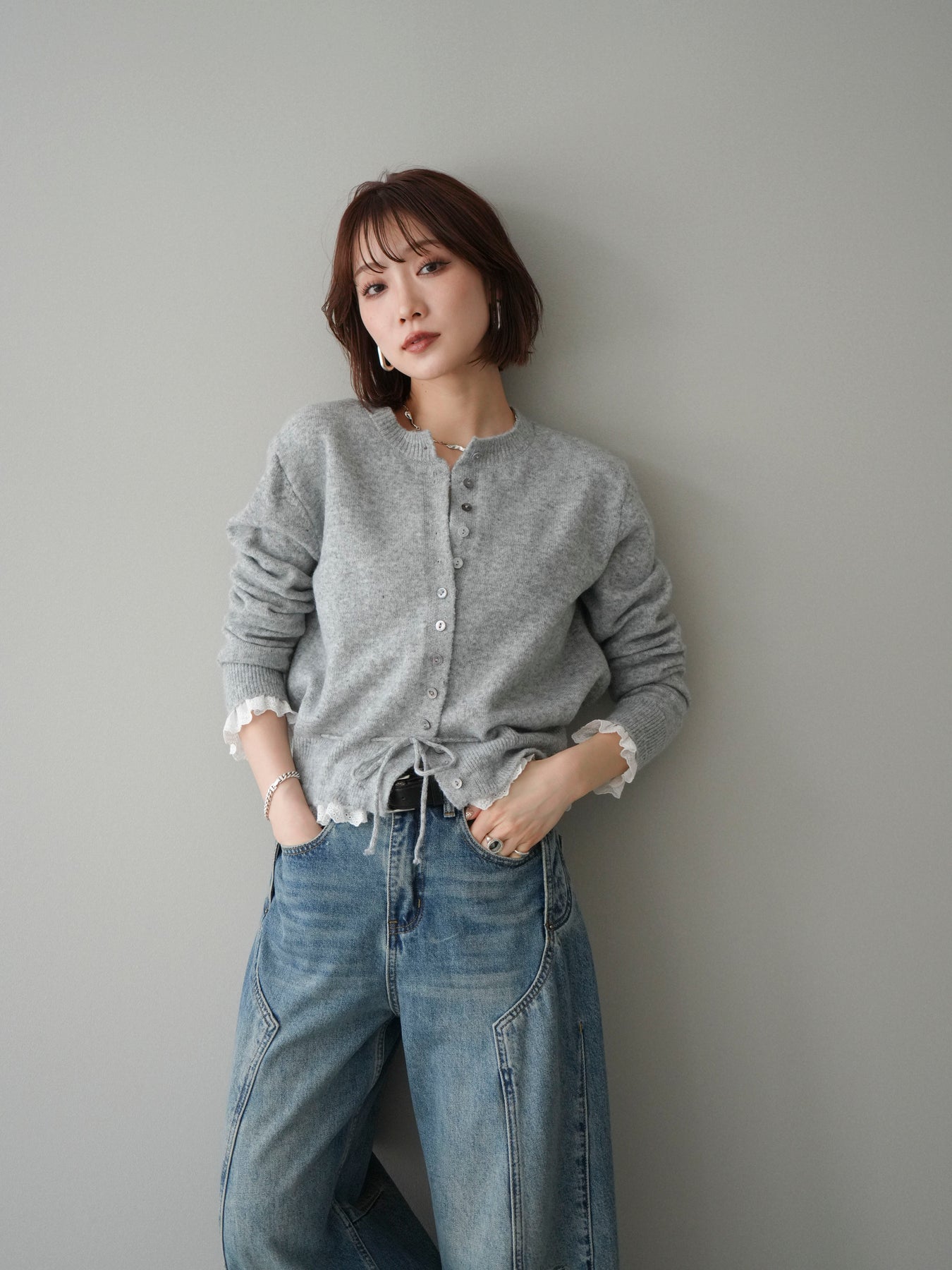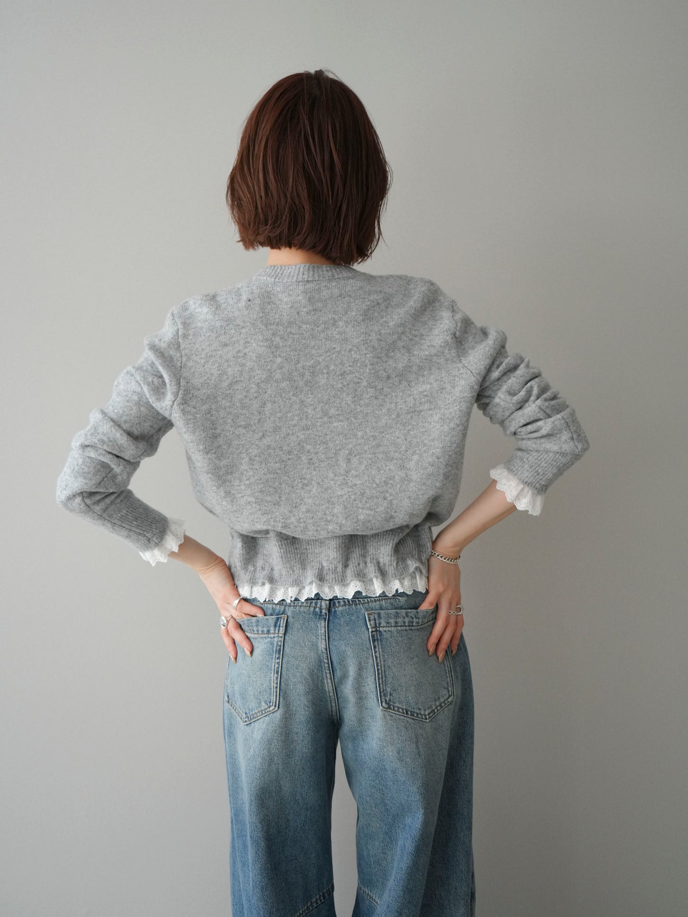 ◆ [予約]スカラップレース切り替ニットカーディガン