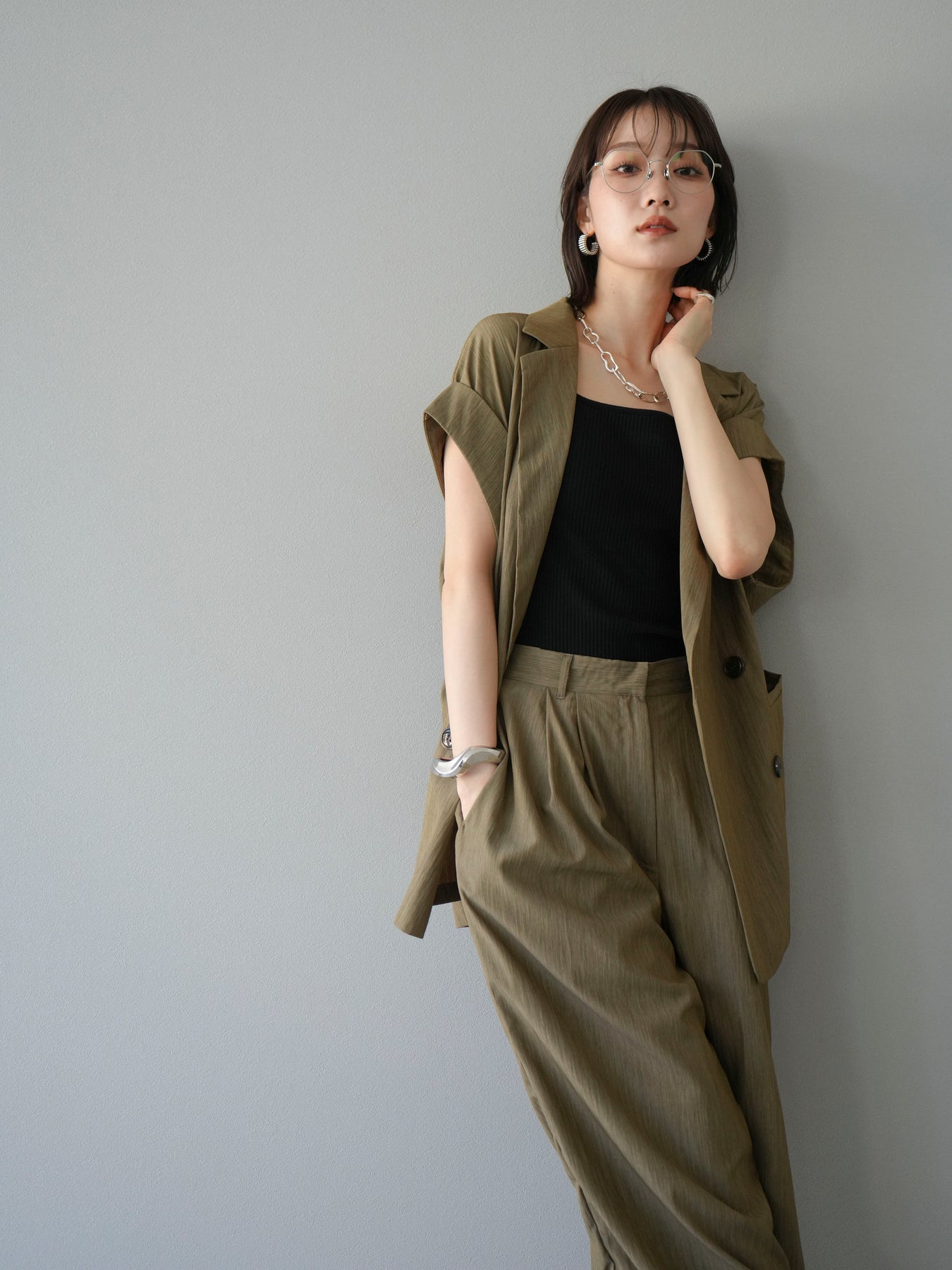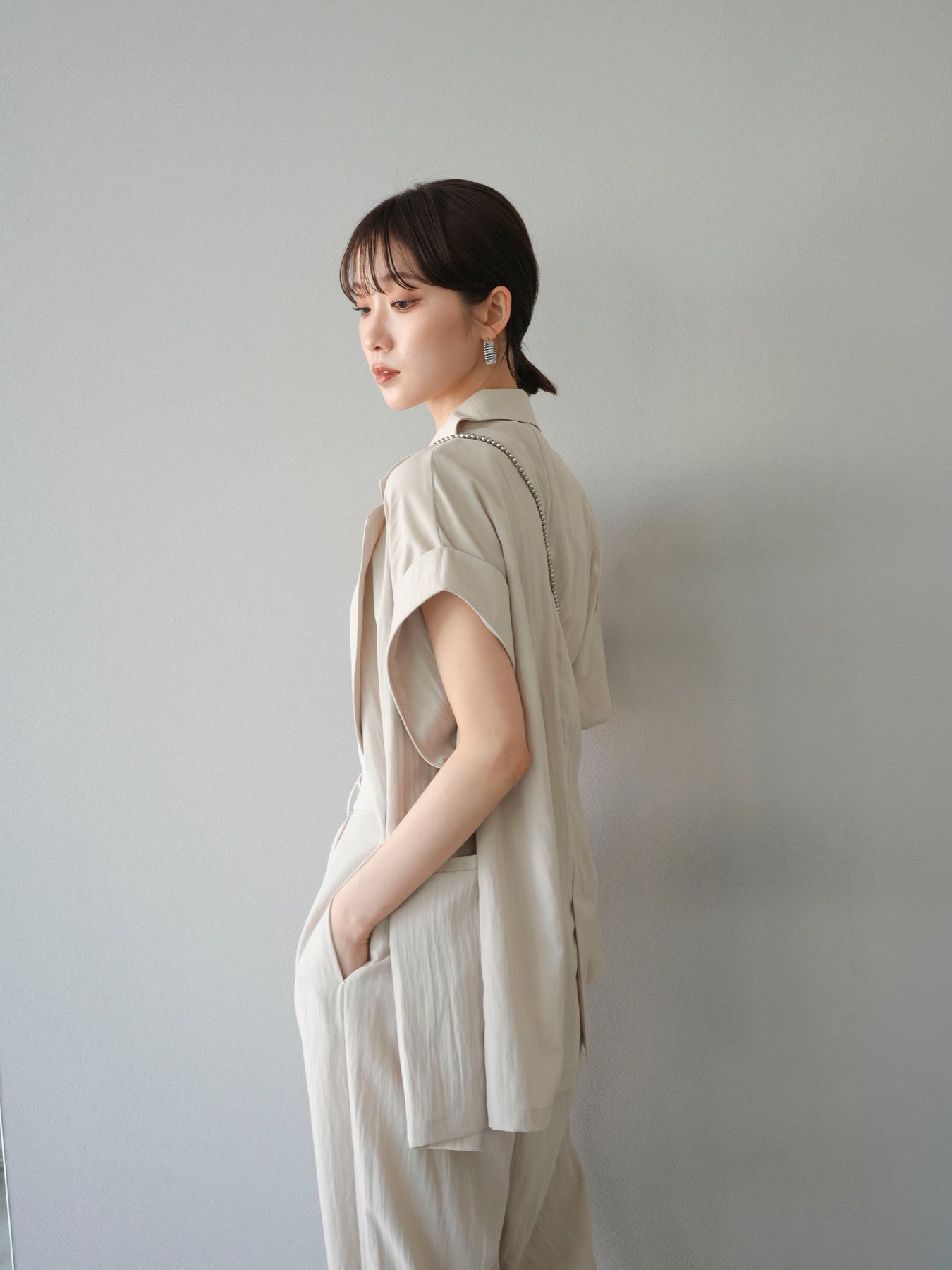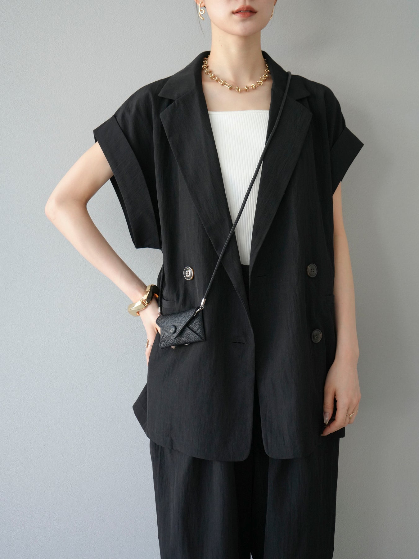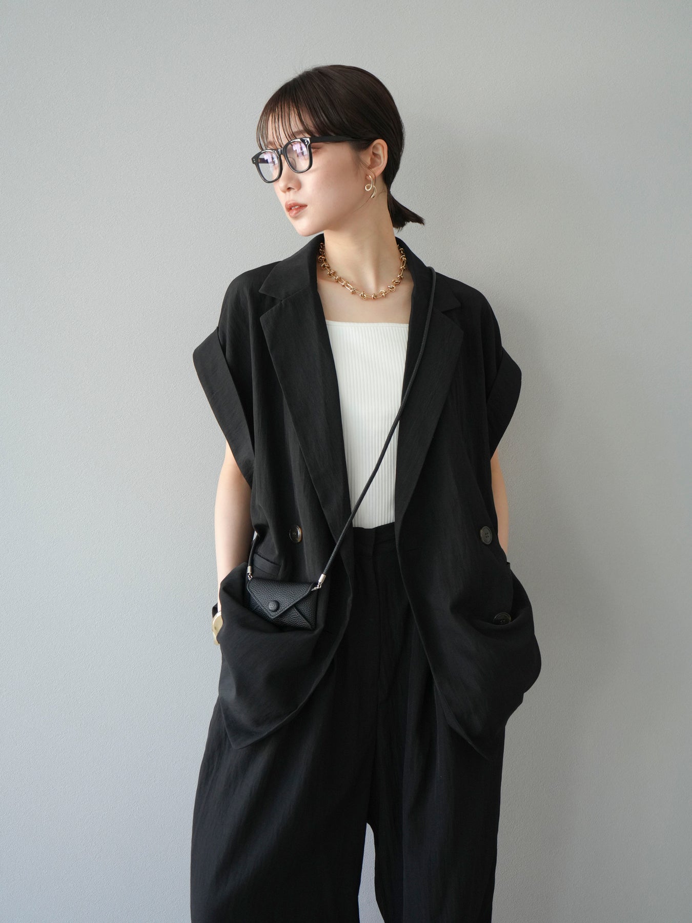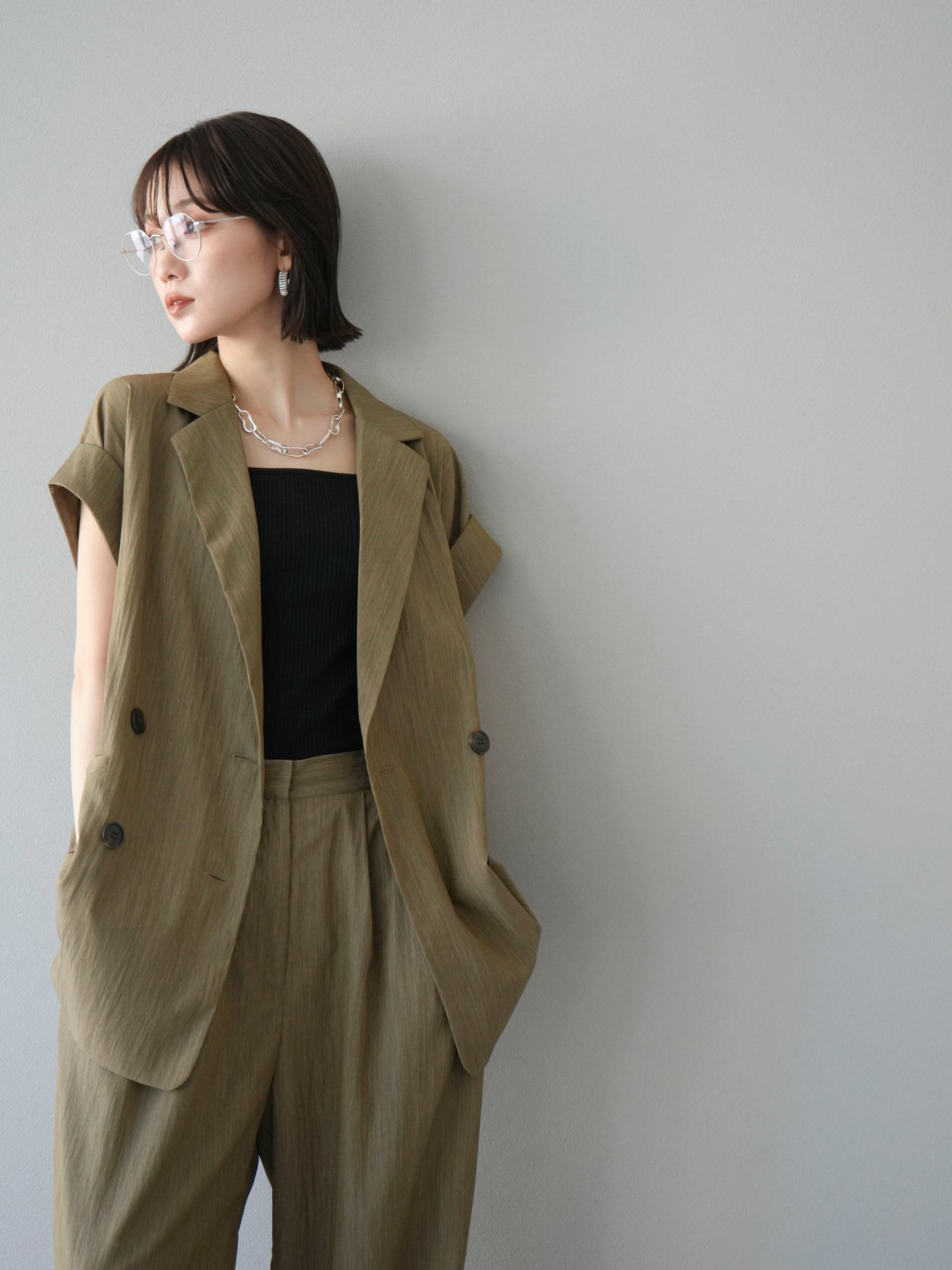 這款雙扣無袖背心採用天然亞麻材質製成。法式長袖恰到好處地垂落於肩部,寬鬆的輪廓營造出輕鬆幹練的氛圍。長款設計包覆臀部,垂直的線條營造出隱藏身材、提升氣質的效果。搭配T卹或無袖上衣,即可打造幹練的疊穿造型。也推薦作為套裝穿著。 *除下裝和吊帶背心(內衣)外,所有商品均不包含內衣。