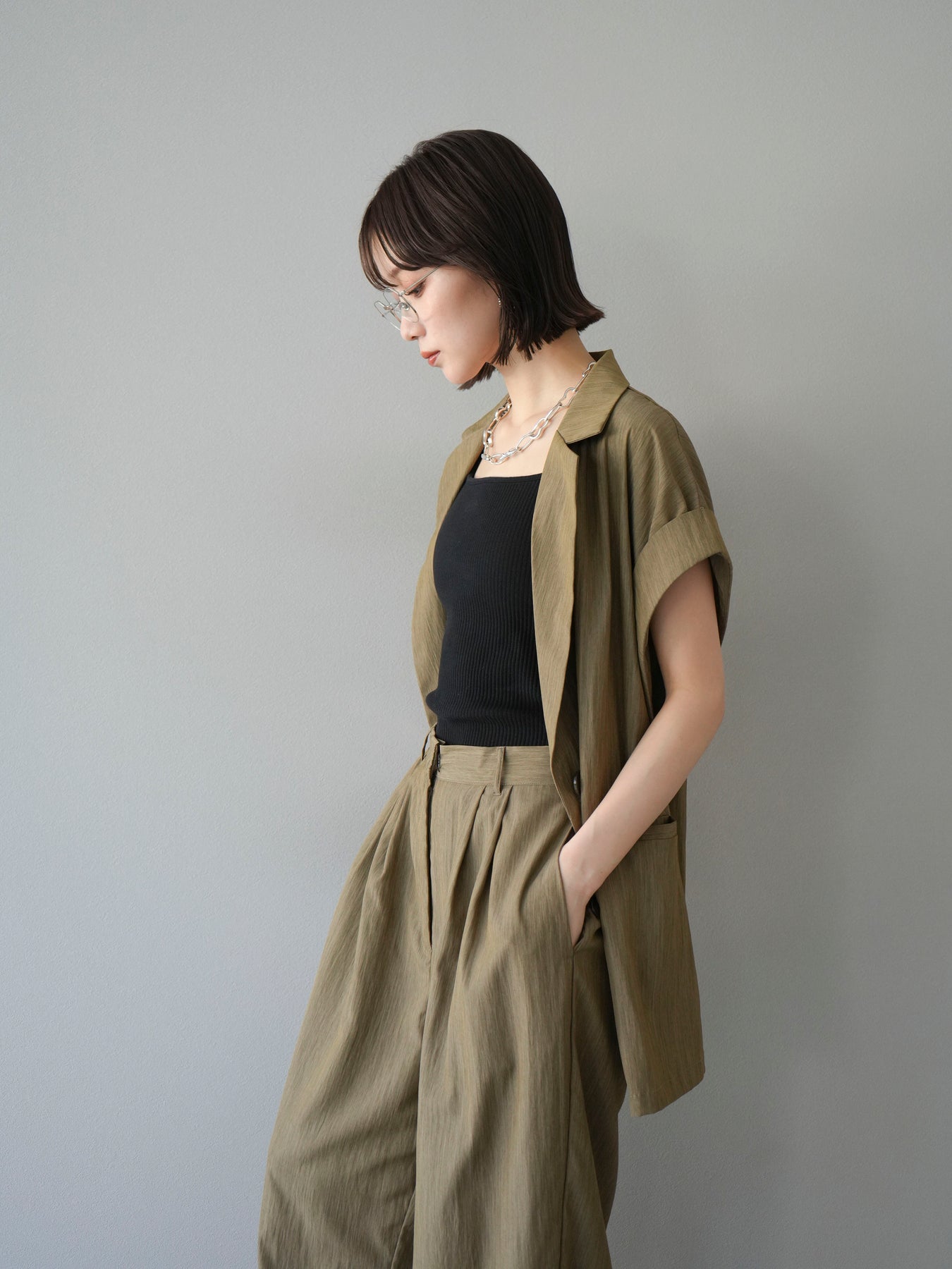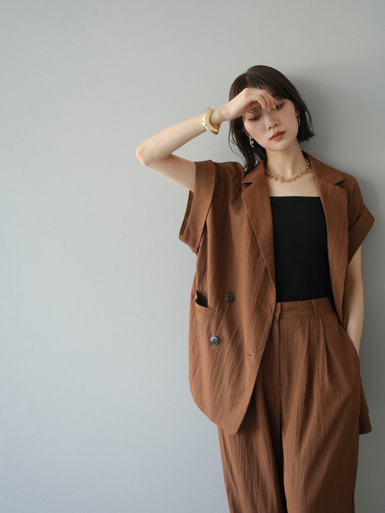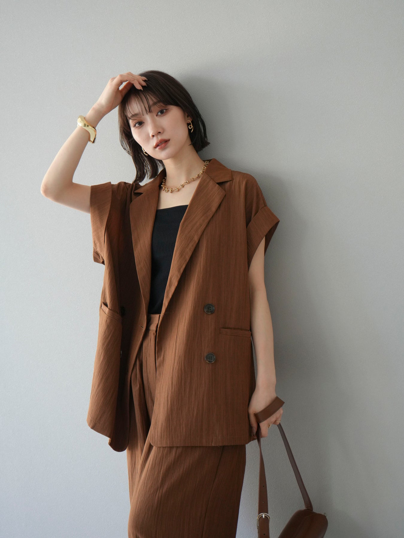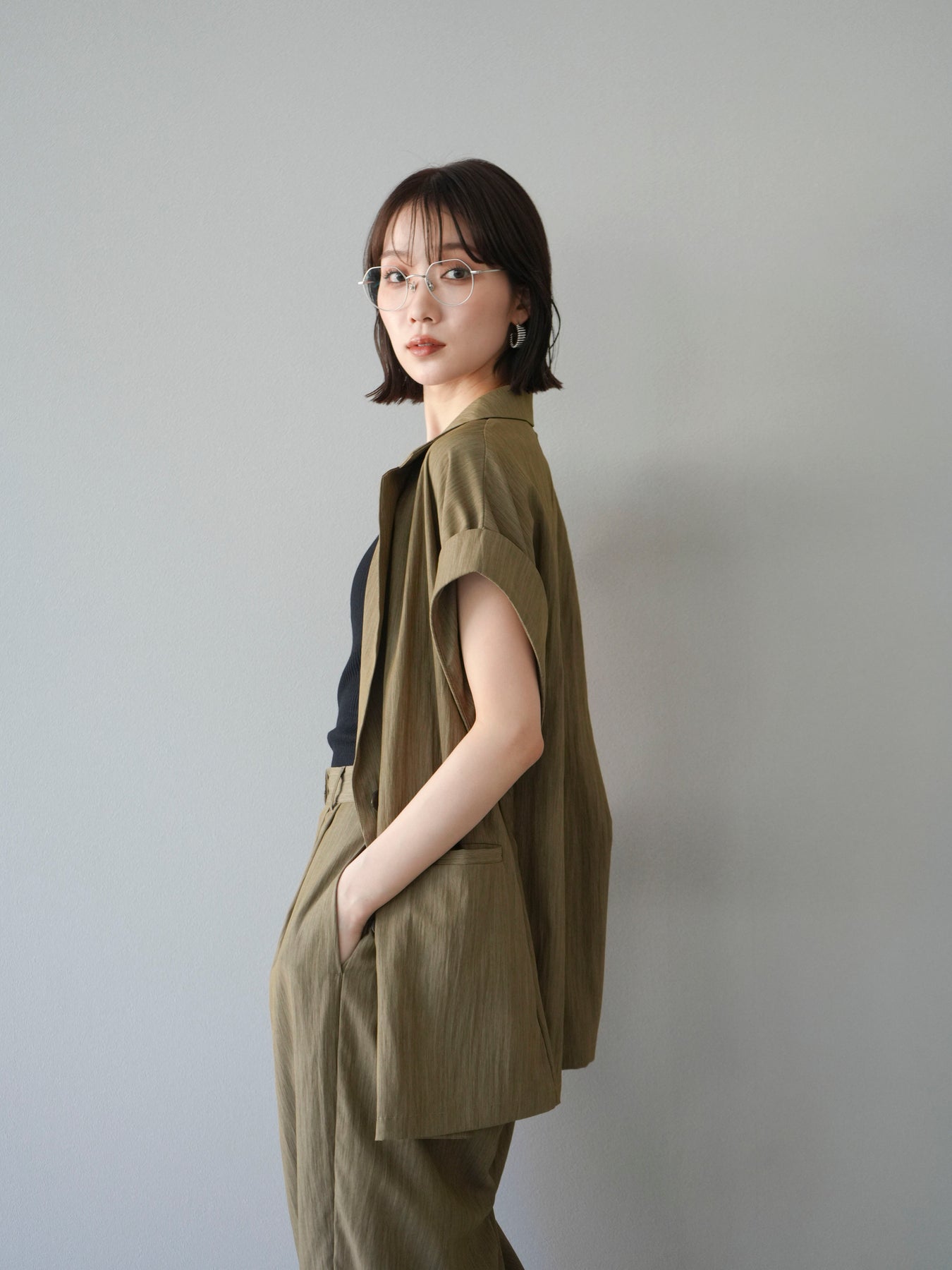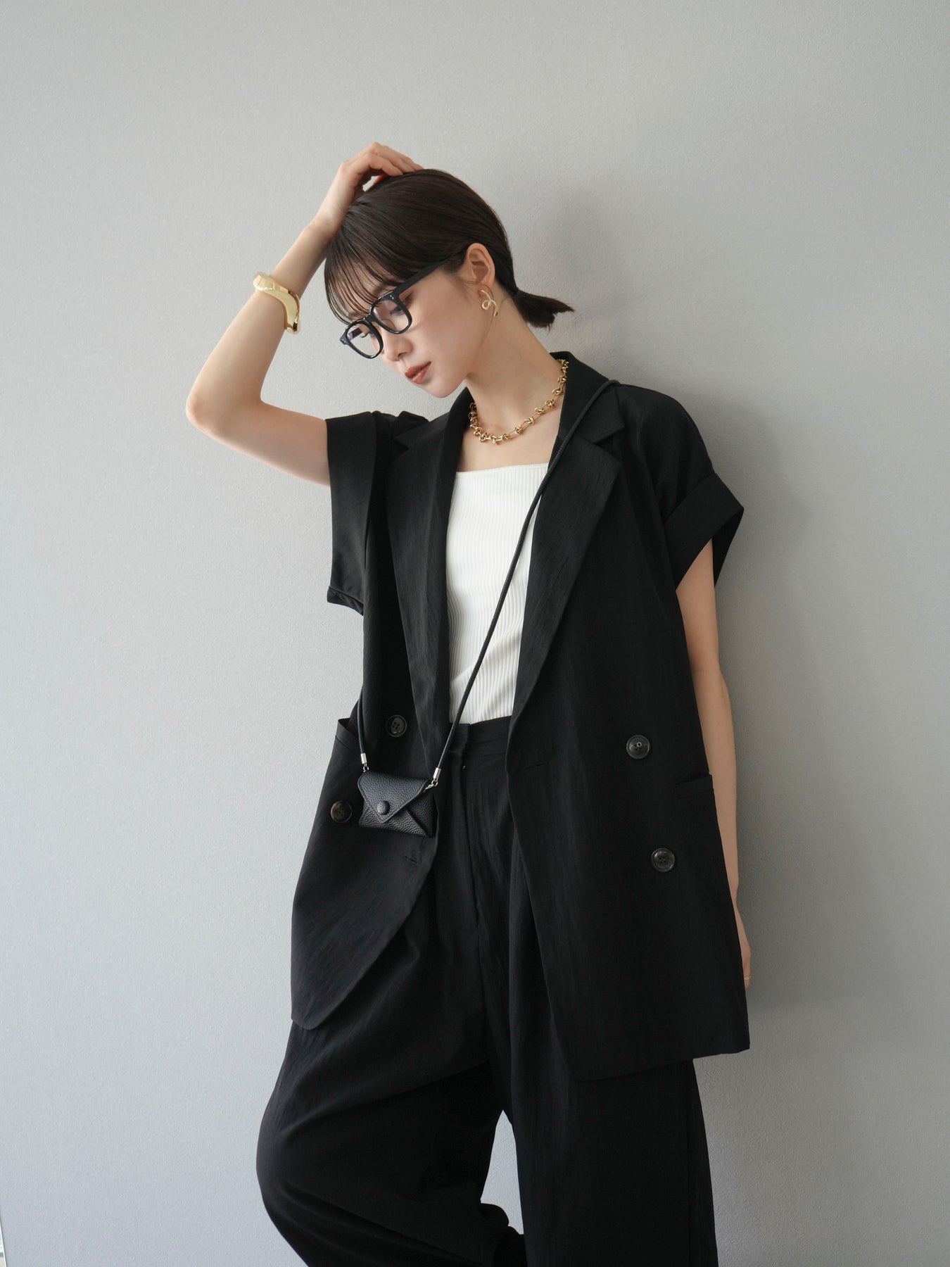 這款雙扣無袖背心採用天然亞麻材質製成。法式長袖恰到好處地垂落於肩部,寬鬆的輪廓營造出輕鬆幹練的氛圍。長款設計包覆臀部,垂直的線條營造出隱藏身材、提升氣質的效果。搭配T卹或無袖上衣,即可打造幹練的疊穿造型。也推薦作為套裝穿著。 *除下裝和吊帶背心(內衣)外,所有商品均不包含內衣。