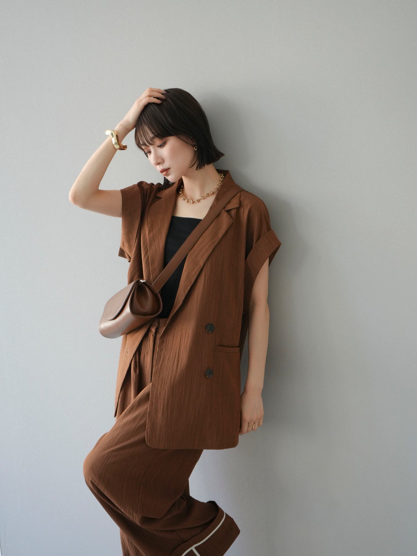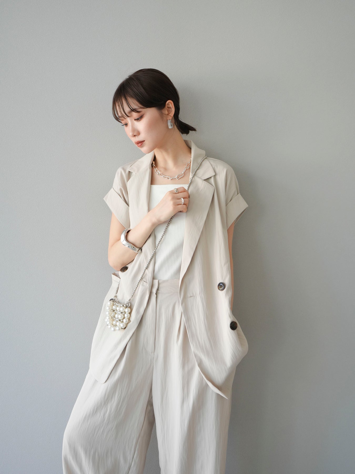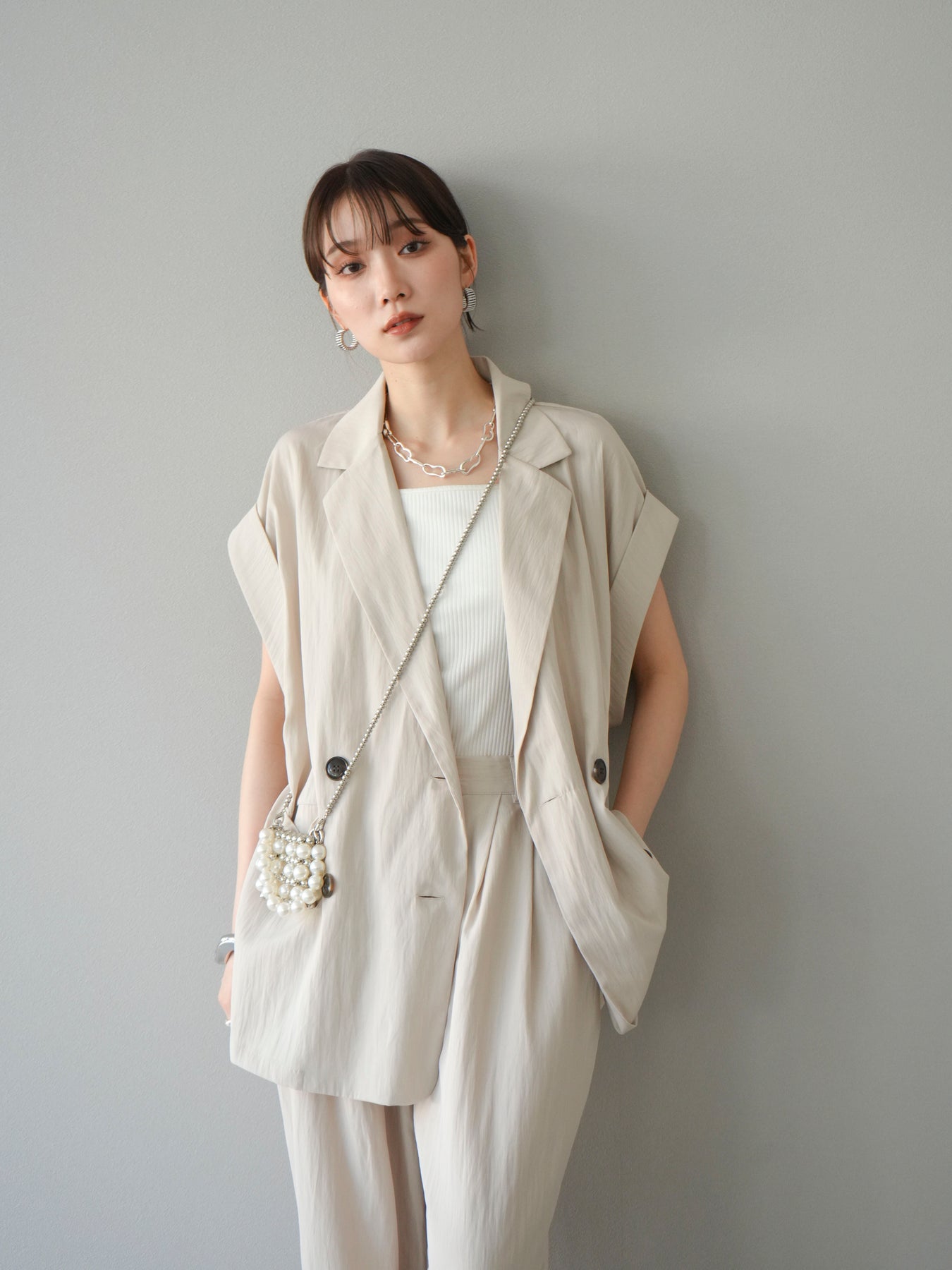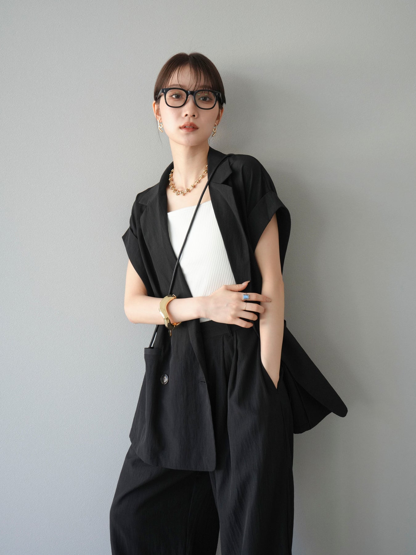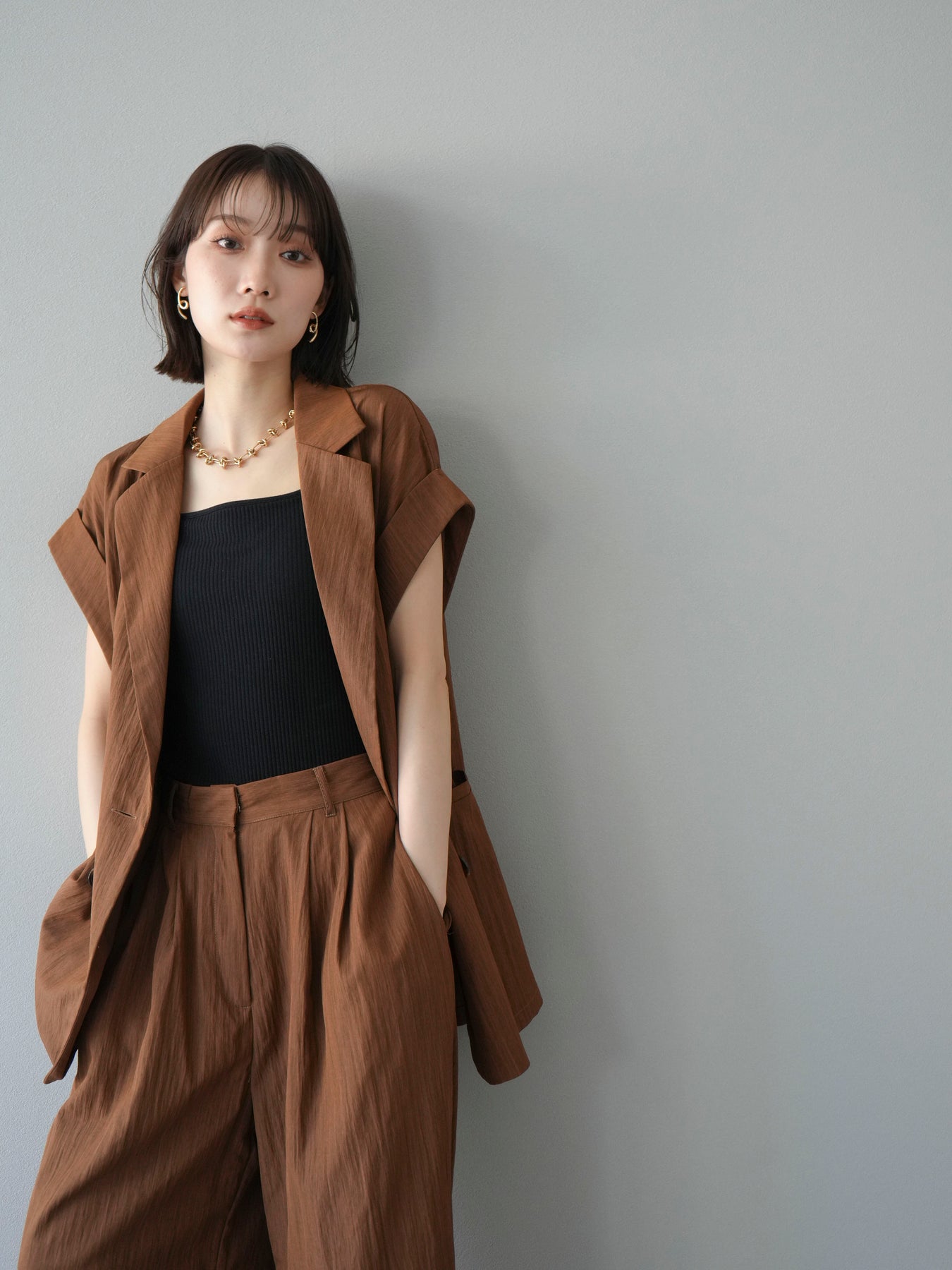 這款雙扣無袖背心採用天然亞麻材質製成。法式長袖恰到好處地垂落於肩部,寬鬆的輪廓營造出輕鬆幹練的氛圍。長款設計包覆臀部,垂直的線條營造出隱藏身材、提升氣質的效果。搭配T卹或無袖上衣,即可打造幹練的疊穿造型。也推薦作為套裝穿著。 *除下裝和吊帶背心(內衣)外,所有商品均不包含內衣。
