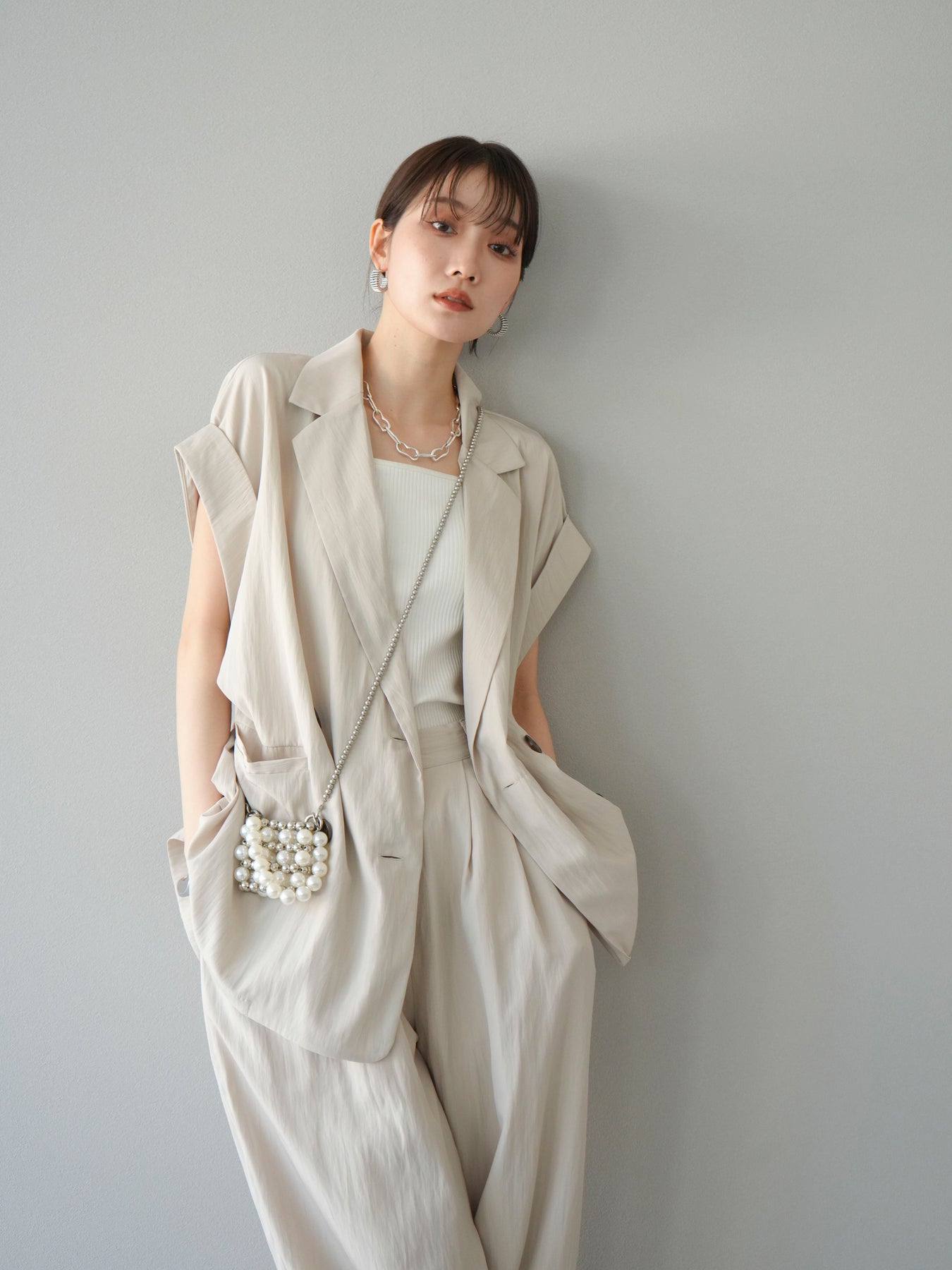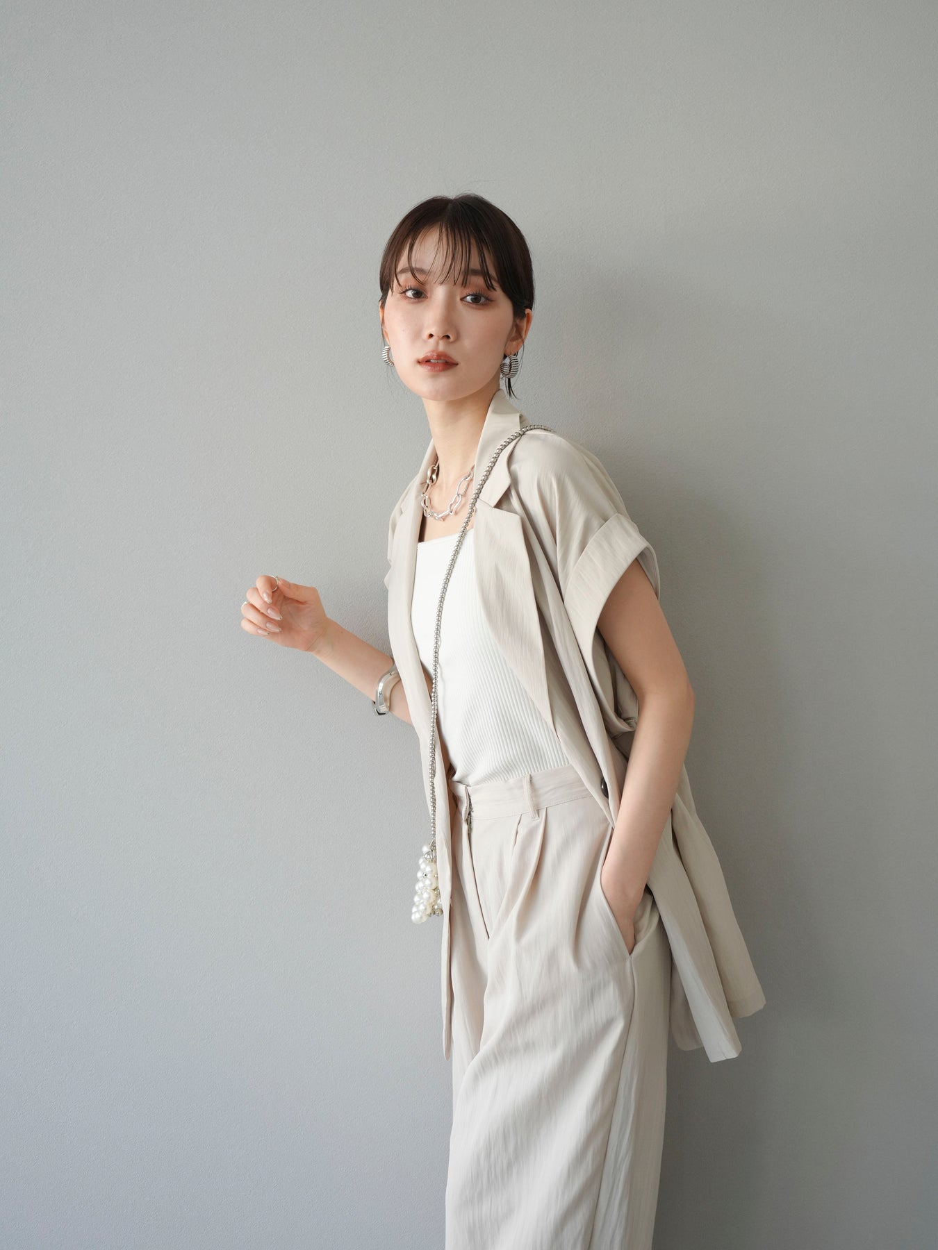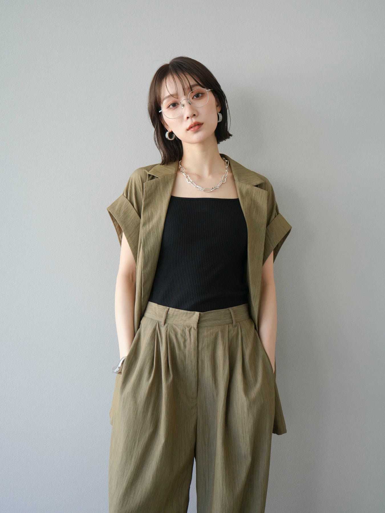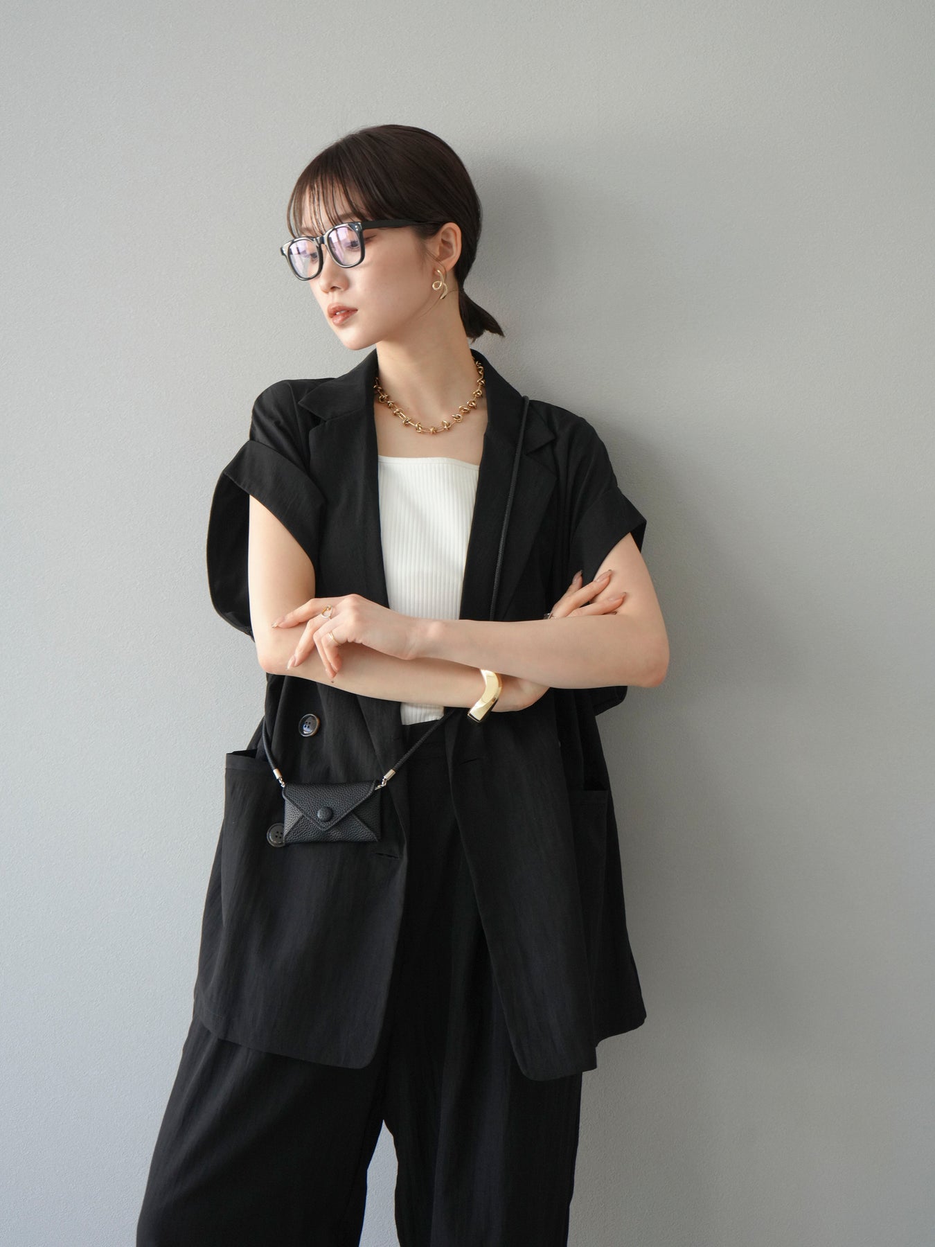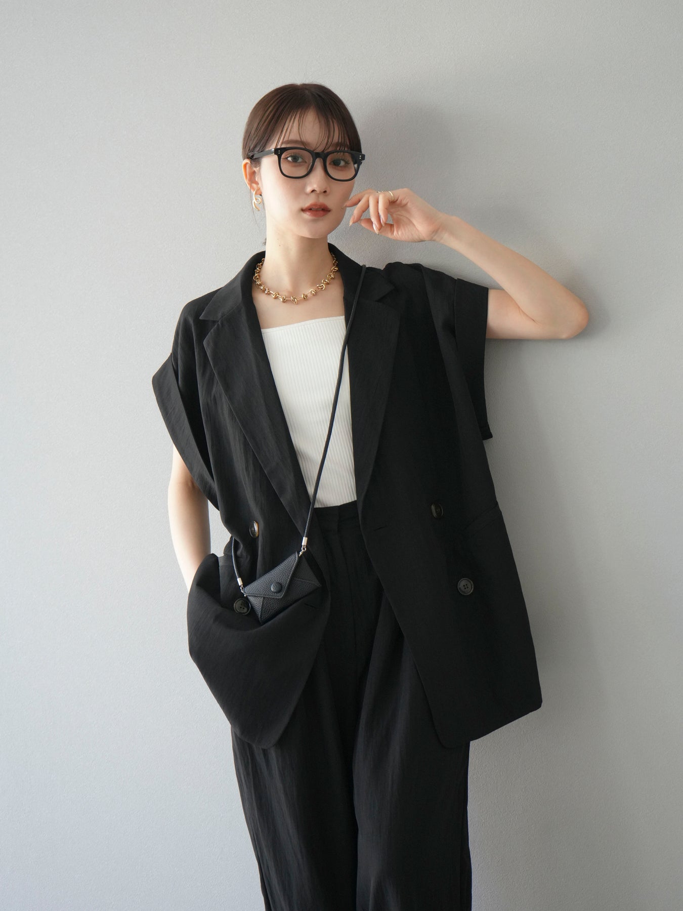 這款雙扣無袖背心採用天然亞麻材質製成。法式長袖恰到好處地垂落於肩部,寬鬆的輪廓營造出輕鬆幹練的氛圍。長款設計包覆臀部,垂直的線條營造出隱藏身材、提升氣質的效果。搭配T卹或無袖上衣,即可打造幹練的疊穿造型。也推薦作為套裝穿著。 *除下裝和吊帶背心(內衣)外,所有商品均不包含內衣。