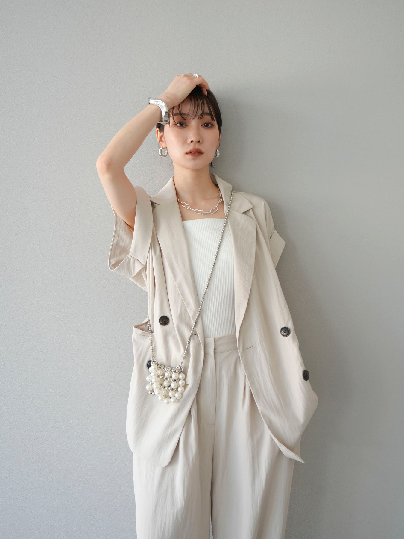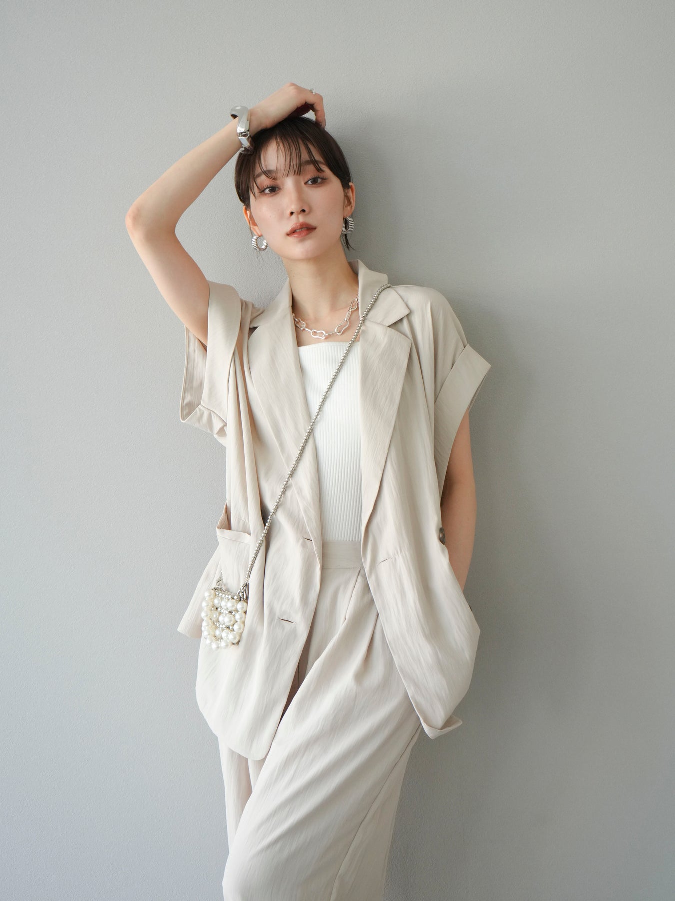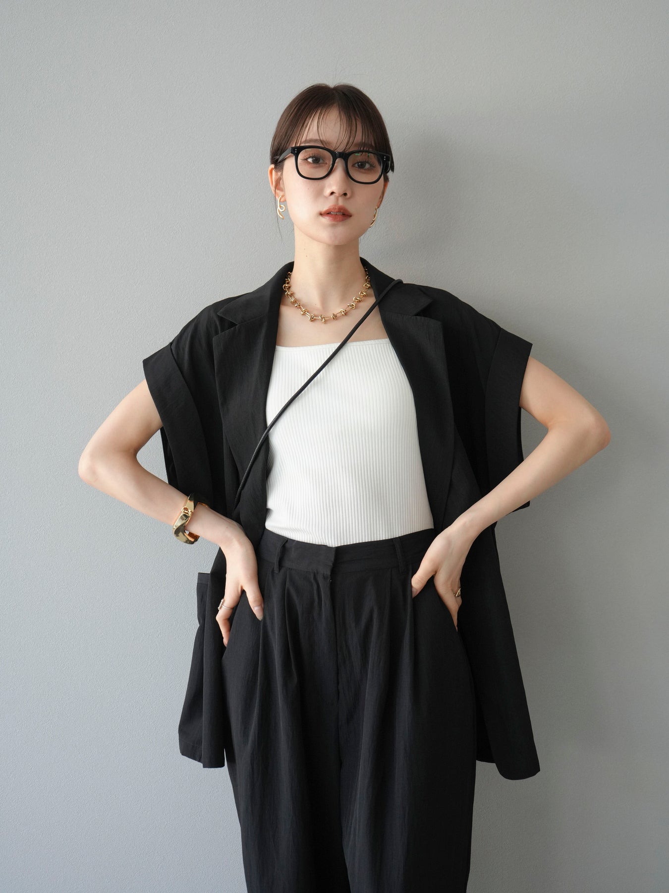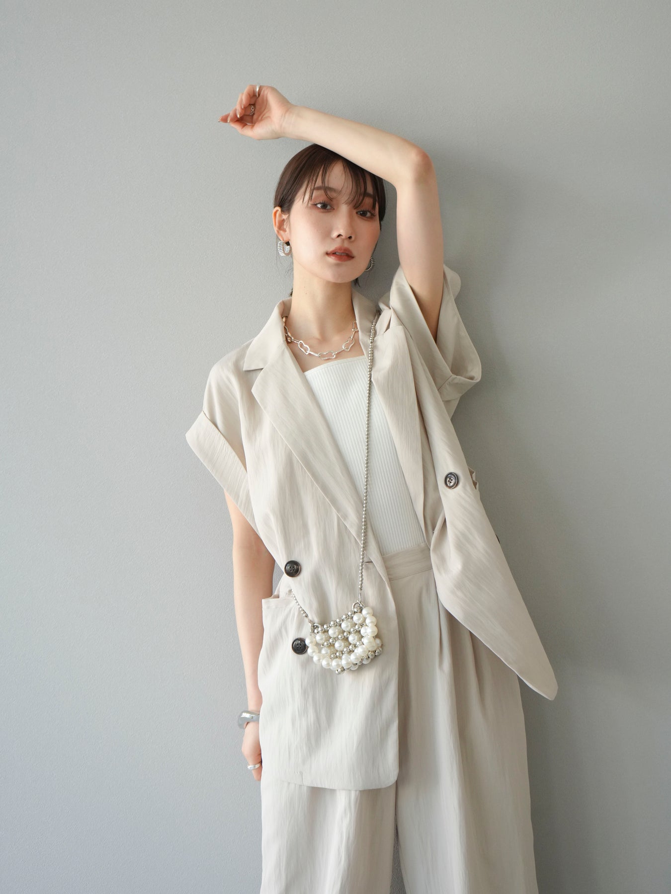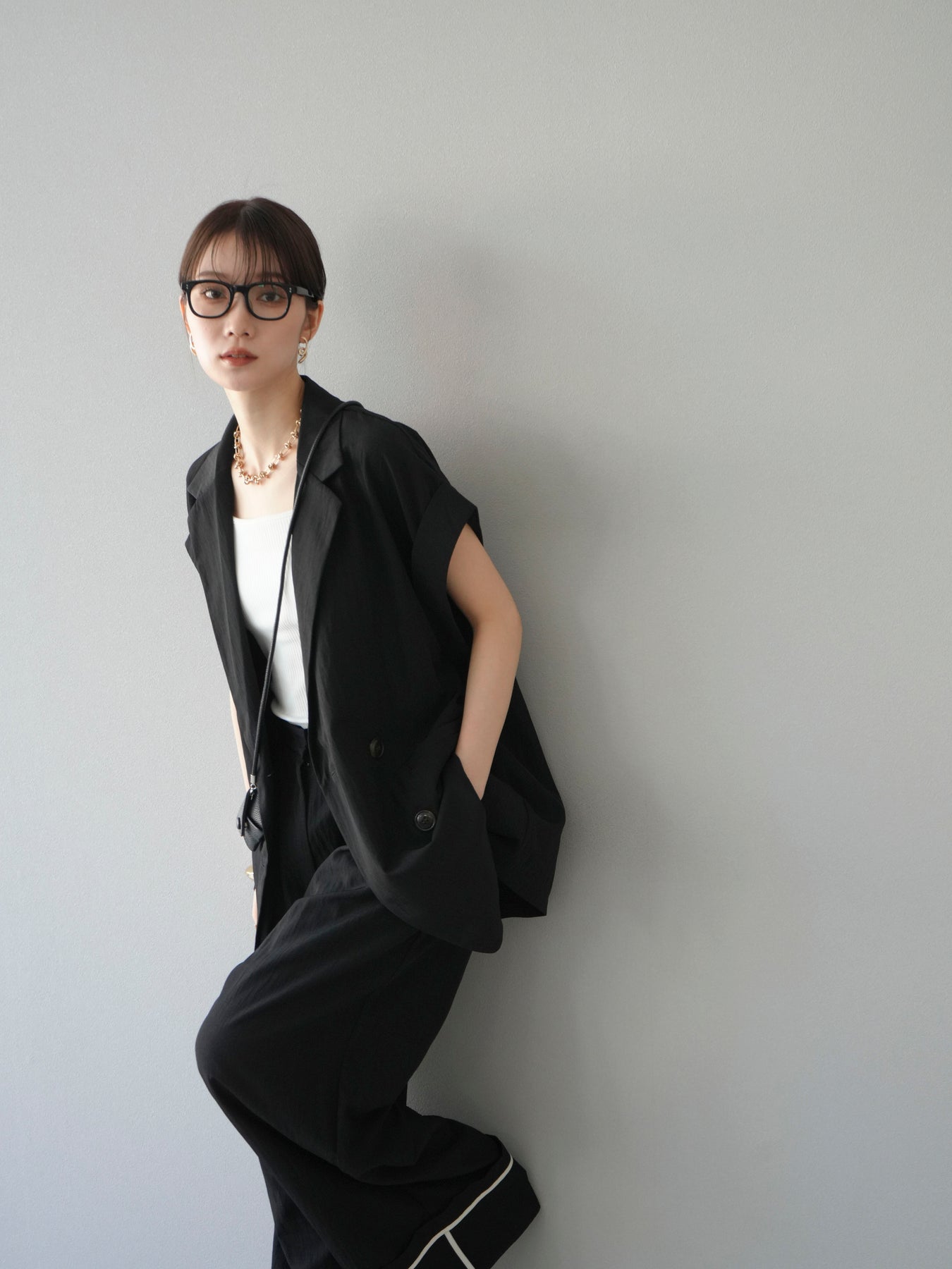 這款雙扣無袖背心採用天然亞麻材質製成。法式長袖恰到好處地垂落於肩部,寬鬆的輪廓營造出輕鬆幹練的氛圍。長款設計包覆臀部,垂直的線條營造出隱藏身材、提升氣質的效果。搭配T卹或無袖上衣,即可打造幹練的疊穿造型。也推薦作為套裝穿著。 *除下裝和吊帶背心(內衣)外,所有商品均不包含內衣。