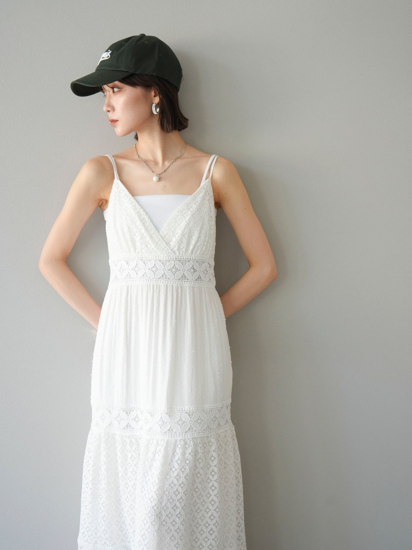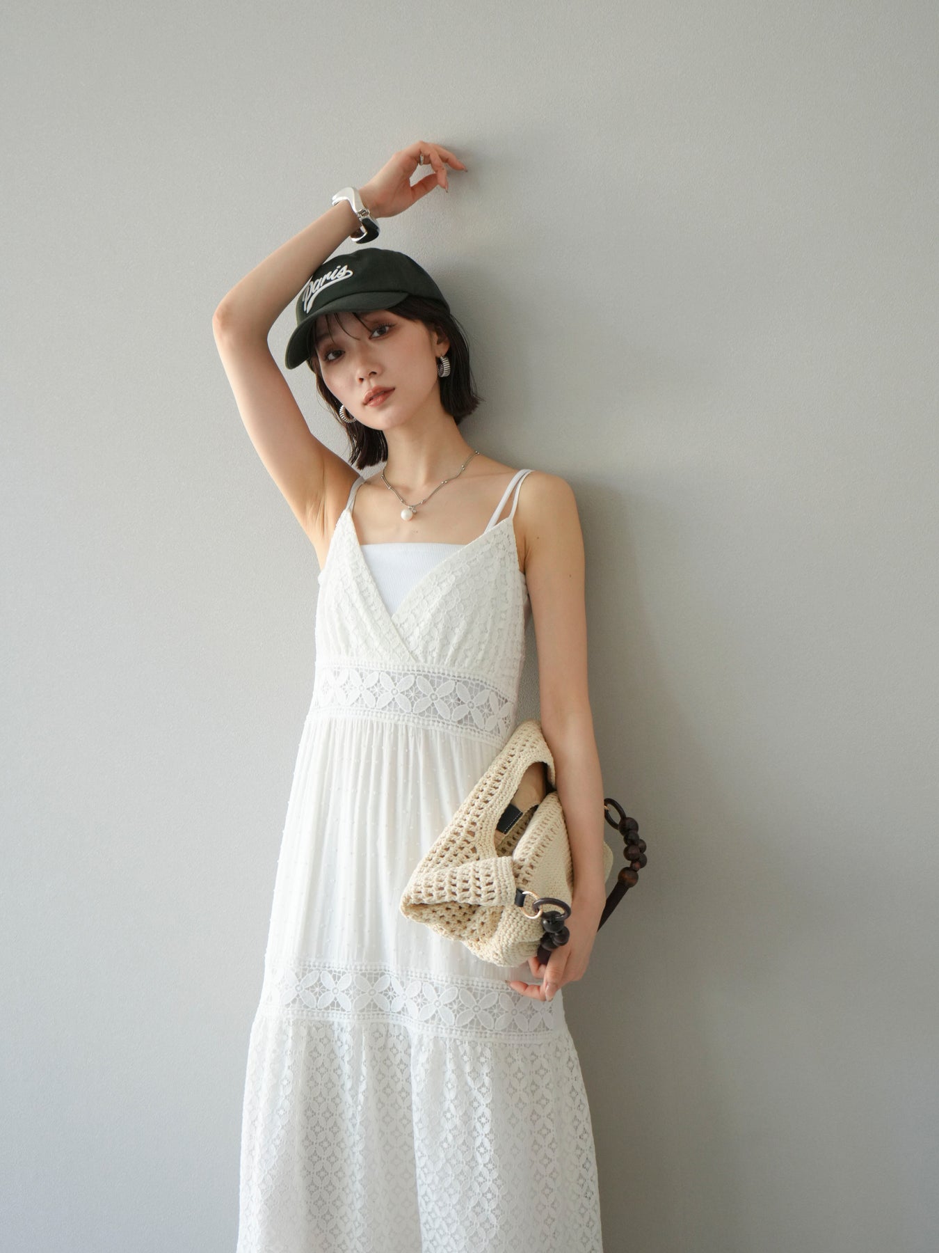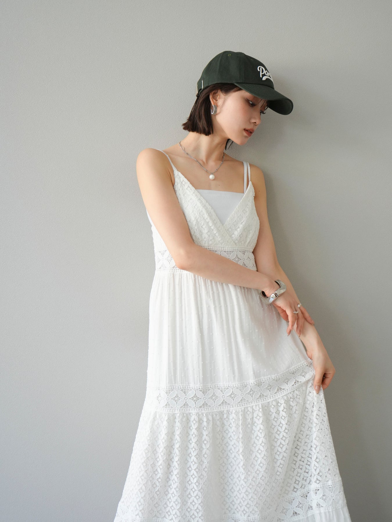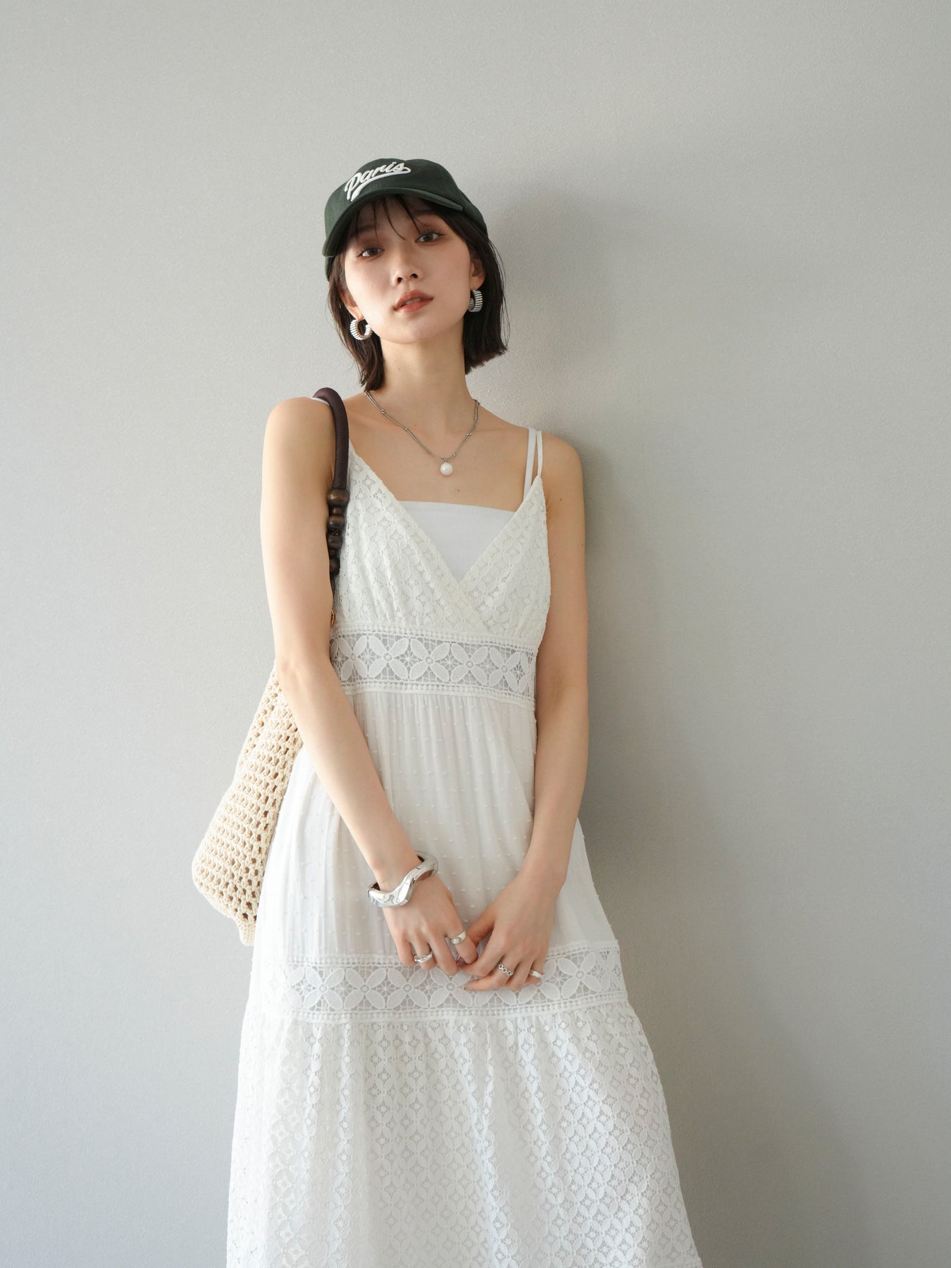 這款吊帶裙散發著女性的柔和氣息,採用奢華的精選蕾絲製成。 V領設計搭配修飾肩頸的細肩帶,更顯女性柔美,而向裙擺柔和展開的層疊輪廓則營造出輕盈飄逸的氛圍。不同的蕾絲圖案交織,營造出立體華麗的造型。它既可單獨穿著,也可與T卹或剪裁上衣疊穿。無論在度假勝地還是都市,它都是令人驚豔的點睛之筆。 *除下裝和吊帶裙(內衣)外,所有商品均不含內衣。