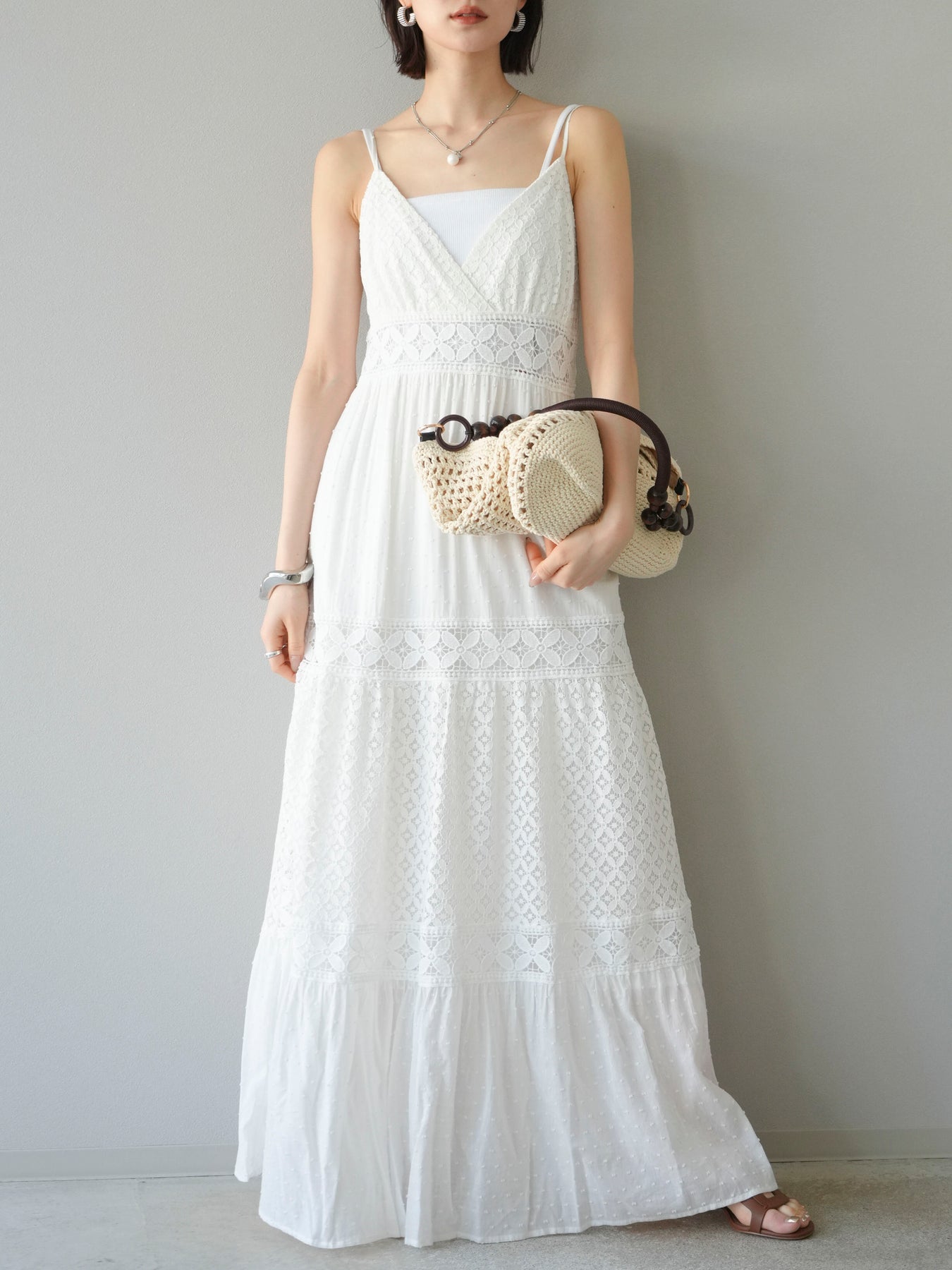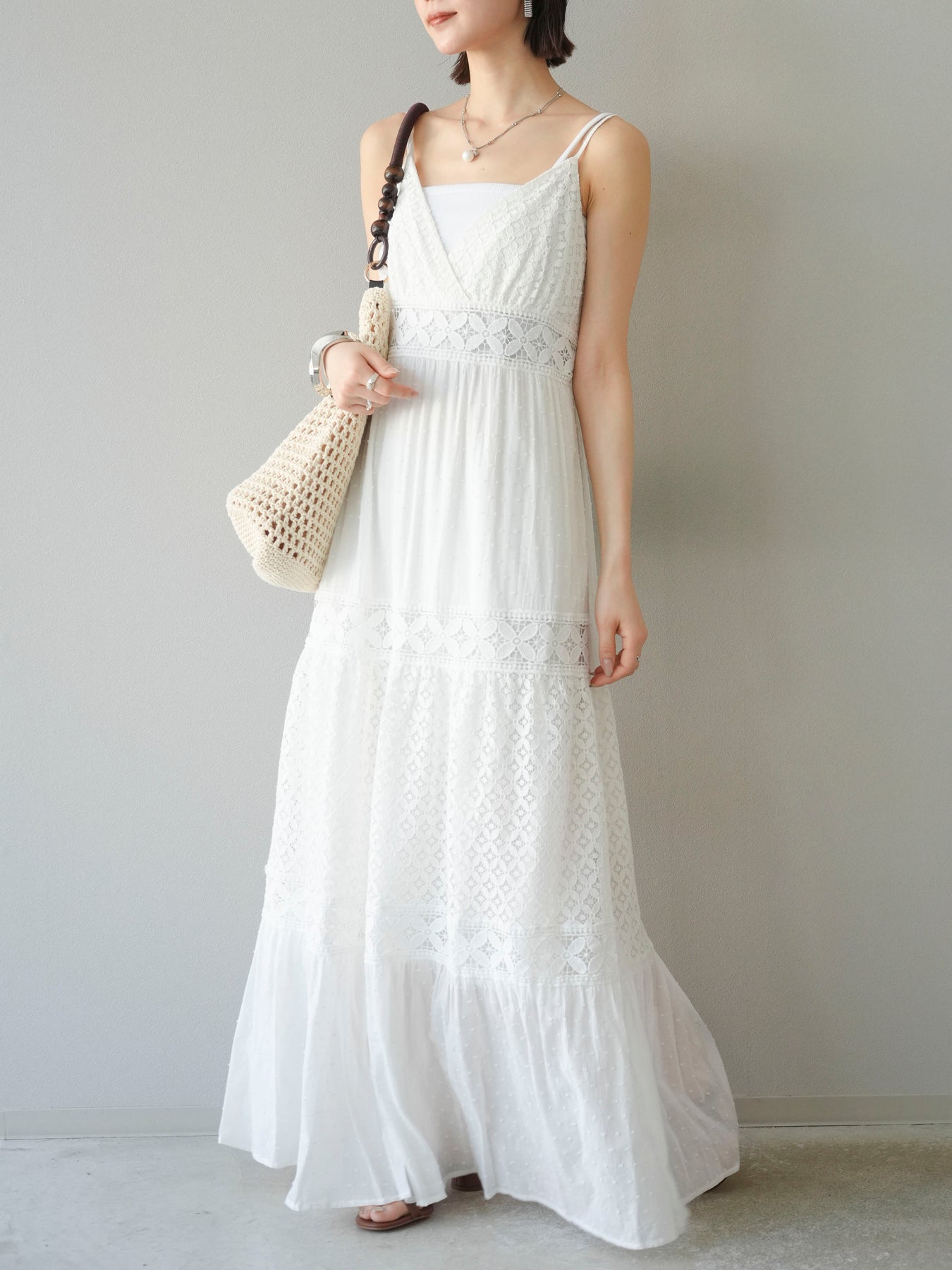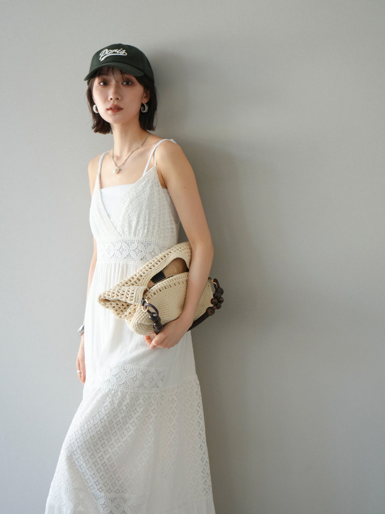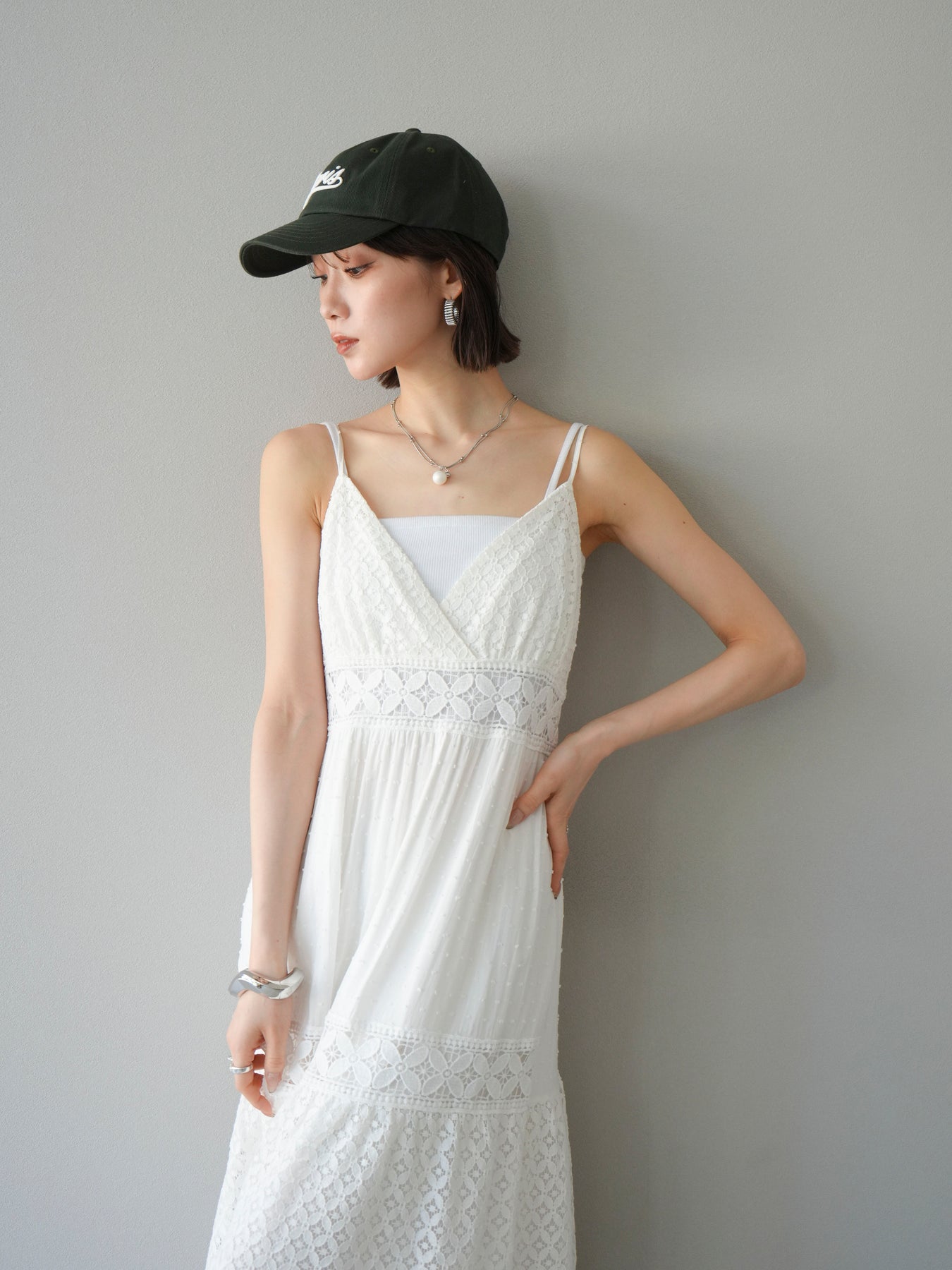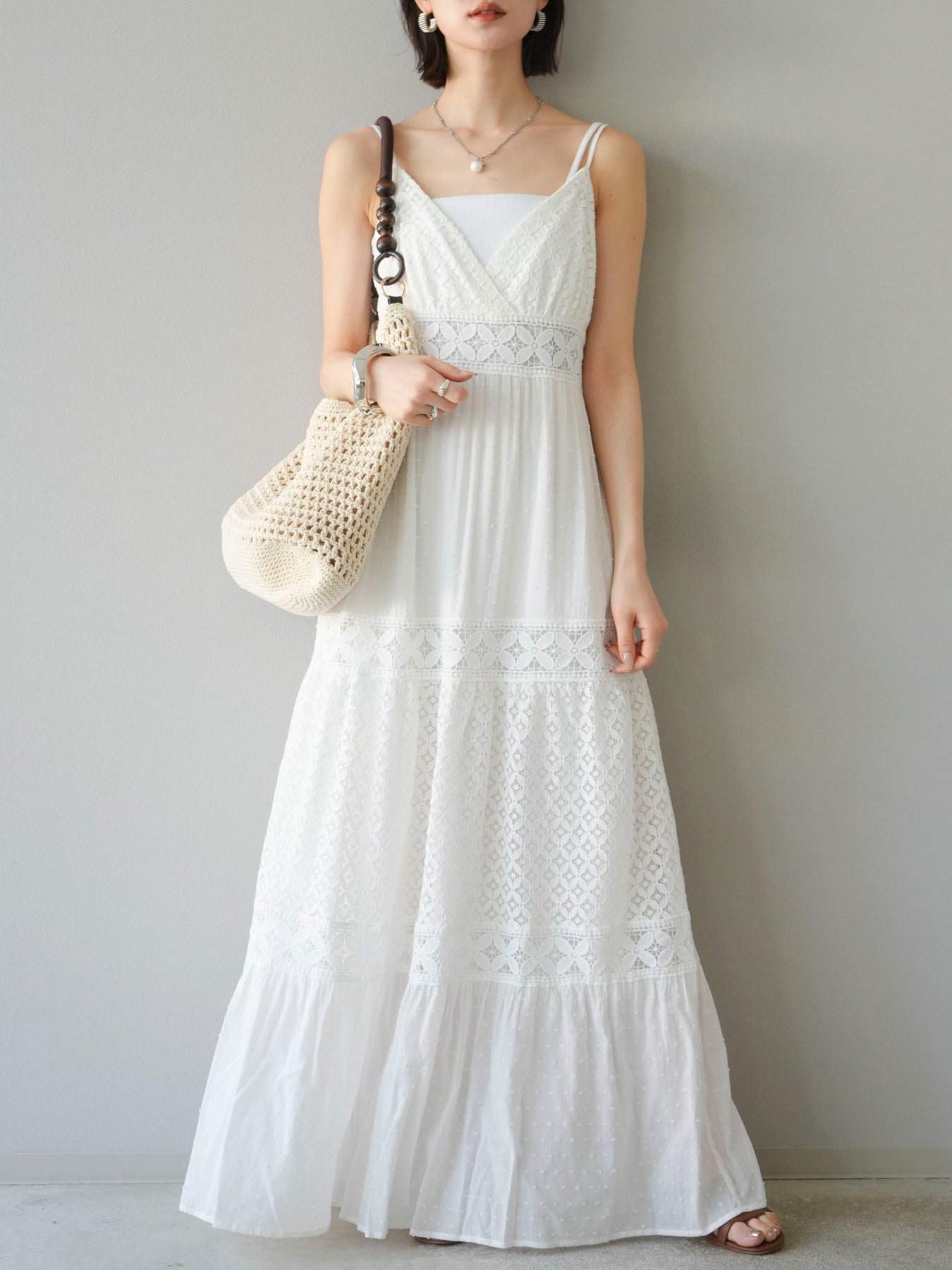 這款吊帶裙散發著女性的柔和氣息,採用奢華的精選蕾絲製成。 V領設計搭配修飾肩頸的細肩帶,更顯女性柔美,而向裙擺柔和展開的層疊輪廓則營造出輕盈飄逸的氛圍。不同的蕾絲圖案交織,營造出立體華麗的造型。它既可單獨穿著,也可與T卹或剪裁上衣疊穿。無論在度假勝地還是都市,它都是令人驚豔的點睛之筆。 *除下裝和吊帶裙(內衣)外,所有商品均不含內衣。