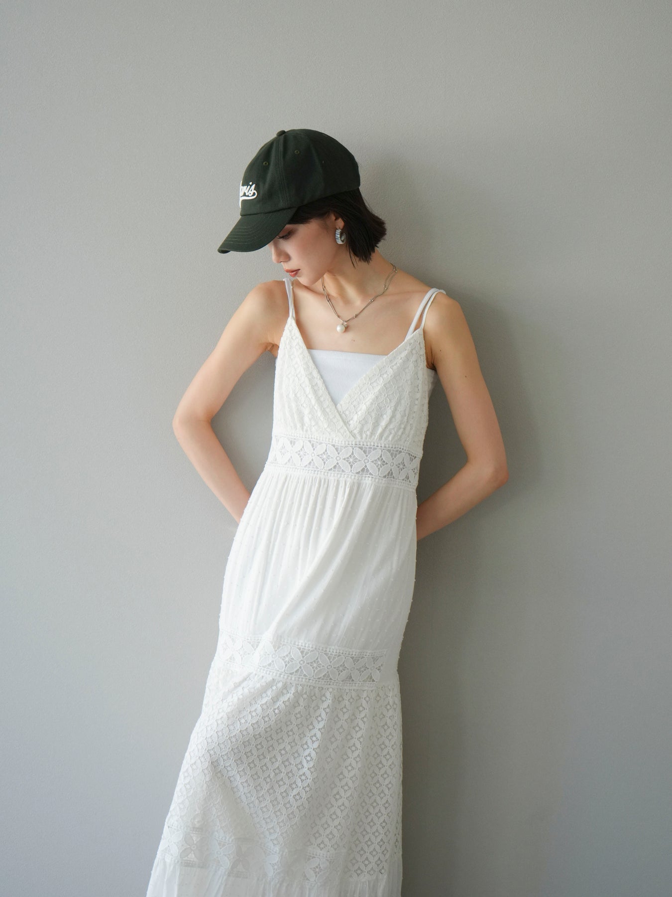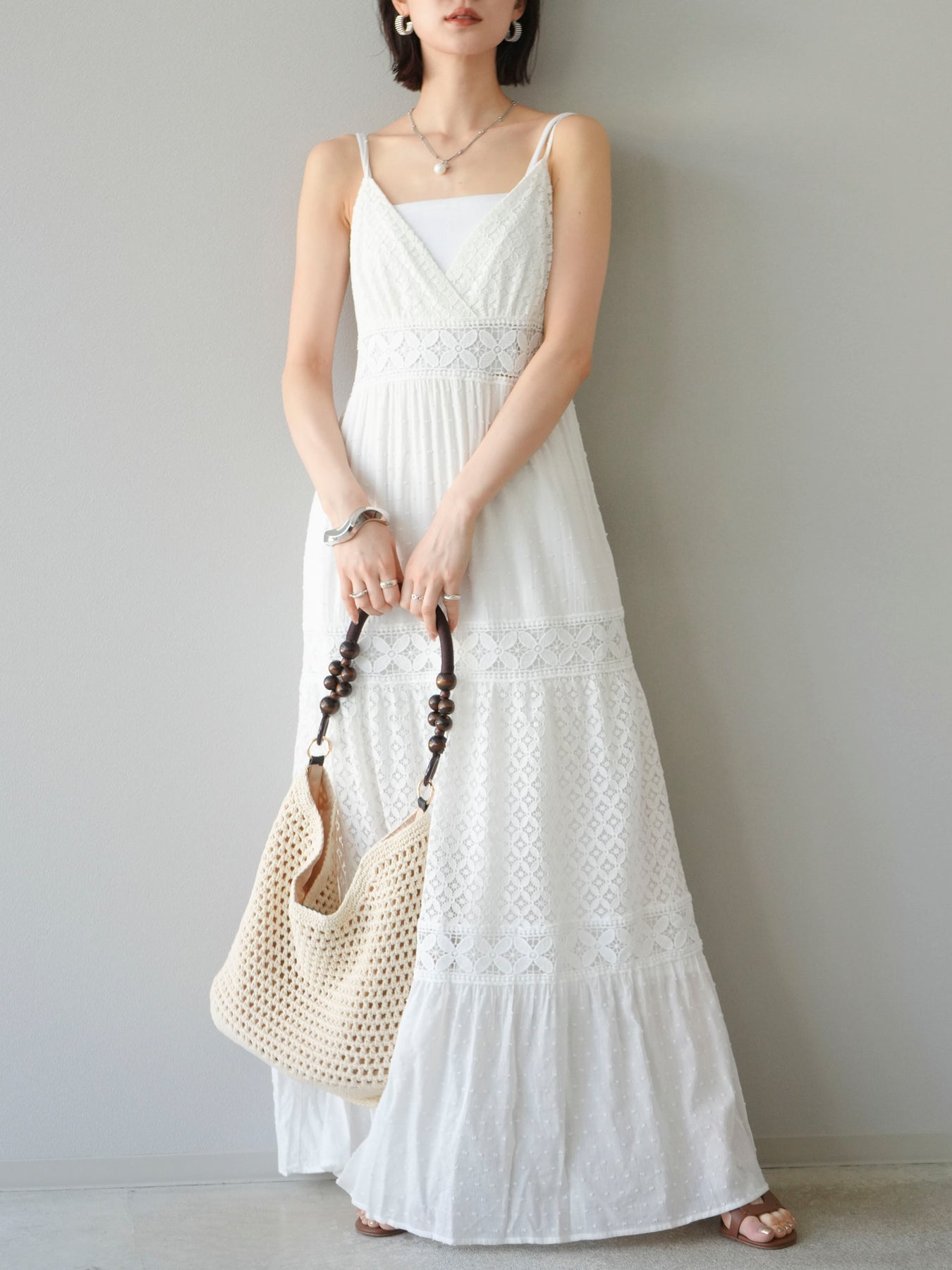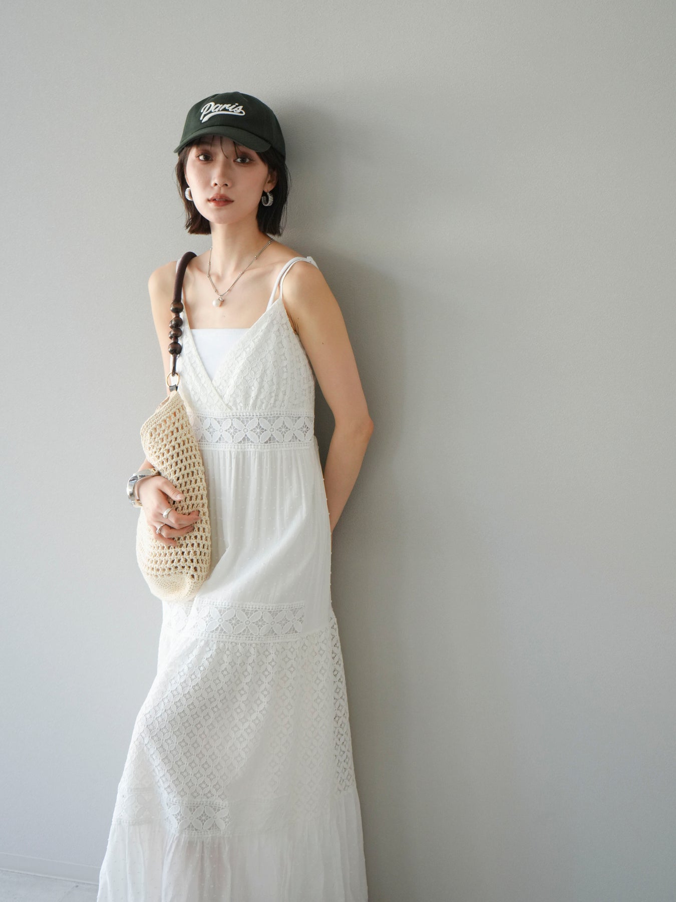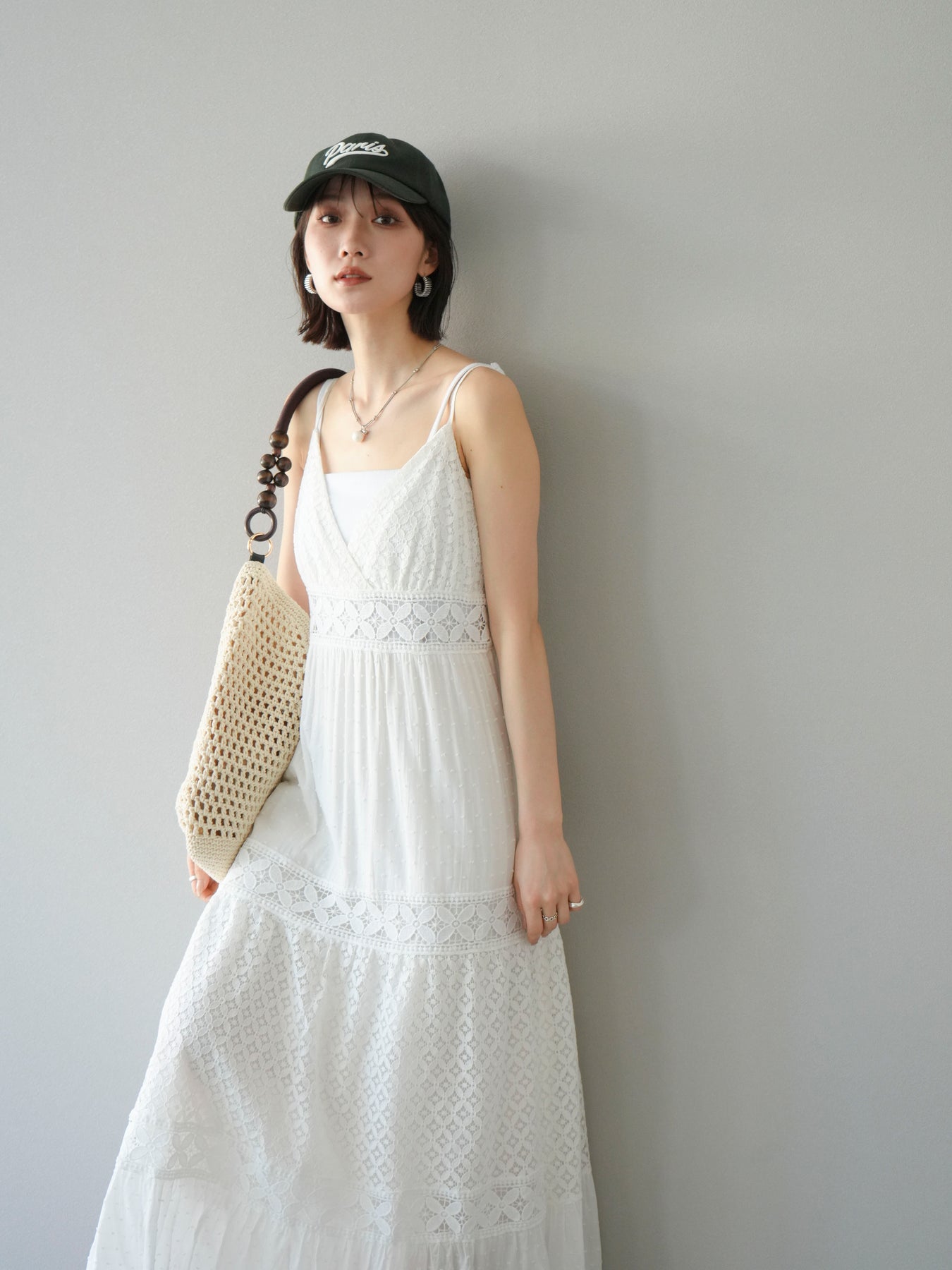 這款吊帶裙散發著女性的柔和氣息,採用奢華的精選蕾絲製成。 V領設計搭配修飾肩頸的細肩帶,更顯女性柔美,而向裙擺柔和展開的層疊輪廓則營造出輕盈飄逸的氛圍。不同的蕾絲圖案交織,營造出立體華麗的造型。它既可單獨穿著,也可與T卹或剪裁上衣疊穿。無論在度假勝地還是都市,它都是令人驚豔的點睛之筆。 *除下裝和吊帶裙(內衣)外,所有商品均不含內衣。