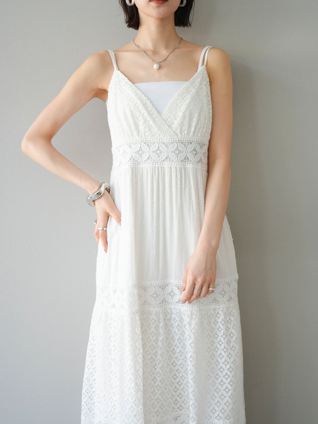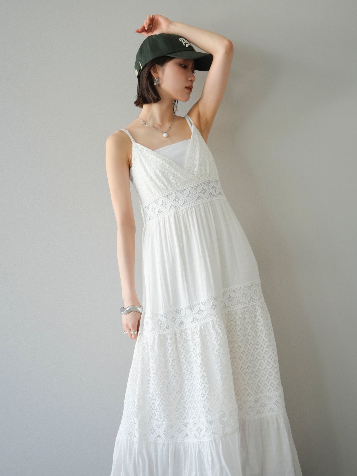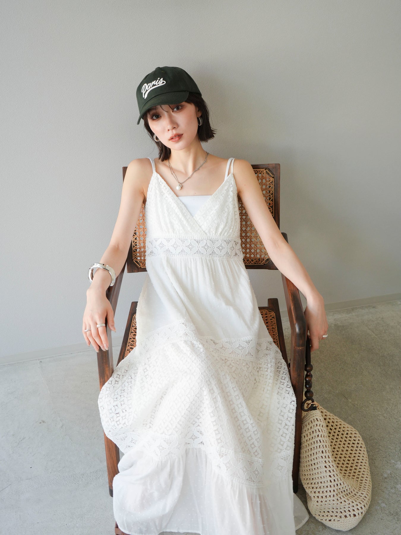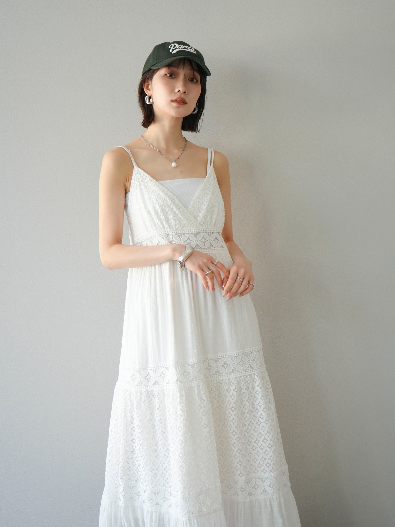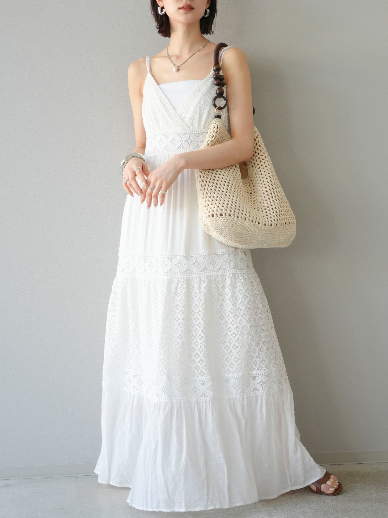 這款吊帶裙散發著女性的柔和氣息,採用奢華的精選蕾絲製成。 V領設計搭配修飾肩頸的細肩帶,更顯女性柔美,而向裙擺柔和展開的層疊輪廓則營造出輕盈飄逸的氛圍。不同的蕾絲圖案交織,營造出立體華麗的造型。它既可單獨穿著,也可與T卹或剪裁上衣疊穿。無論在度假勝地還是都市,它都是令人驚豔的點睛之筆。 *除下裝和吊帶裙(內衣)外,所有商品均不含內衣。