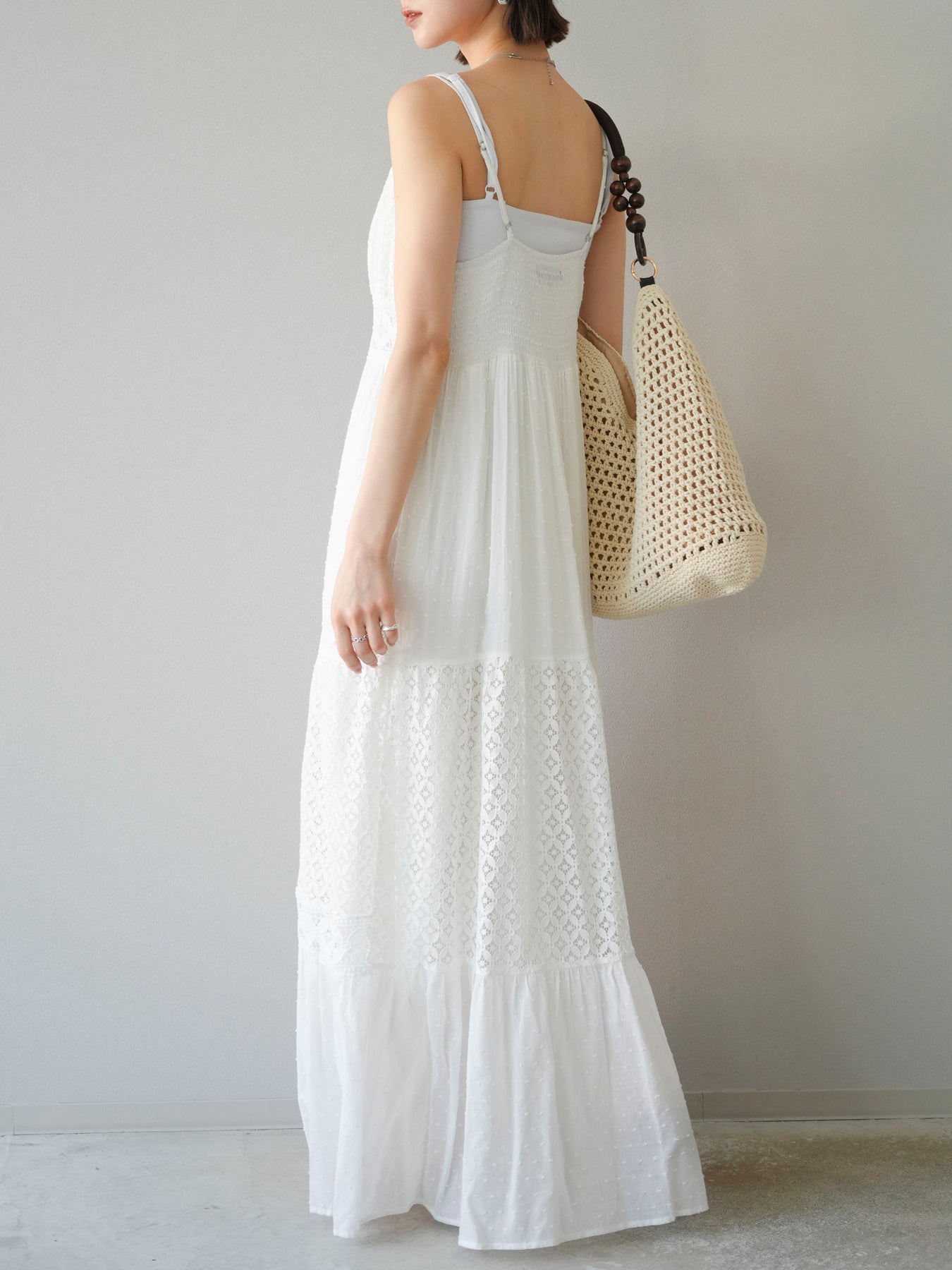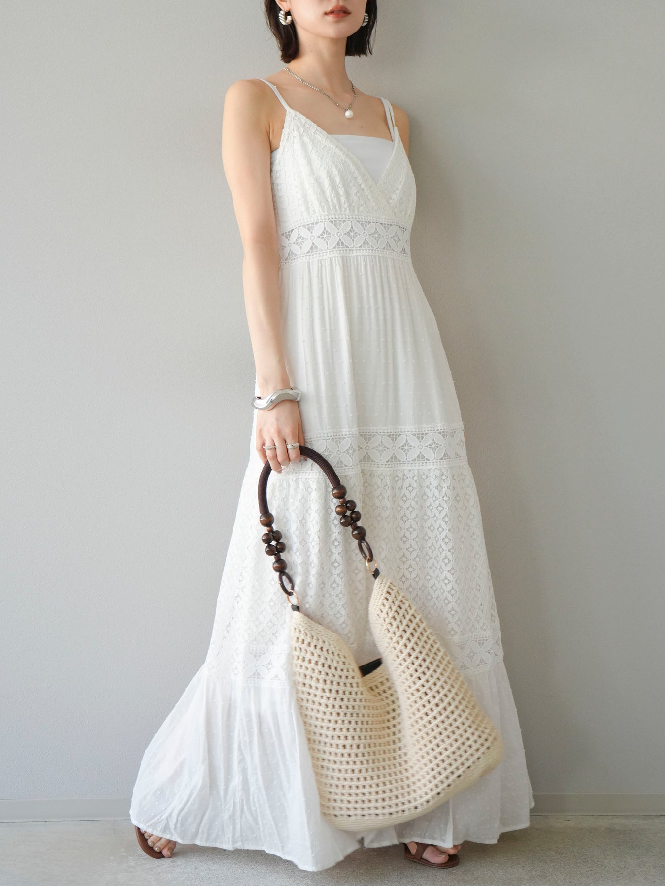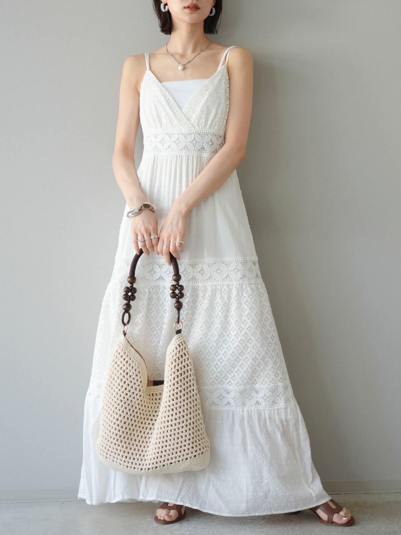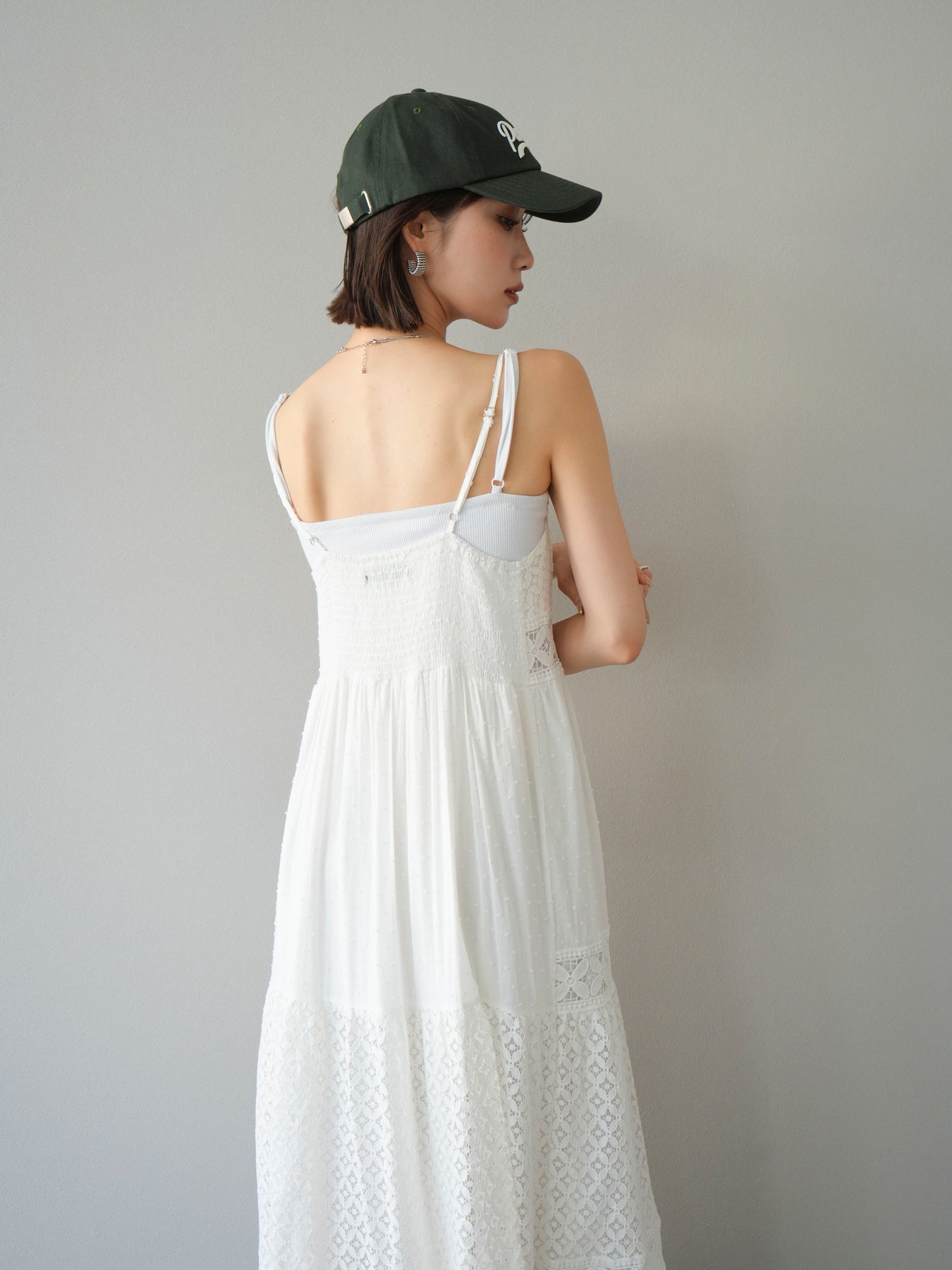 這款吊帶裙散發著女性的柔和氣息,採用奢華的精選蕾絲製成。 V領設計搭配修飾肩頸的細肩帶,更顯女性柔美,而向裙擺柔和展開的層疊輪廓則營造出輕盈飄逸的氛圍。不同的蕾絲圖案交織,營造出立體華麗的造型。它既可單獨穿著,也可與T卹或剪裁上衣疊穿。無論在度假勝地還是都市,它都是令人驚豔的點睛之筆。 *除下裝和吊帶裙(內衣)外,所有商品均不含內衣。
