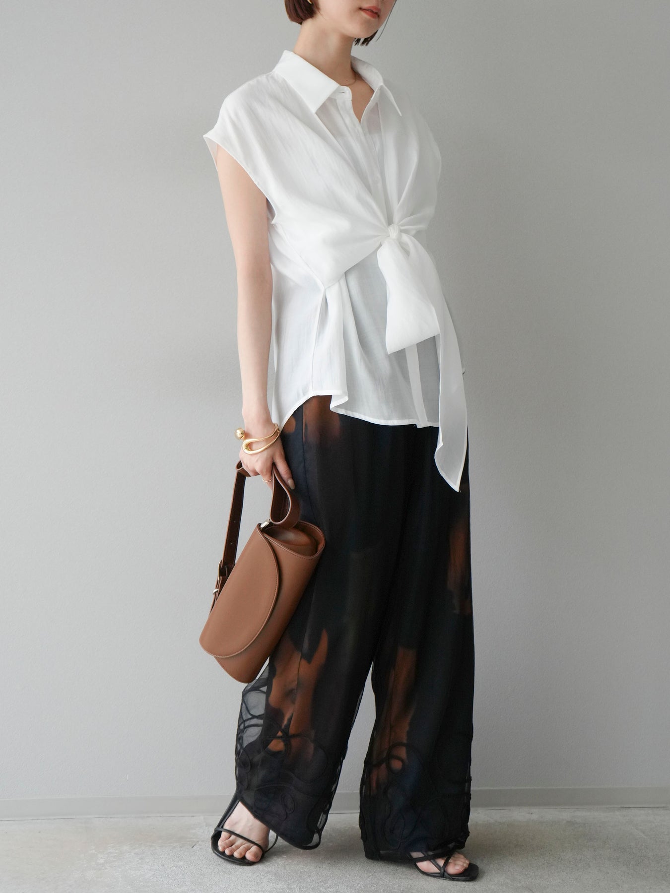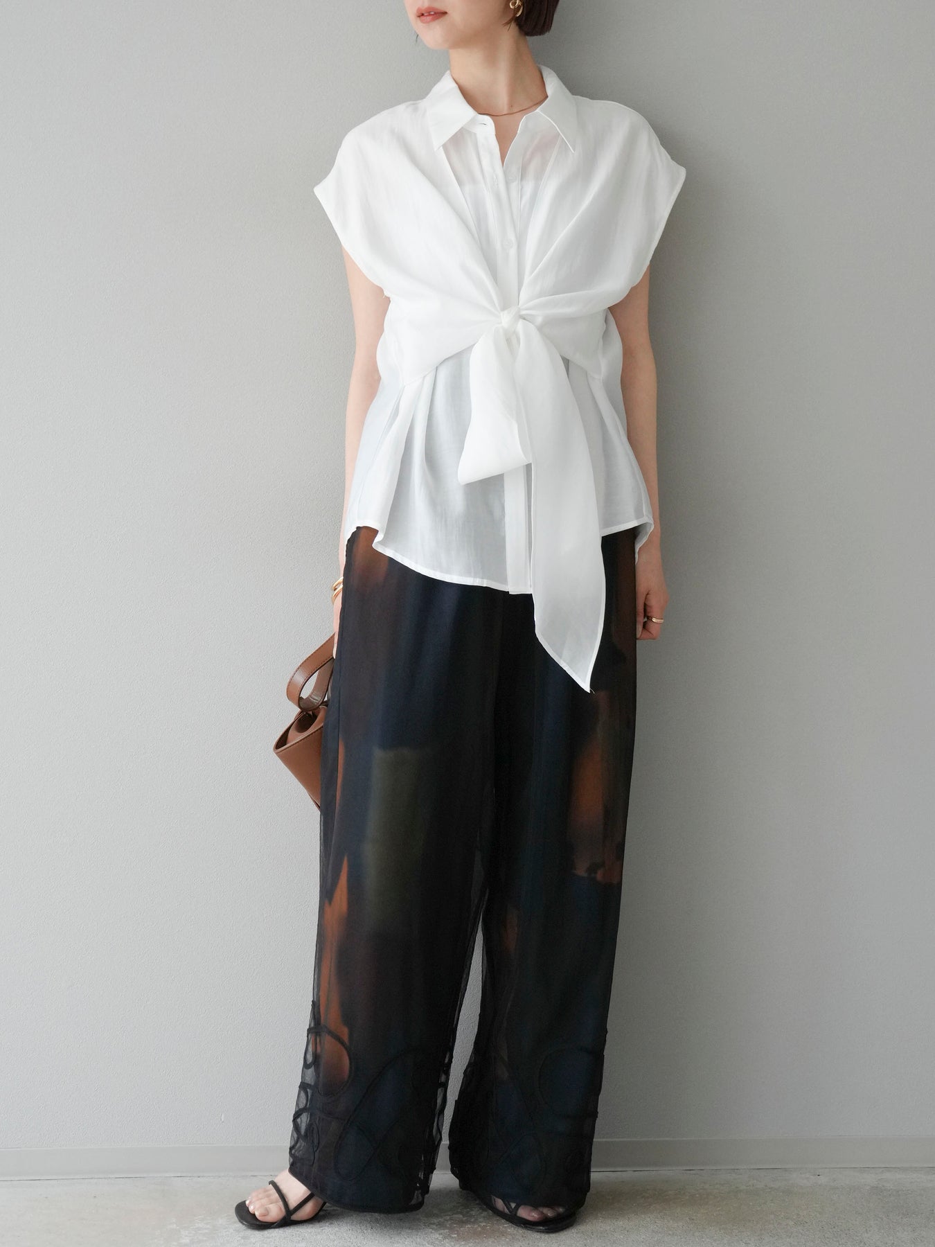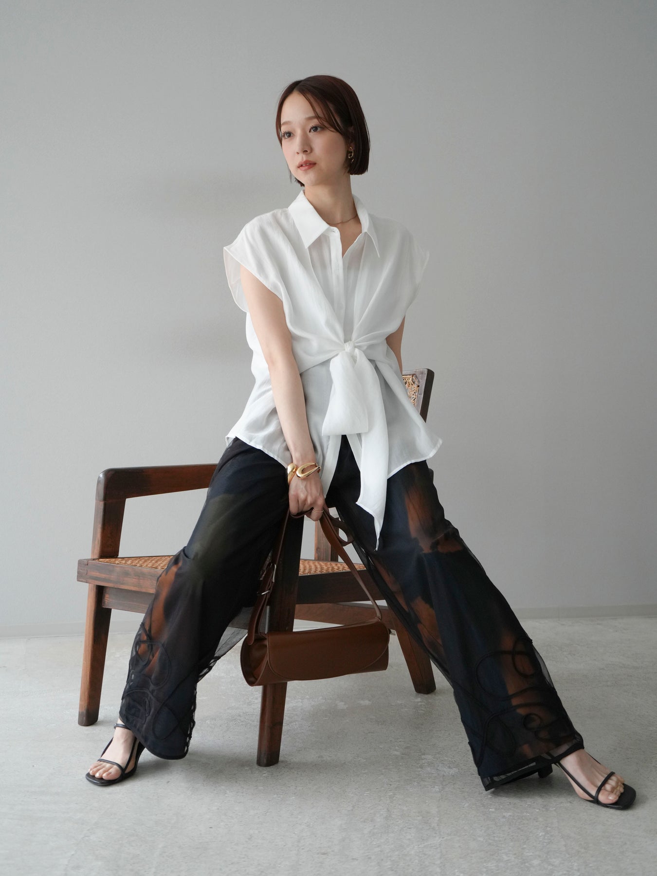 這款層疊薄紗褲的褲腳飾有醒目的立體繩繡。採用層疊精緻的薄紗材質,隨著動作輕盈飄逸,更顯女性柔美。腰部採用全鬆緊設計,帶來輕鬆舒適的穿著體驗,輪廓俐落優美。搭配簡單的下裝,即可提升整體造型,成為時尚的點睛之筆。 *除下裝和吊帶背心(內衣)外,其他商品均不含內衣。