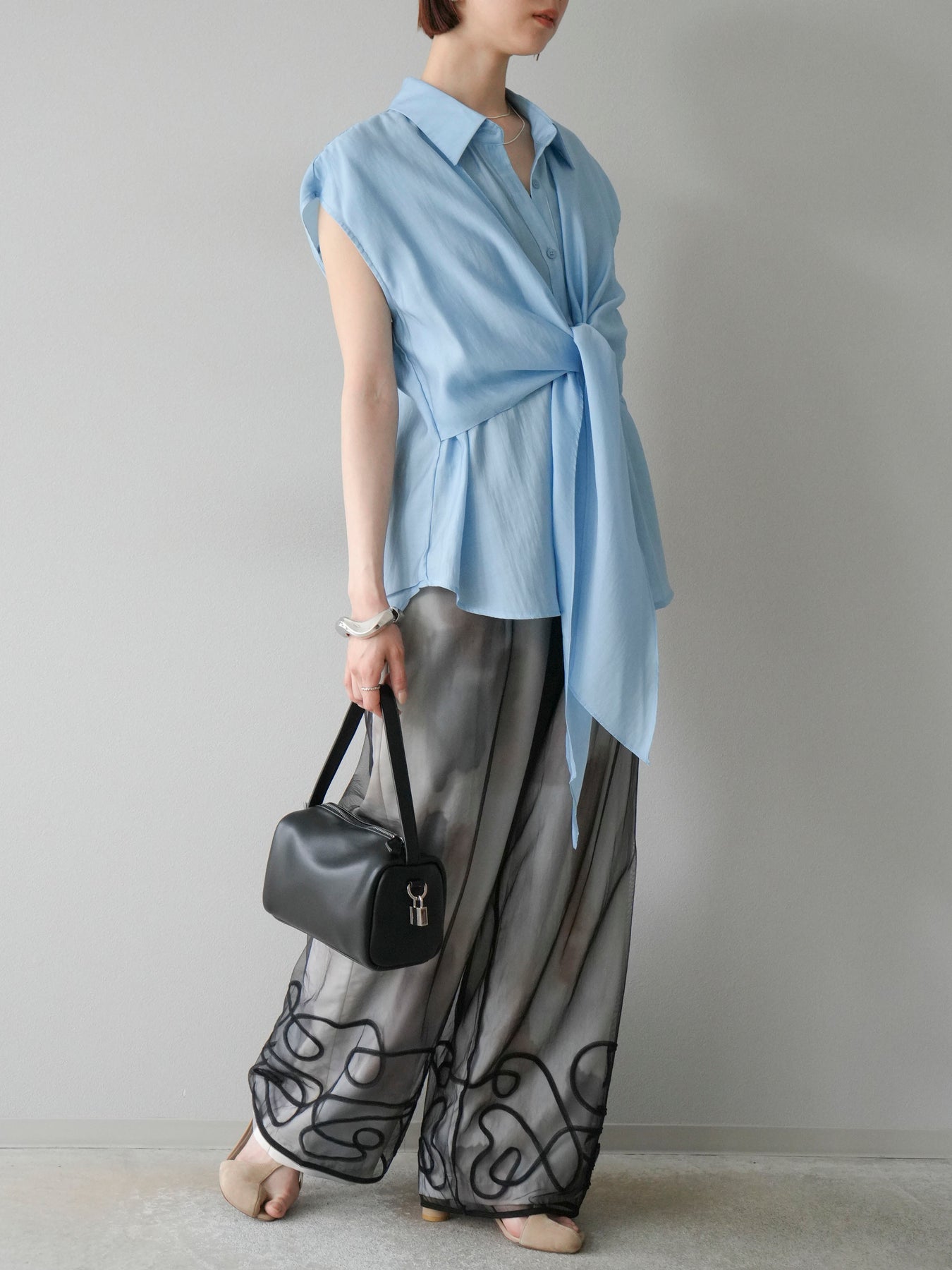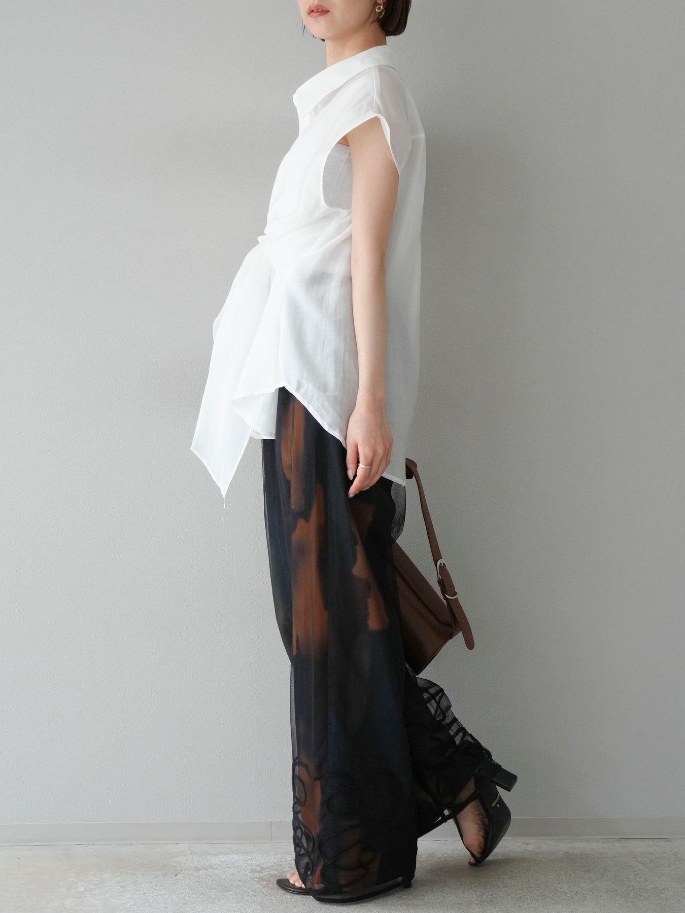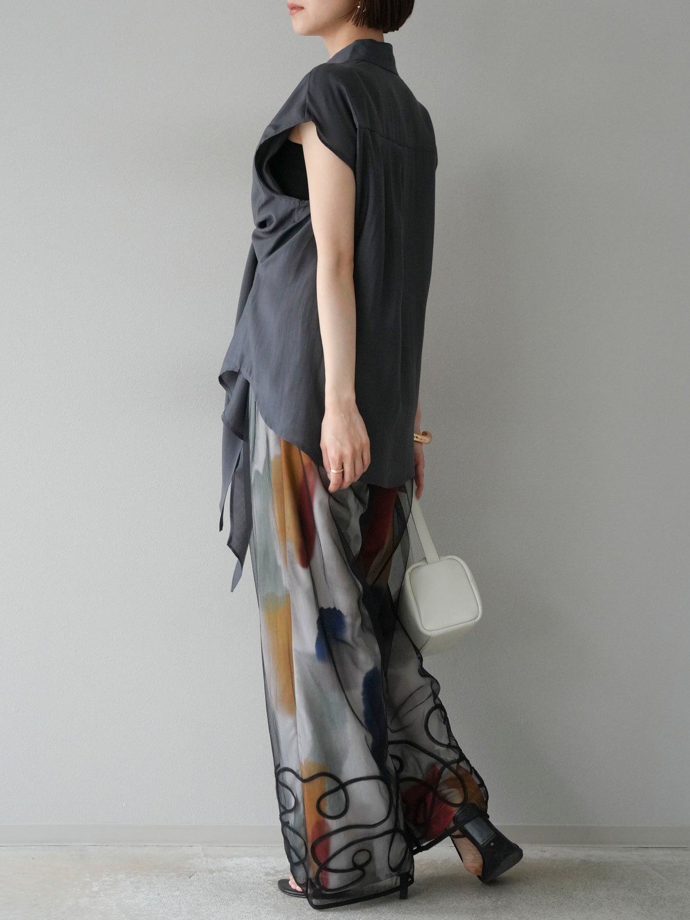 這款層疊薄紗褲的褲腳飾有醒目的立體繩繡。採用層疊精緻的薄紗材質,隨著動作輕盈飄逸,更顯女性柔美。腰部採用全鬆緊設計,帶來輕鬆舒適的穿著體驗,輪廓俐落優美。搭配簡單的下裝,即可提升整體造型,成為時尚的點睛之筆。 *除下裝和吊帶背心(內衣)外,其他商品均不含內衣。