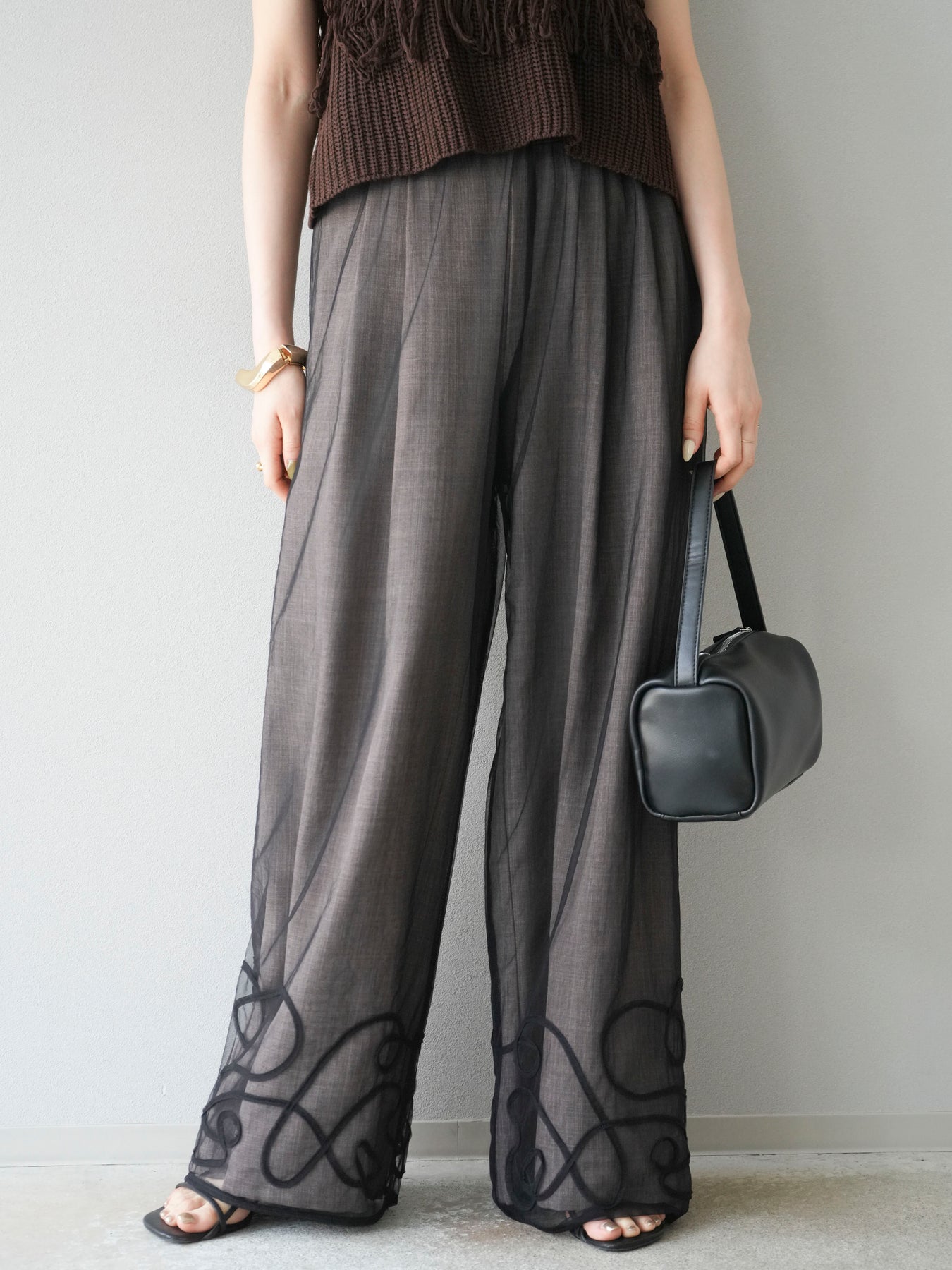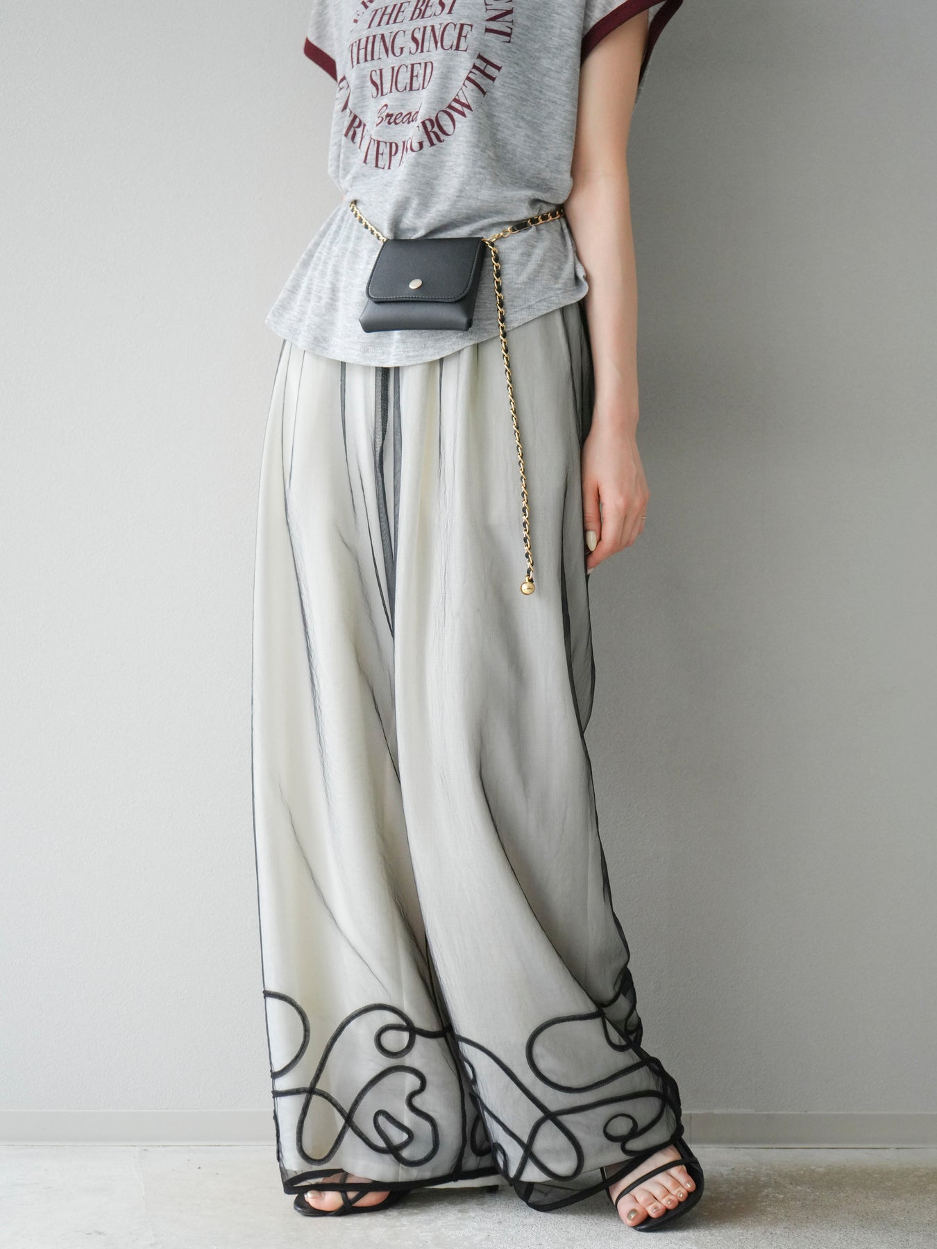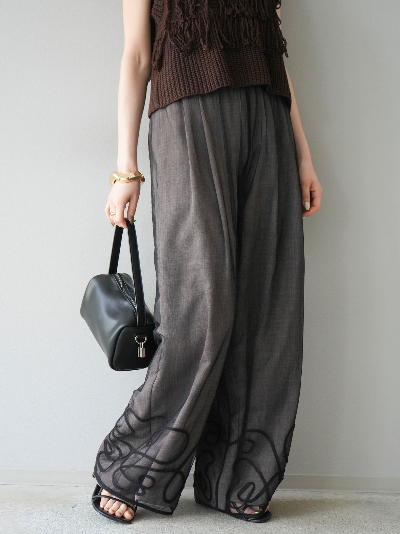 這款層疊薄紗褲的褲腳飾有醒目的立體繩繡。採用層疊精緻的薄紗材質,隨著動作輕盈飄逸,更顯女性柔美。腰部採用全鬆緊設計,帶來輕鬆舒適的穿著體驗,輪廓俐落優美。搭配簡單的下裝,即可提升整體造型,成為時尚的點睛之筆。 *除下裝和吊帶背心(內衣)外,其他商品均不含內衣。