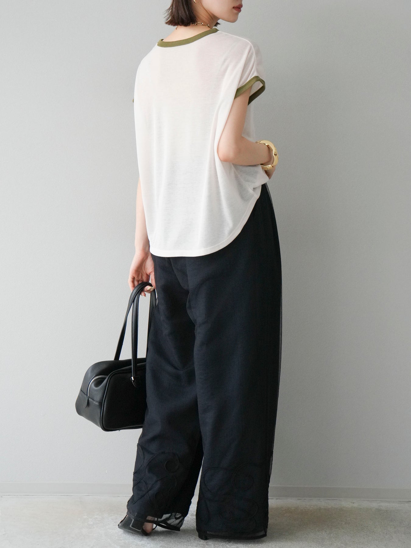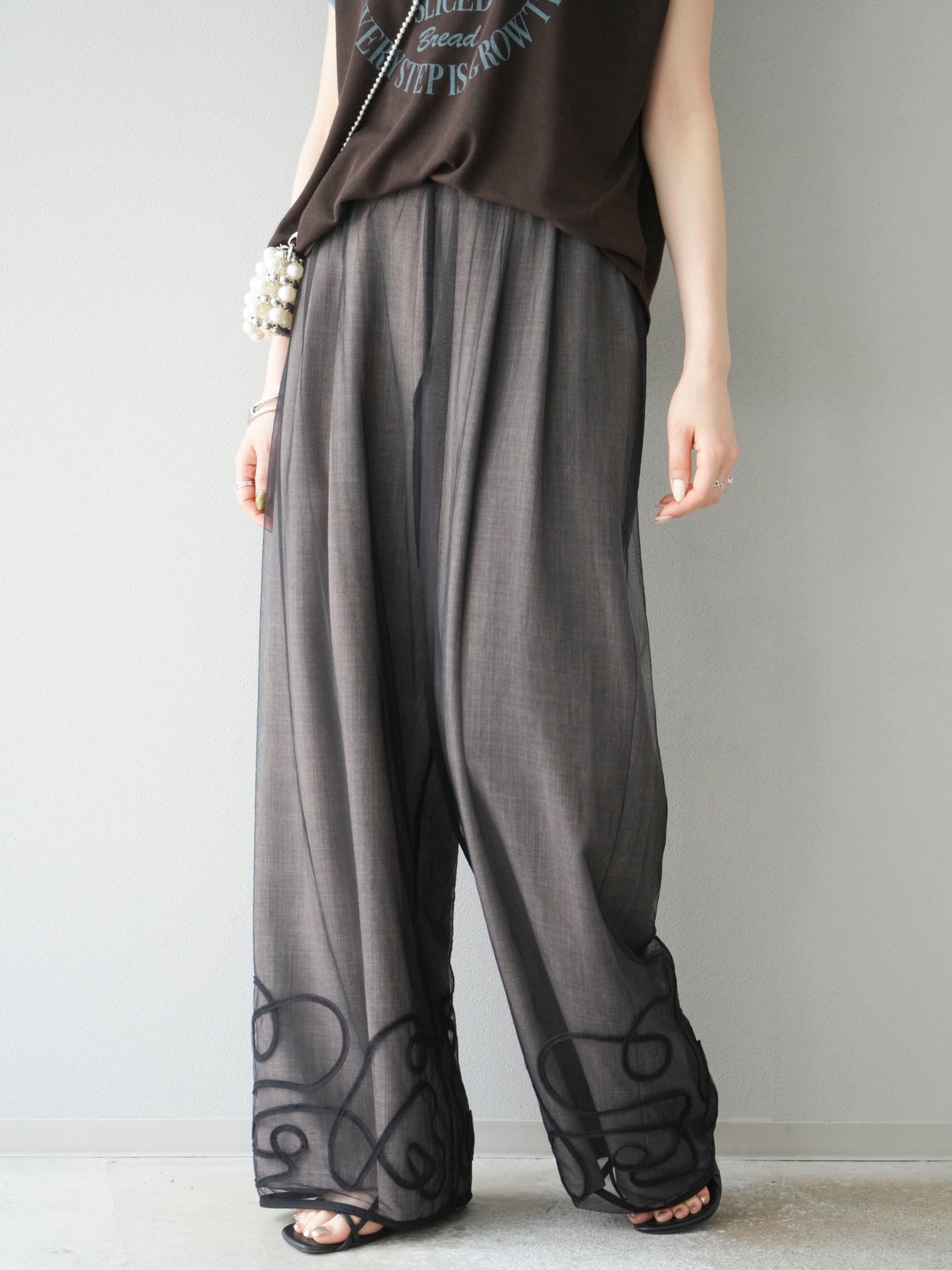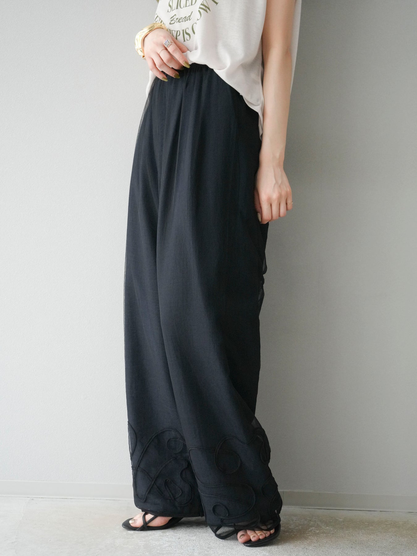 這款層疊薄紗褲的褲腳飾有醒目的立體繩繡。採用層疊精緻的薄紗材質,隨著動作輕盈飄逸,更顯女性柔美。腰部採用全鬆緊設計,帶來輕鬆舒適的穿著體驗,輪廓俐落優美。搭配簡單的下裝,即可提升整體造型,成為時尚的點睛之筆。 *除下裝和吊帶背心(內衣)外,其他商品均不含內衣。
