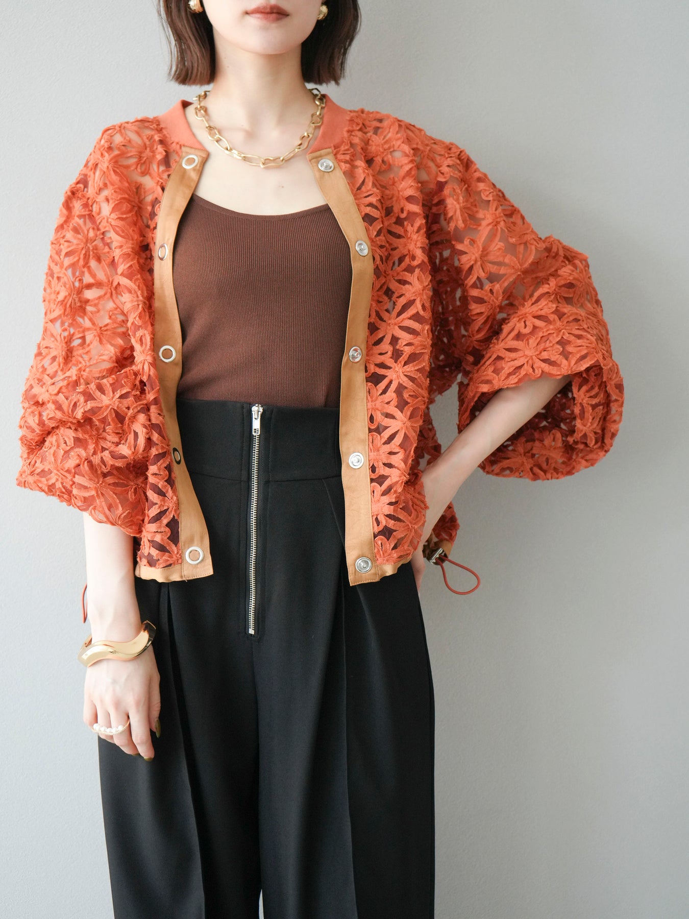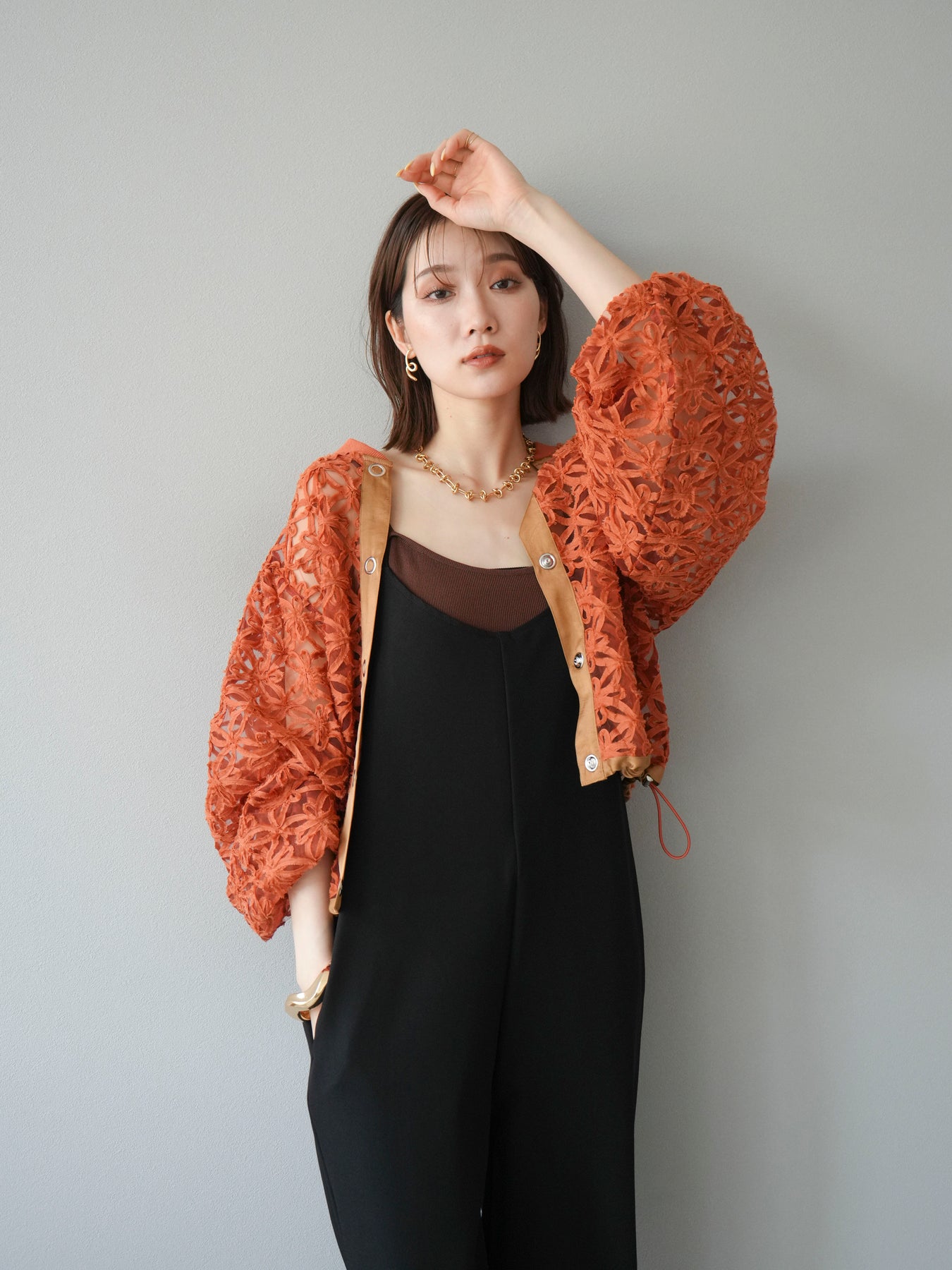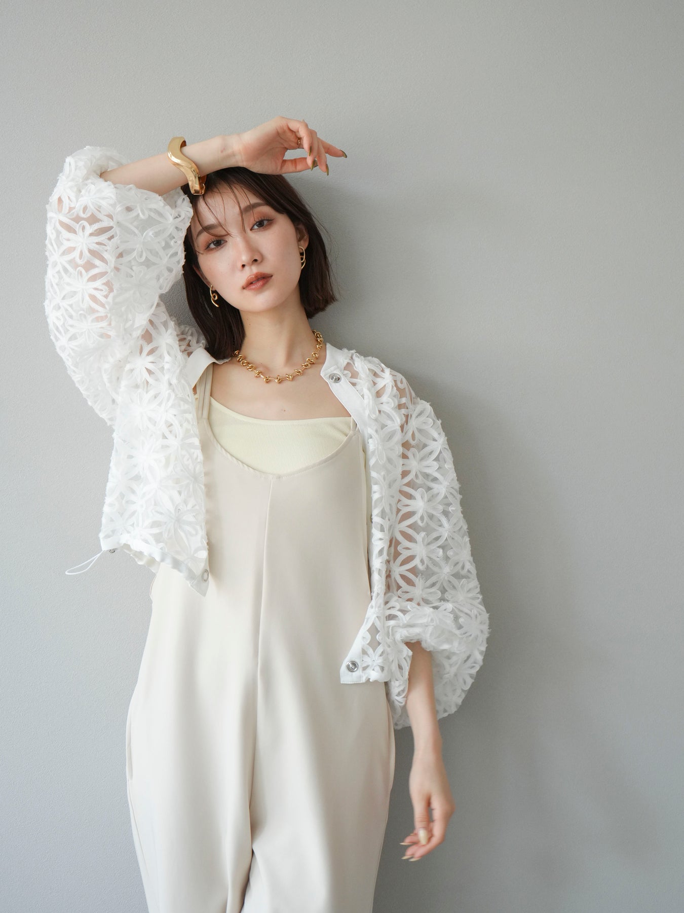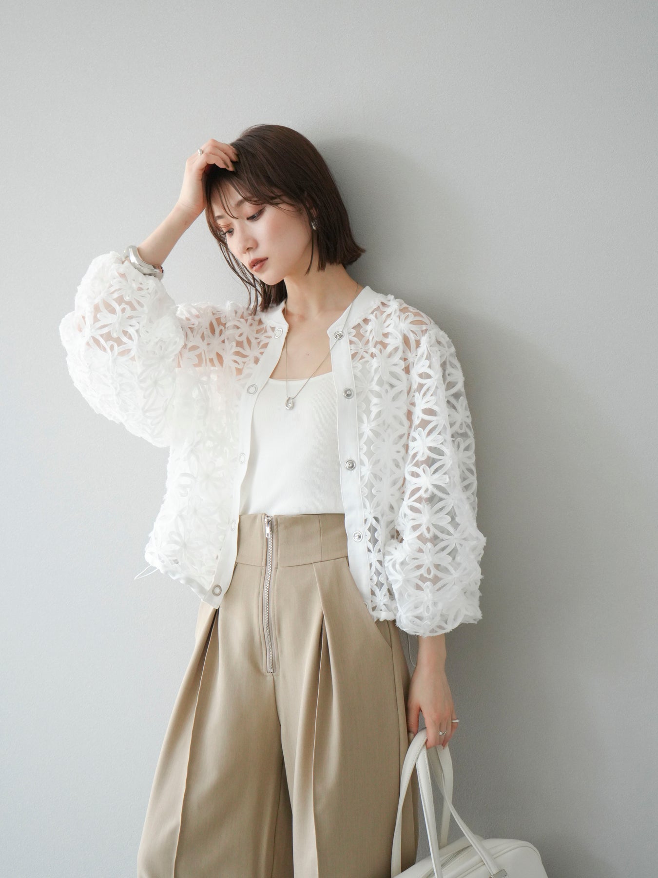 輕盈的透視短袖上衣,飾有醒目的立體花朵圖案蕾絲花邊。恰到好處的通透感與優雅氣質,輕鬆上身,瞬間提升時尚感。前襟採用不同材質的蕾絲花邊,更添現代感。落肩設計與寬鬆輪廓,營造出輕鬆舒適的穿著體驗。搭配簡單的內搭,即可打造優雅幹練的造型。 *除下裝及吊帶背心(內搭)外,所有商品均不含內搭。