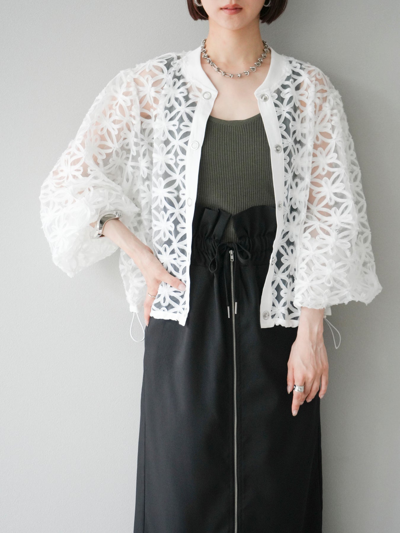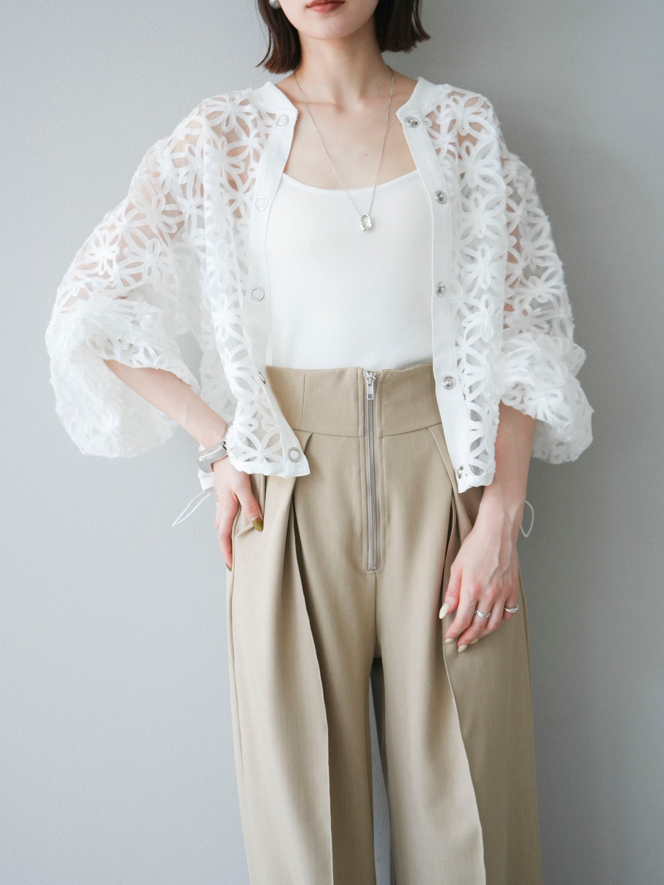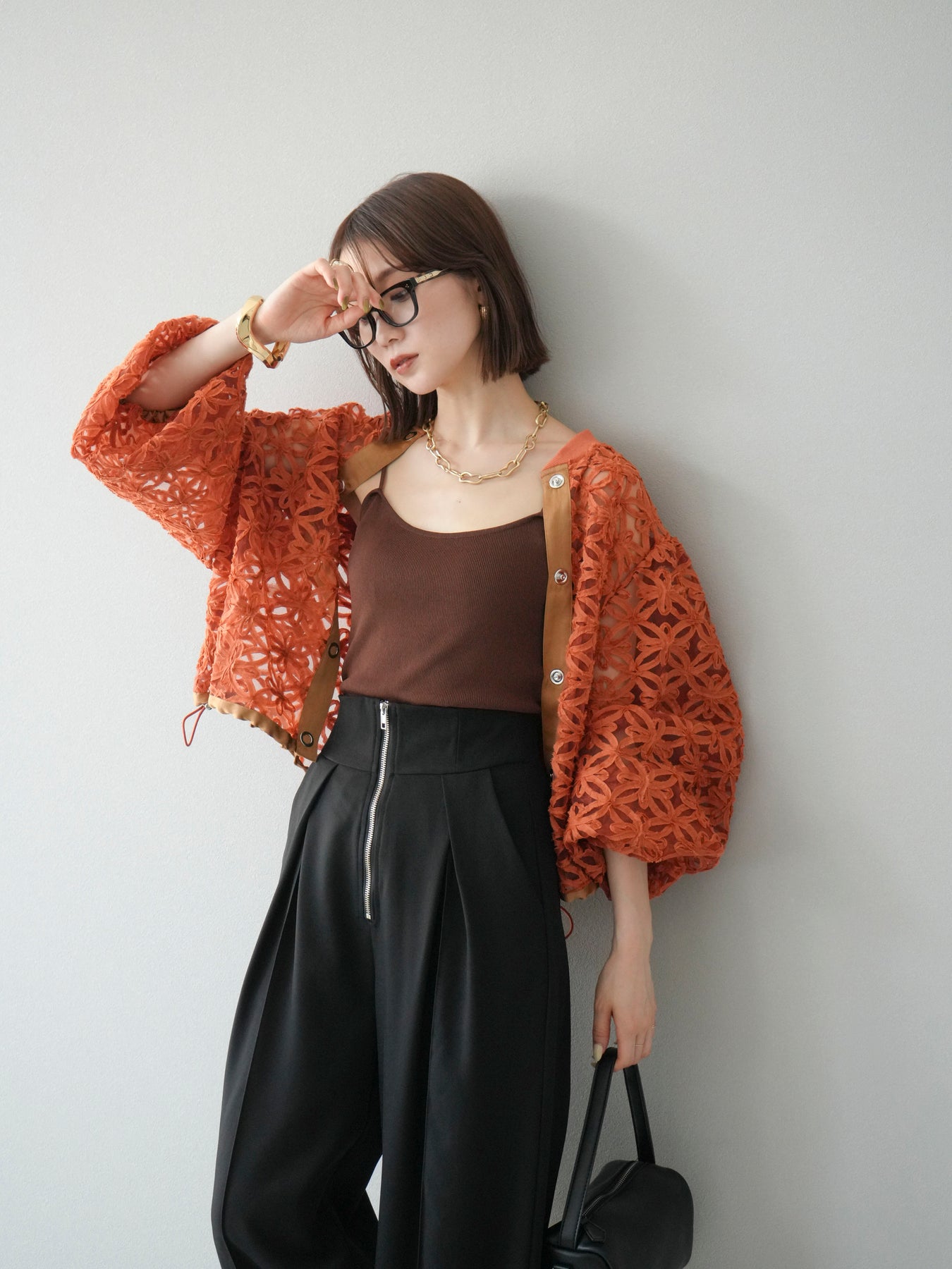 輕盈的透視短袖上衣,飾有醒目的立體花朵圖案蕾絲花邊。恰到好處的通透感與優雅氣質,輕鬆上身,瞬間提升時尚感。前襟採用不同材質的蕾絲花邊,更添現代感。落肩設計與寬鬆輪廓,營造出輕鬆舒適的穿著體驗。搭配簡單的內搭,即可打造優雅幹練的造型。 *除下裝及吊帶背心(內搭)外,所有商品均不含內搭。