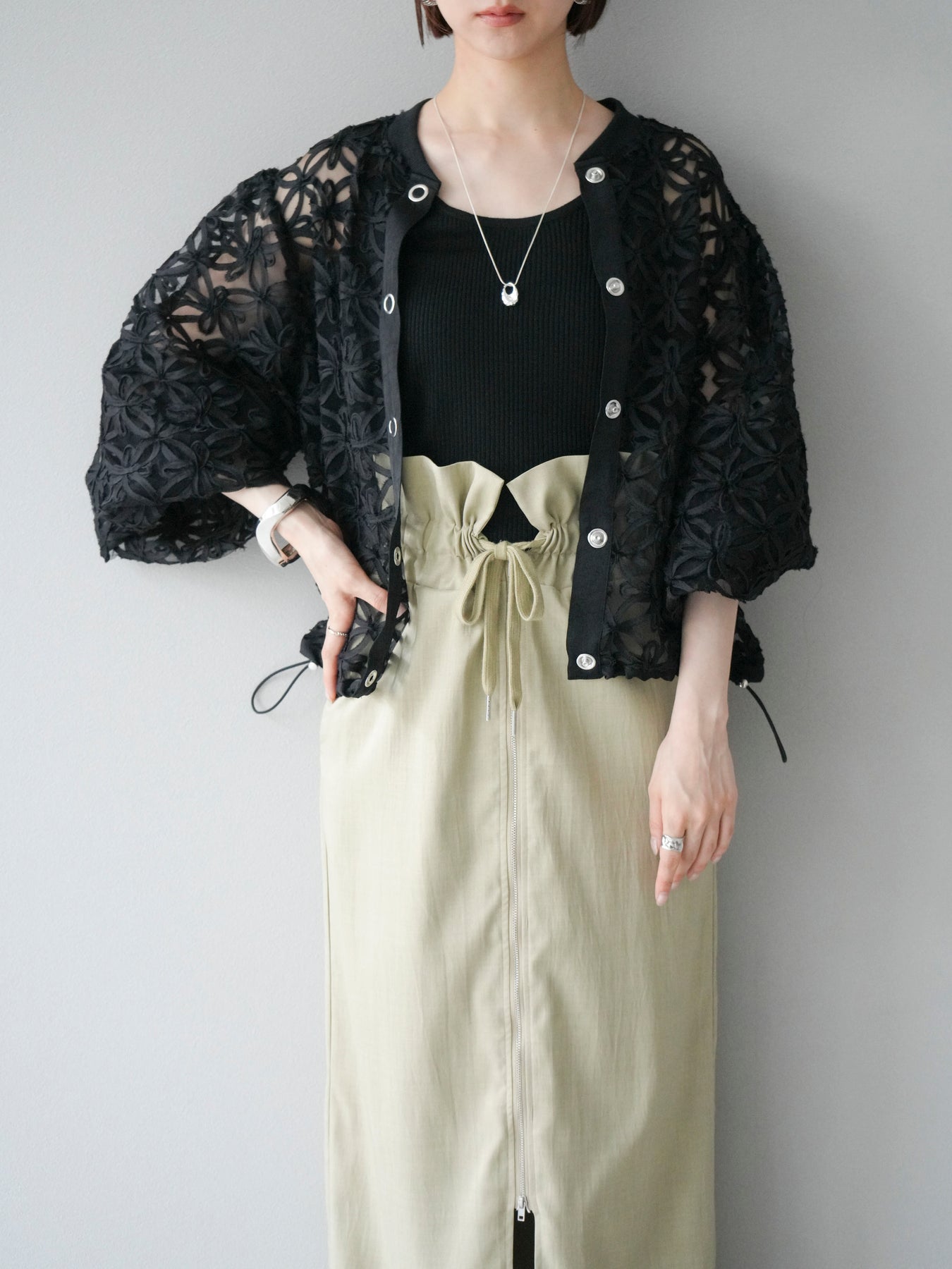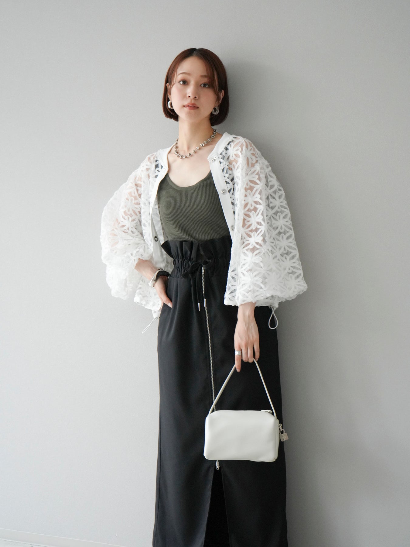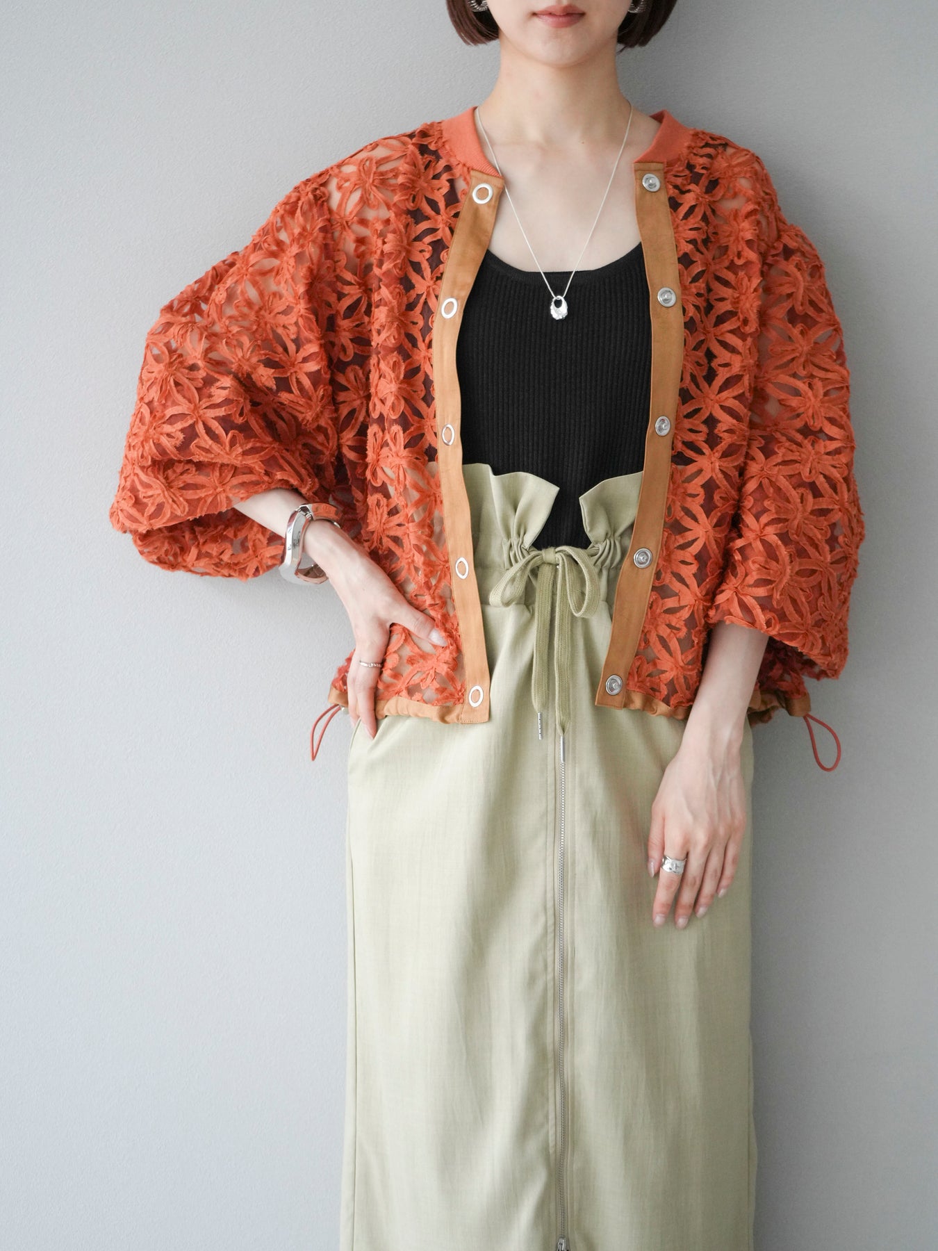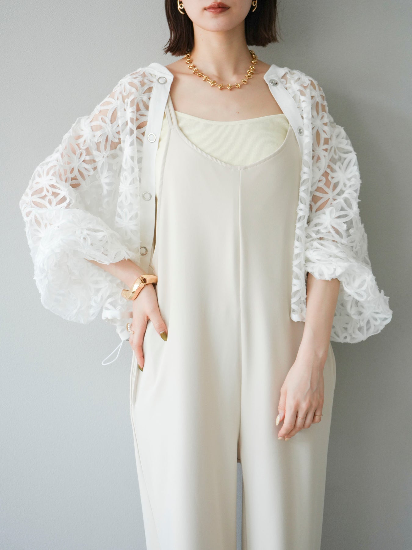 輕盈的透視短袖上衣,飾有醒目的立體花朵圖案蕾絲花邊。恰到好處的通透感與優雅氣質,輕鬆上身,瞬間提升時尚感。前襟採用不同材質的蕾絲花邊,更添現代感。落肩設計與寬鬆輪廓,營造出輕鬆舒適的穿著體驗。搭配簡單的內搭,即可打造優雅幹練的造型。 *除下裝及吊帶背心(內搭)外,所有商品均不含內搭。
