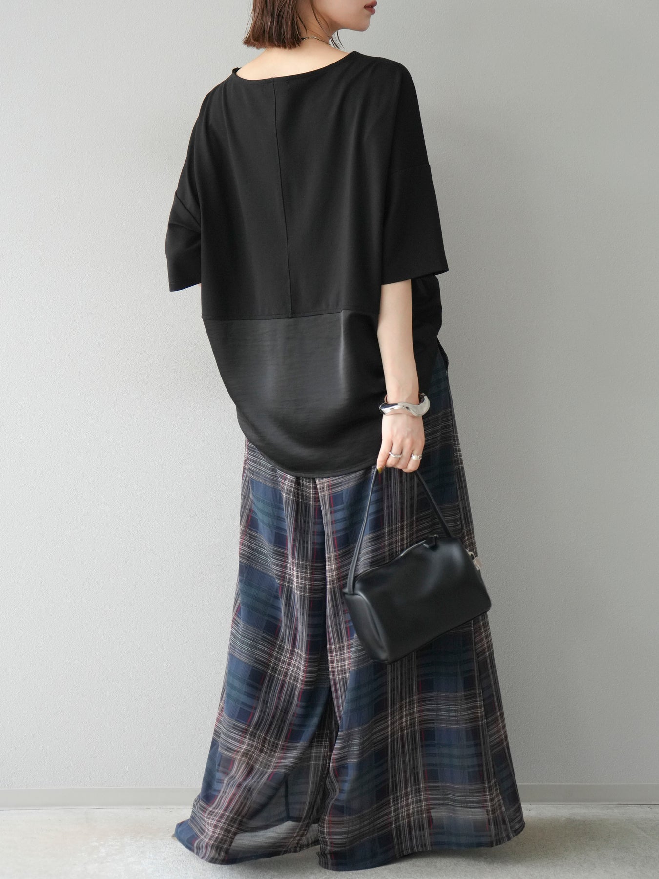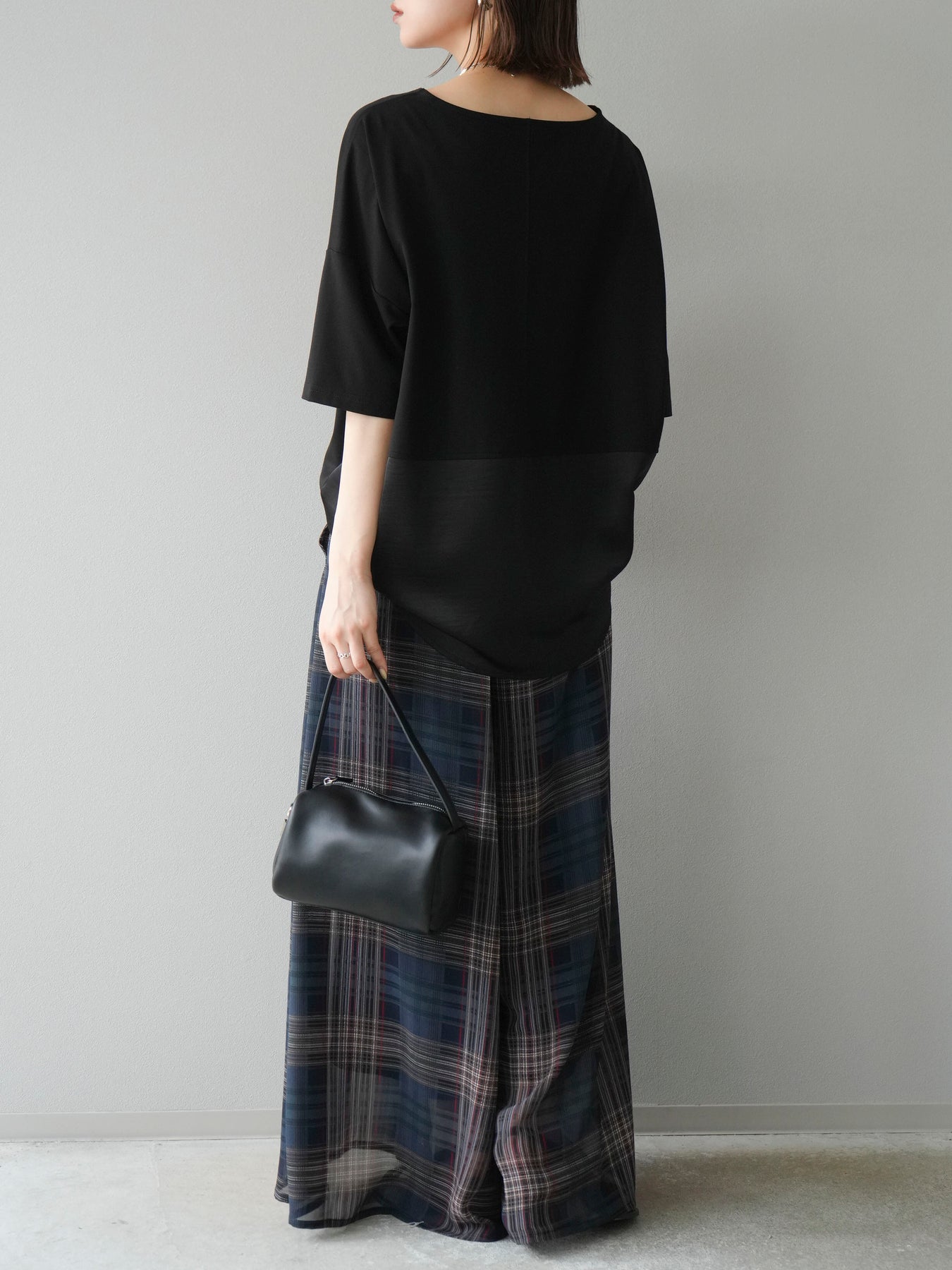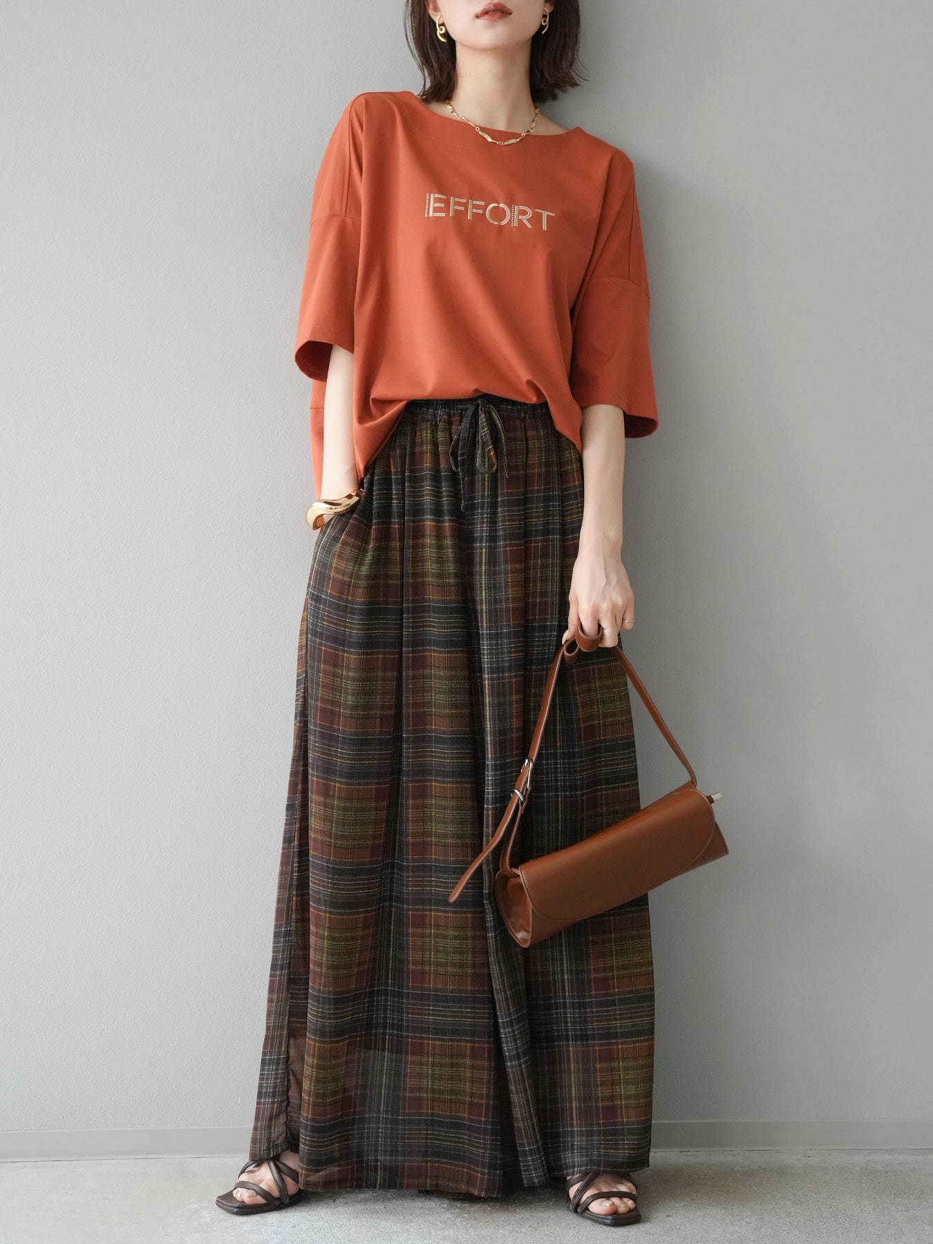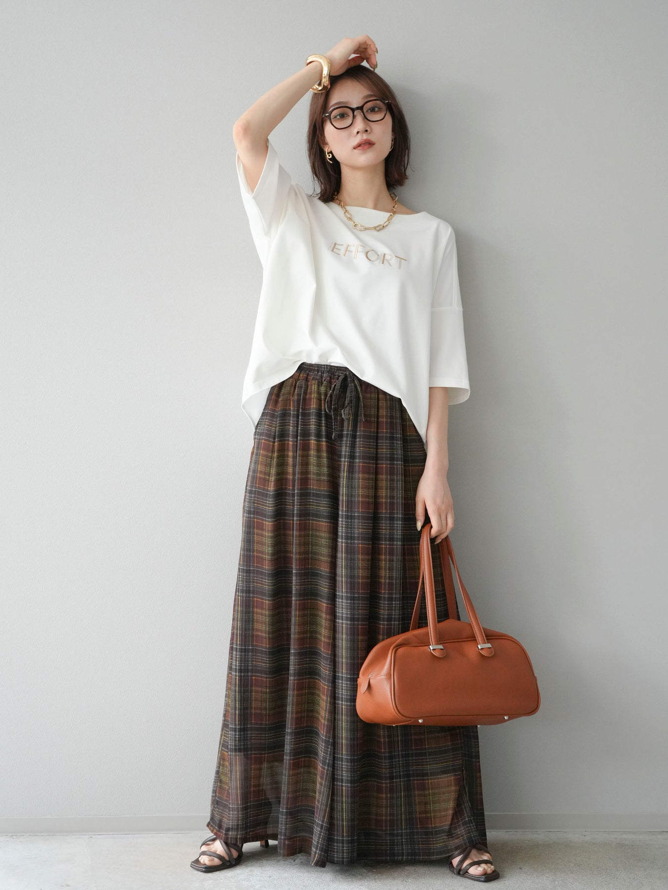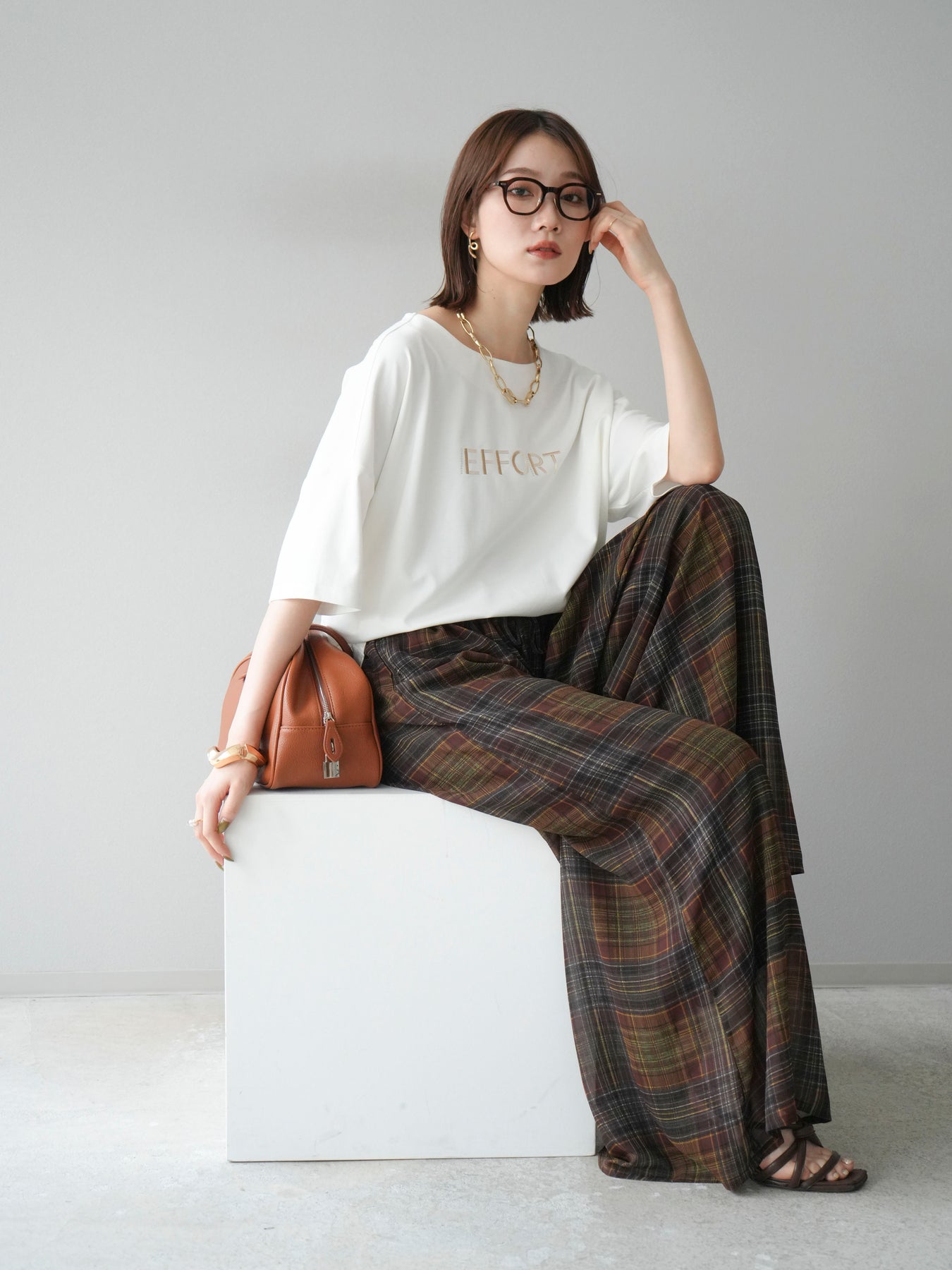 這款寬鬆褲休閒又不失成熟,深色格紋圖案搭配透視布料,更能襯托出季節的氛圍。適度的透明度營造出輕盈飄逸的感覺,是一條既能提升時尚感又不失休閒感的褲子。 腰部採用全彈性設計,並配有抽繩,穿著舒適。布料厚實,垂墜感十足,讓您隨動作優雅擺動。 這是一款引人注目的單品,只需搭配一件簡單的上衣即可為您的服裝增添亮點。