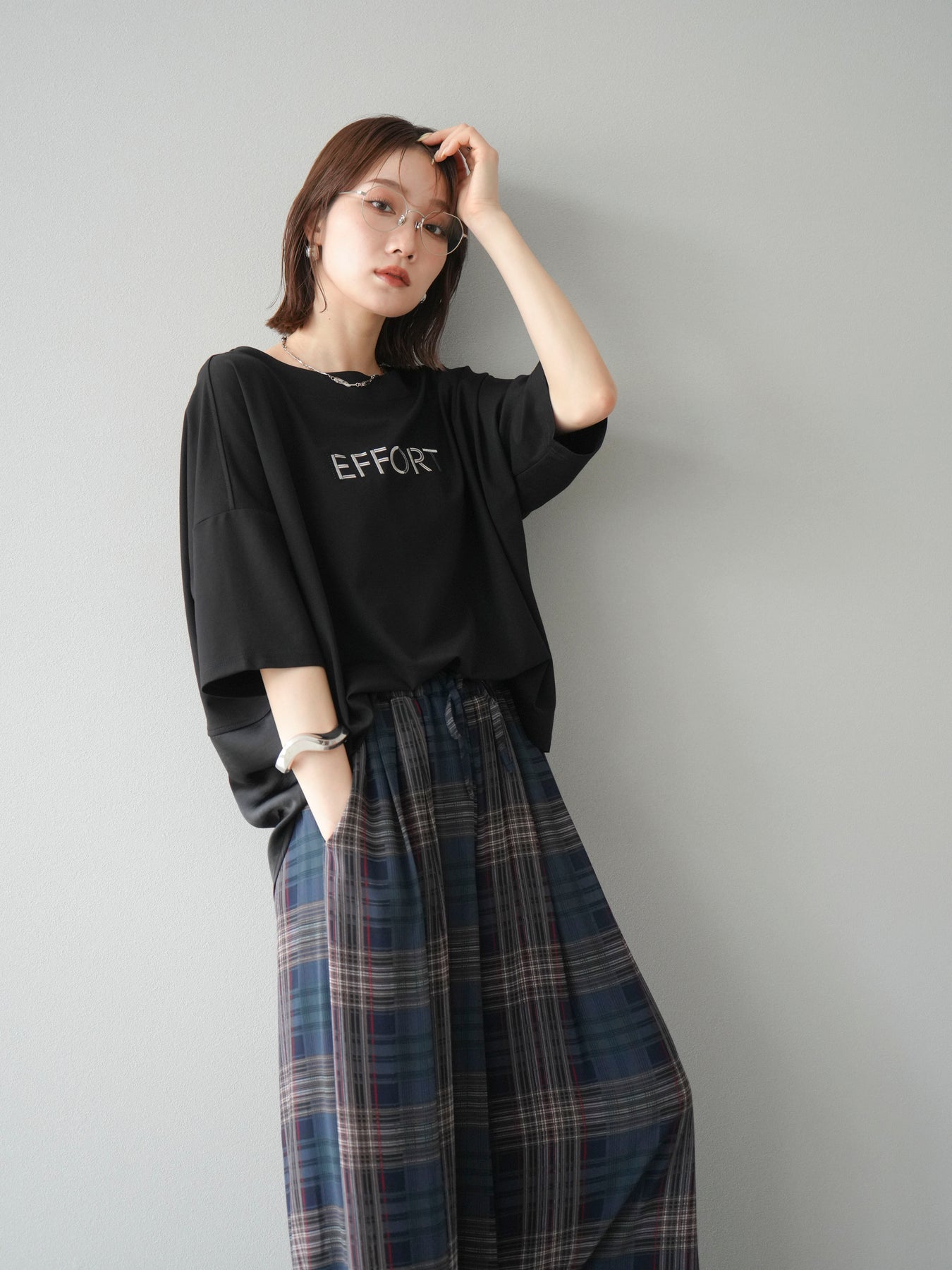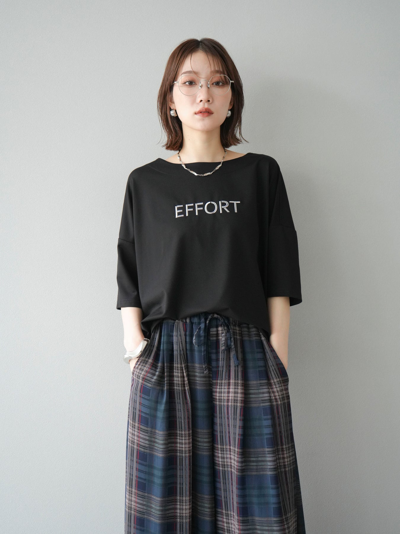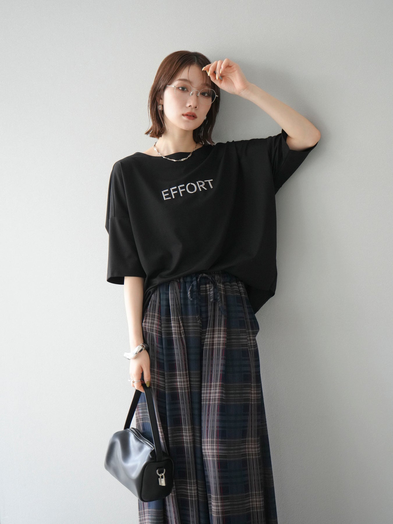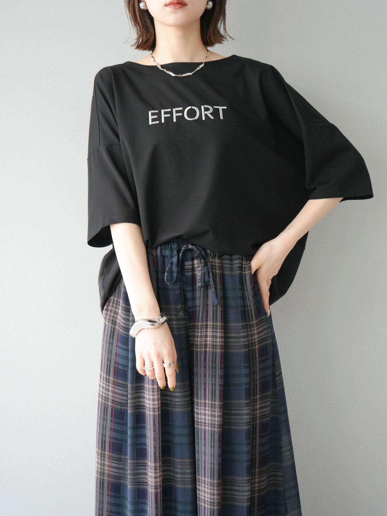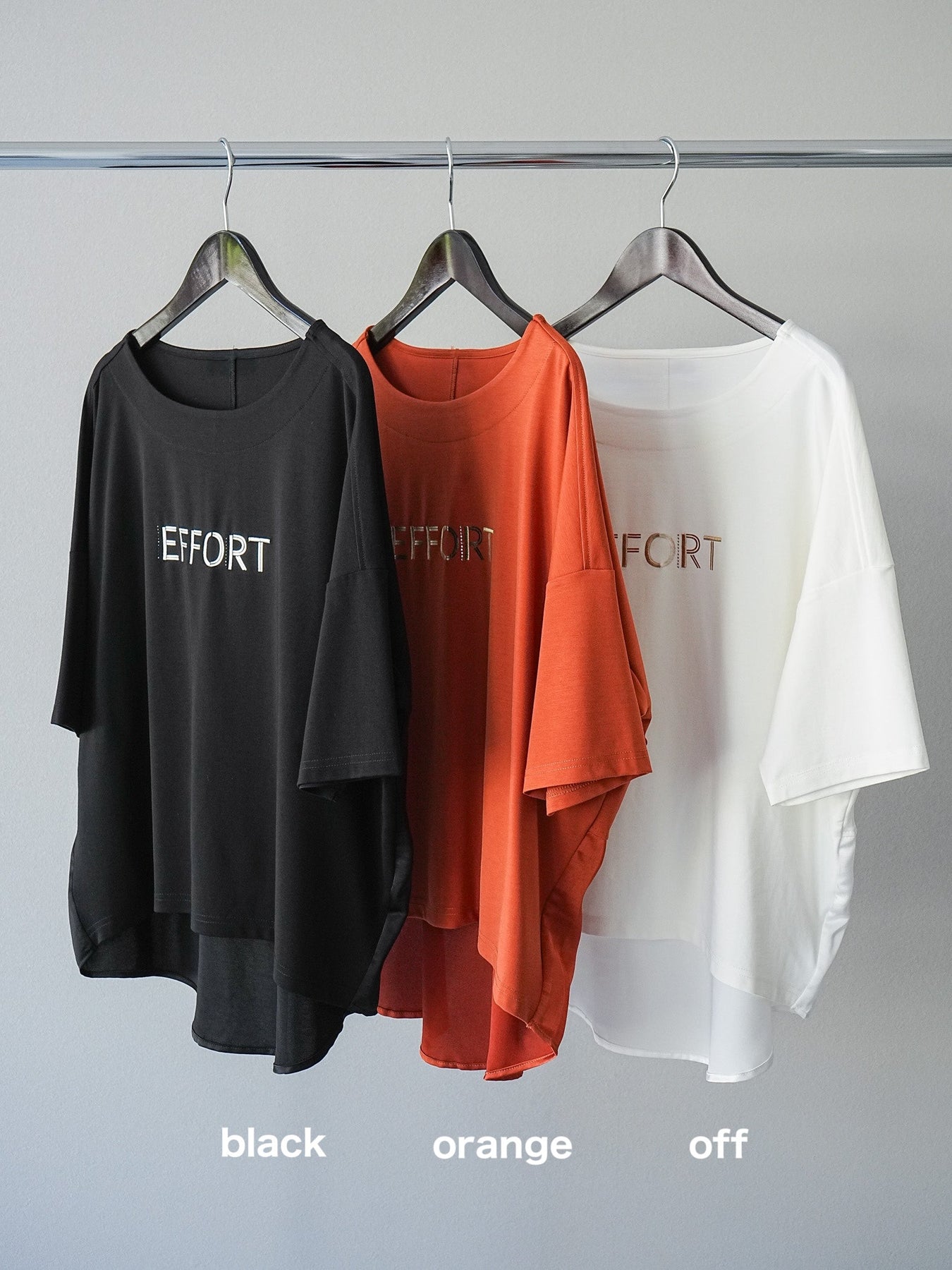 正面的「EFFORT」標誌設計醒目,融合了不同材質的印花和金屬刺繡,立體的標誌細節為簡約的設計增添了一絲時尚感。 寬鬆的落肩設計,前後有差異的下擺,營造出輕鬆隨興的感覺。剪裁和縫製的材質觸感柔軟,適合日常休閒穿著。 這款休閒時尚的單品是可與任何下裝搭配的絕佳單品。 ※除下裝、吊帶背心(內衣)以外的商品均不含內衣。