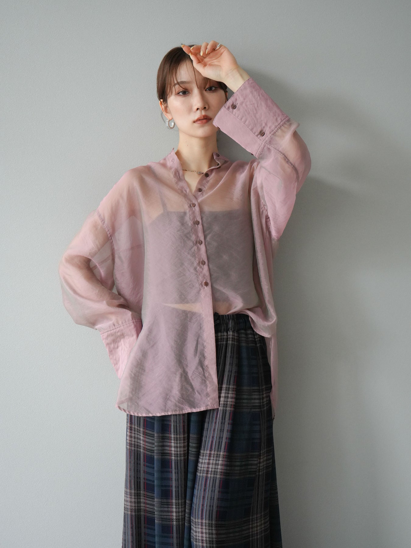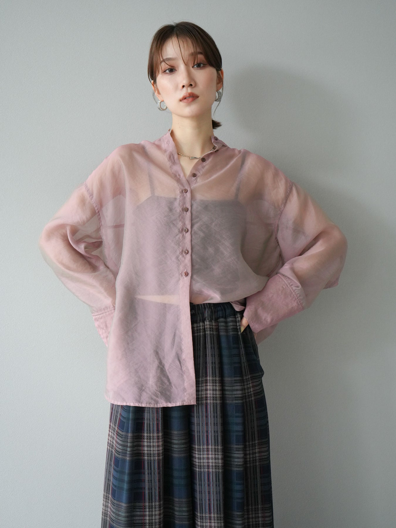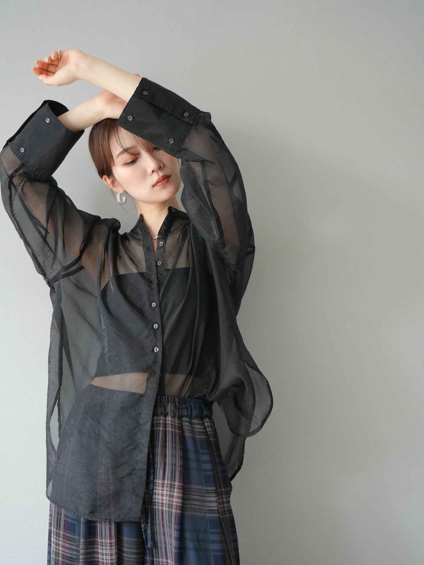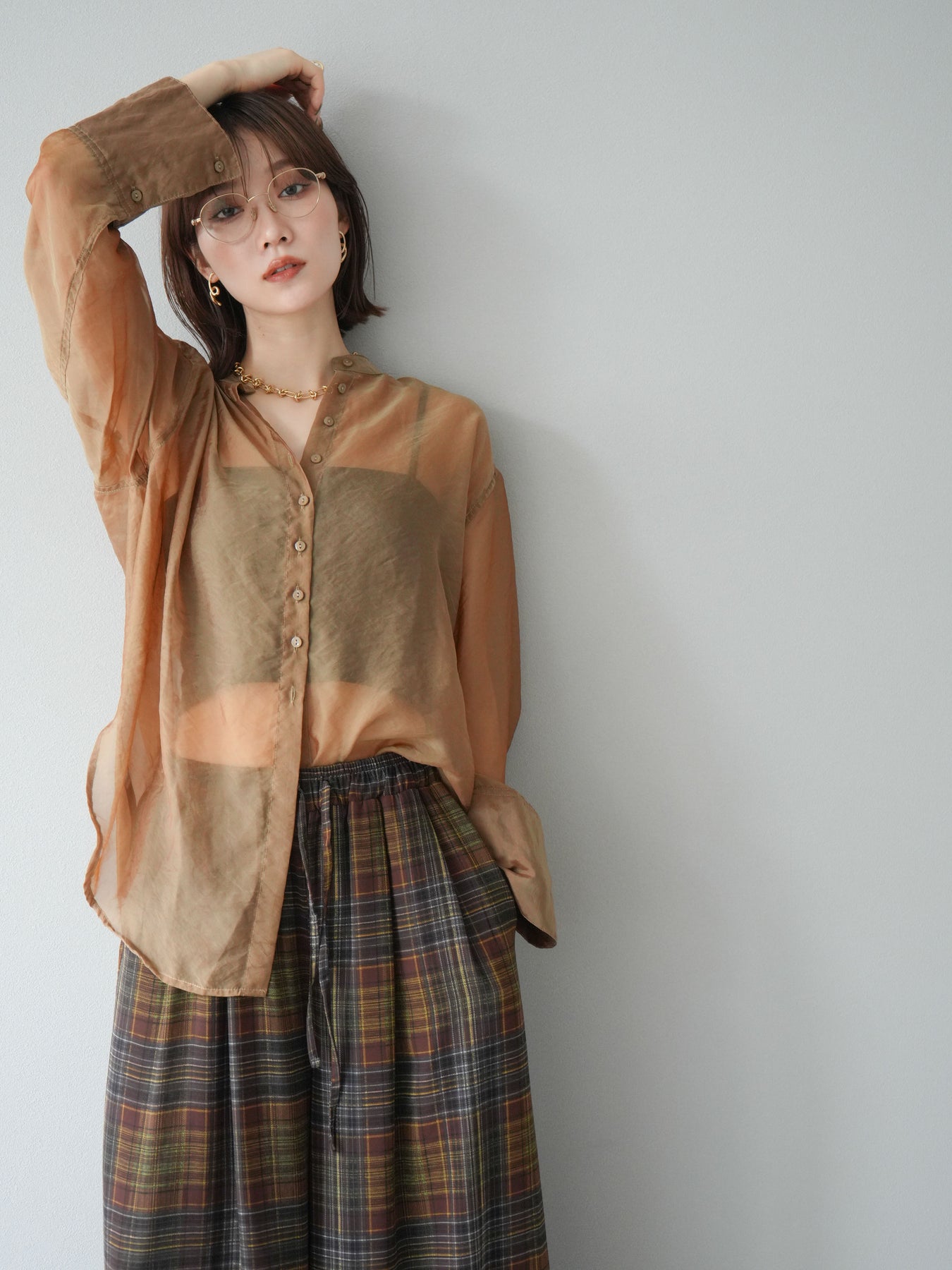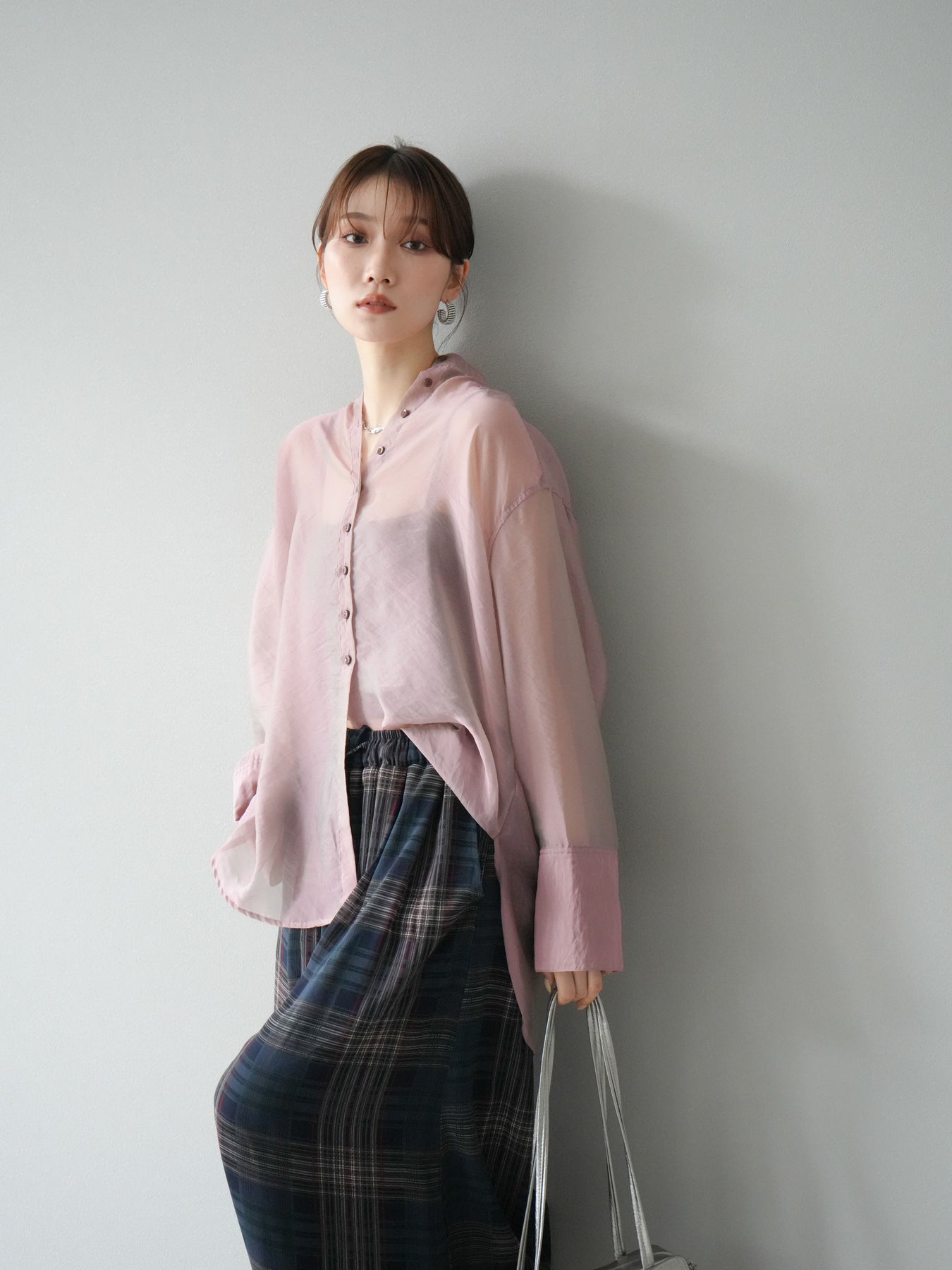 這款立領襯衫採用略帶光澤的透視布料製成,優雅又時尚。輕盈的透明度營造出休閒的造型,使其成為可單獨穿著的點睛之筆。 略長的長度和寬鬆的廓形,方便塞進或放出褲腰,打造均衡的造型。袖口收褶設計,更添一絲女性柔和。 這是一件用途極為廣泛的單品,可以根據您使用的內衣和分層以不同的方式穿著。 ※除下裝、吊帶背心(內衣)以外的商品均不含內衣。